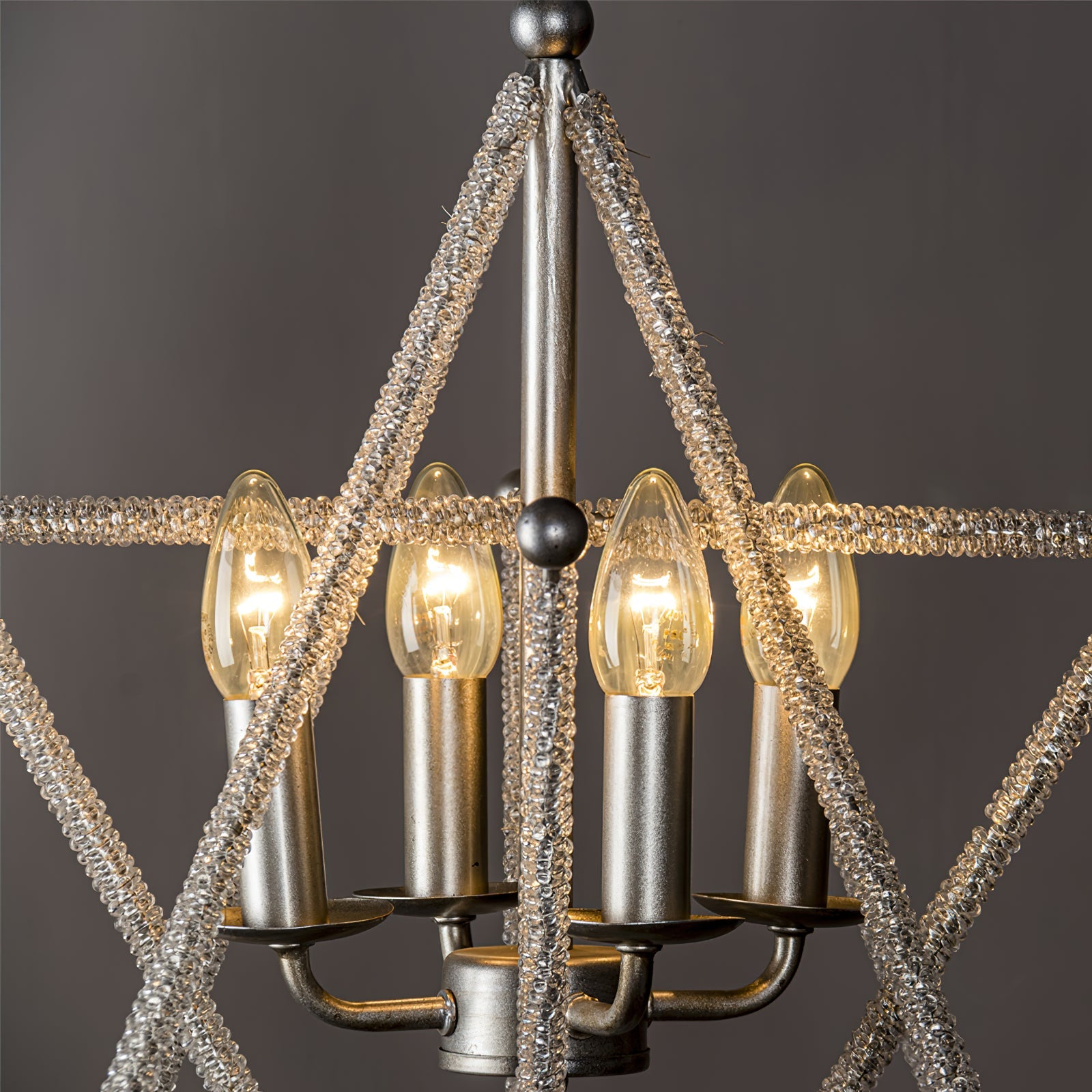 أضئ مساحتك بأناقة مصباح كارات المعلق. إطاره الماسي وبنيته السلسلية الرقيقة يُضفيان جوًا أشبه بالجواهر. يتميز هذا المصباح المعلق الرائع بأربعة شمعدانات (المصابيح غير متضمنة)، مما يضفي لمسةً من الرقي على أي غرفة.