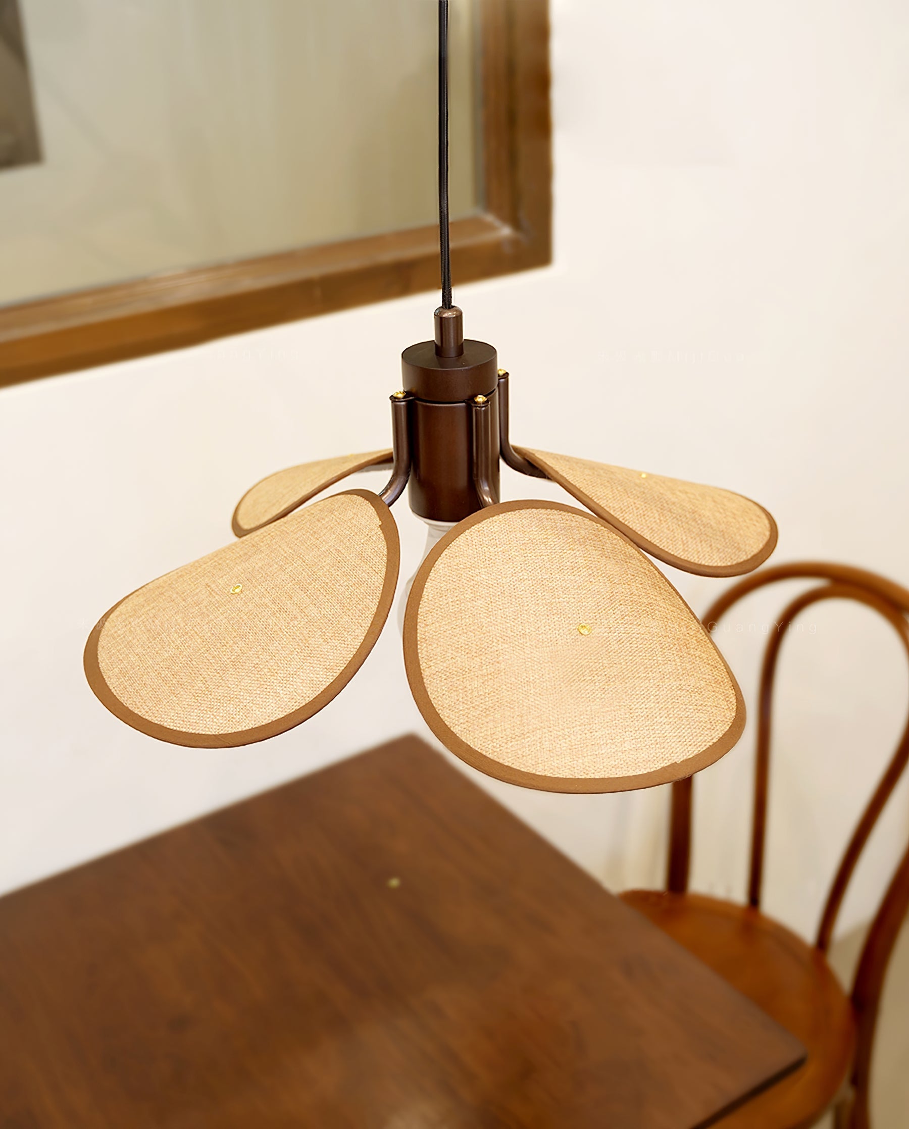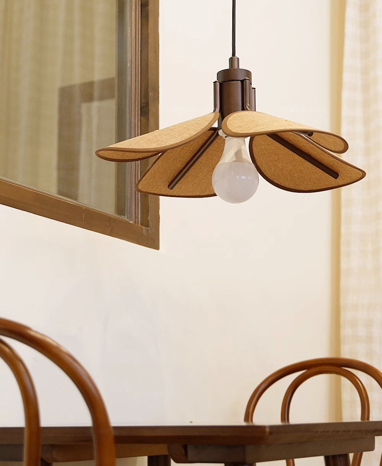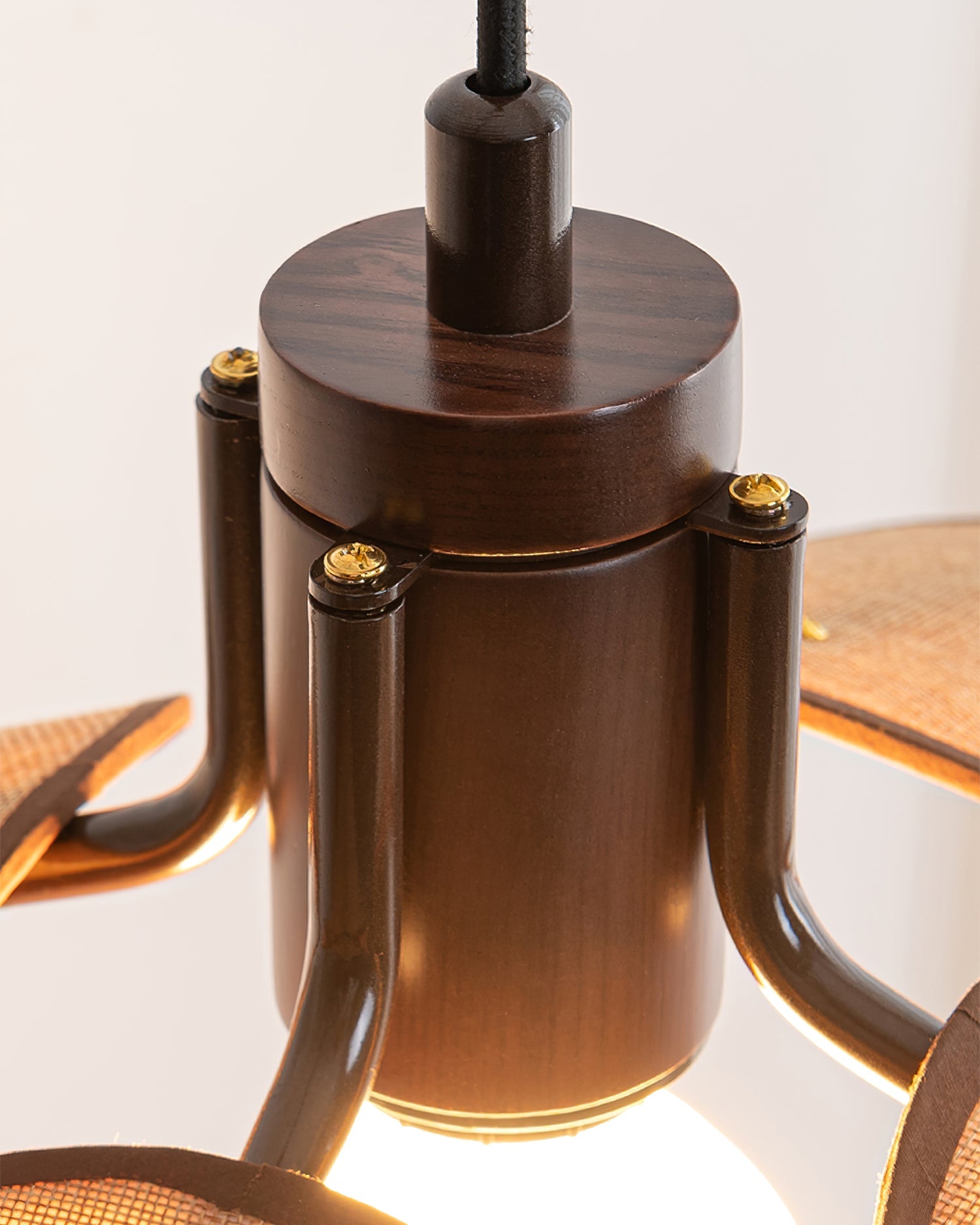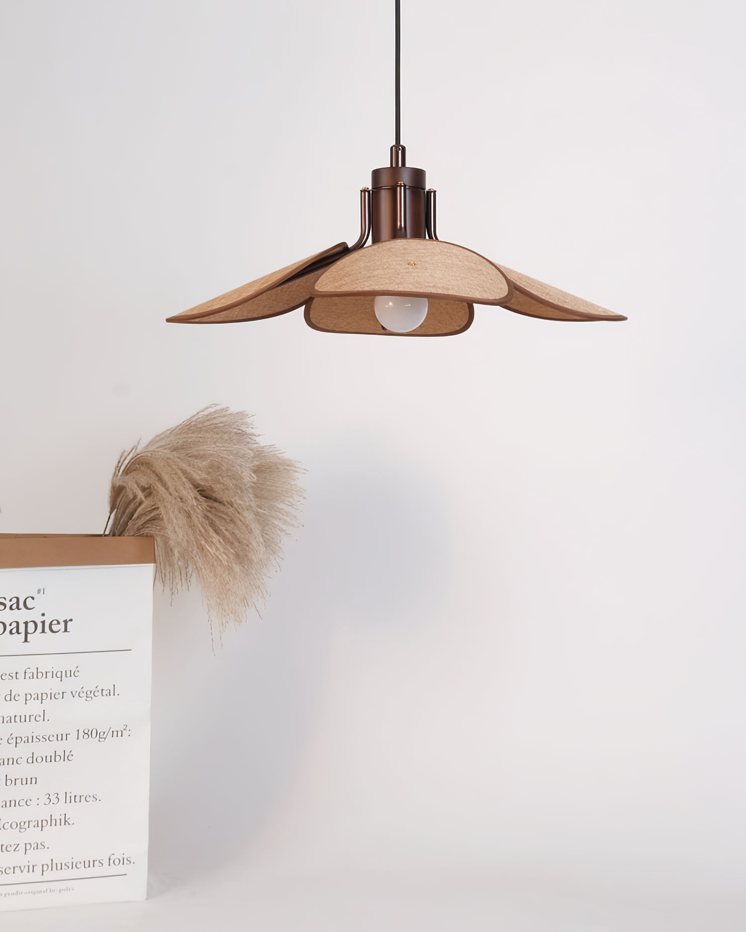 ارتقِ بمساحتك مع مصباح دلفينا المعلق المستوحى من الطراز العتيق. مصنوع من غطاء قماشي منسوج يدويًا، وهيكل من الخشب الصلب، وأجزاء معدنية سوداء، هذه القطعة الخالدة ستضفي لمسة من الأناقة على أي غرفة. مثالية لمن يبحثون عن حلول إضاءة راقية وفريدة.
