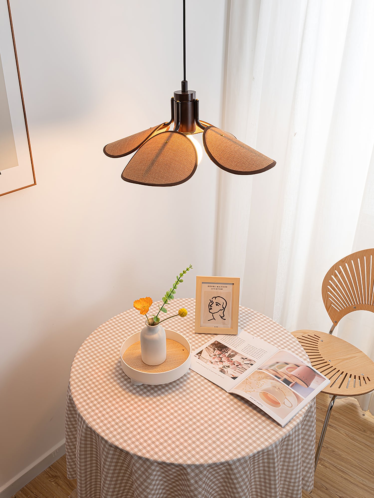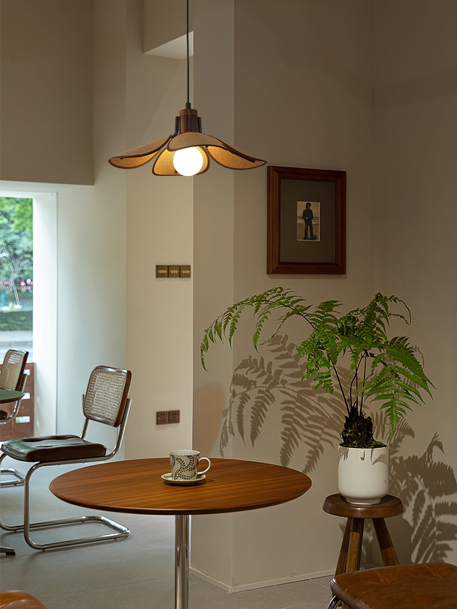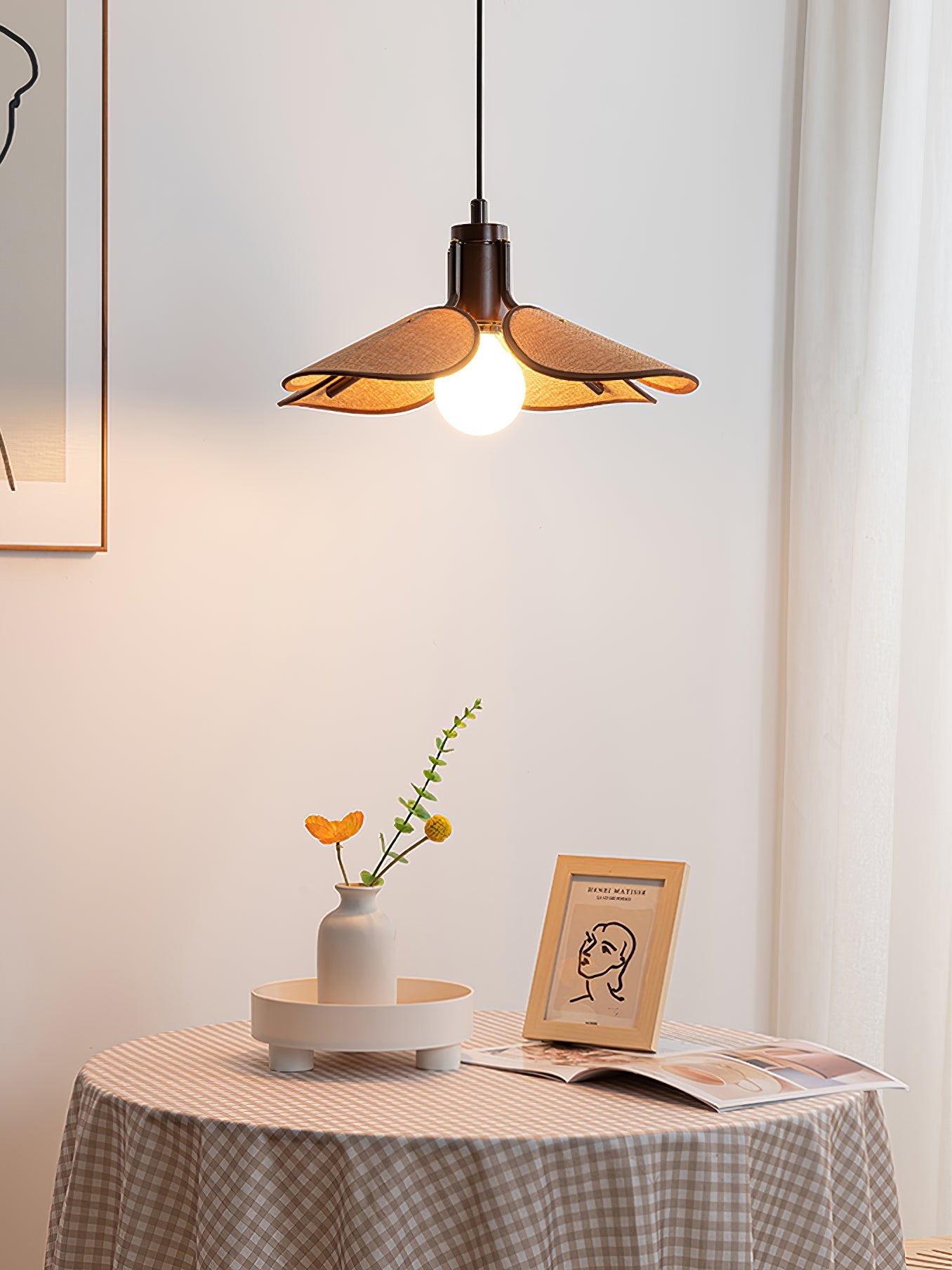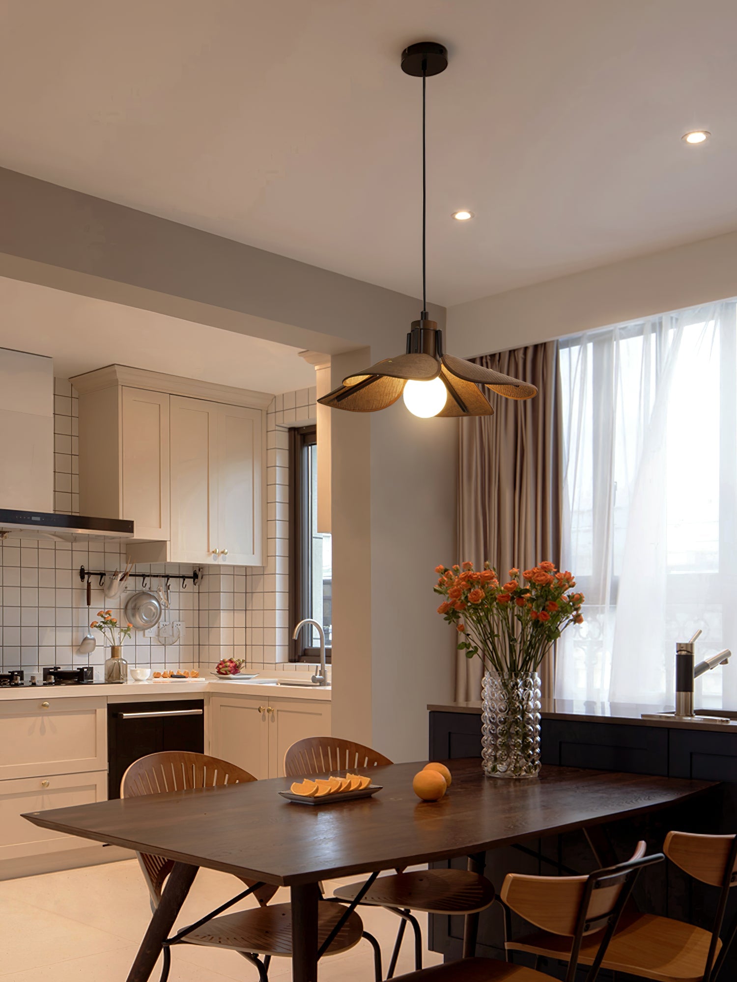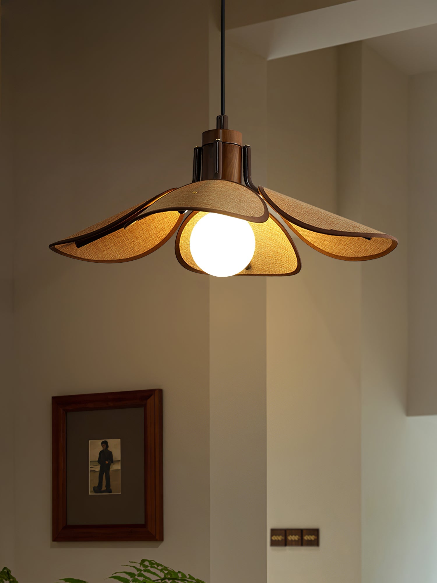 ارتقِ بمساحتك مع مصباح دلفينا المعلق المستوحى من الطراز العتيق. مصنوع من غطاء قماشي منسوج يدويًا، وهيكل من الخشب الصلب، وأجزاء معدنية سوداء، هذه القطعة الخالدة ستضفي لمسة من الأناقة على أي غرفة. مثالية لمن يبحثون عن حلول إضاءة راقية وفريدة.