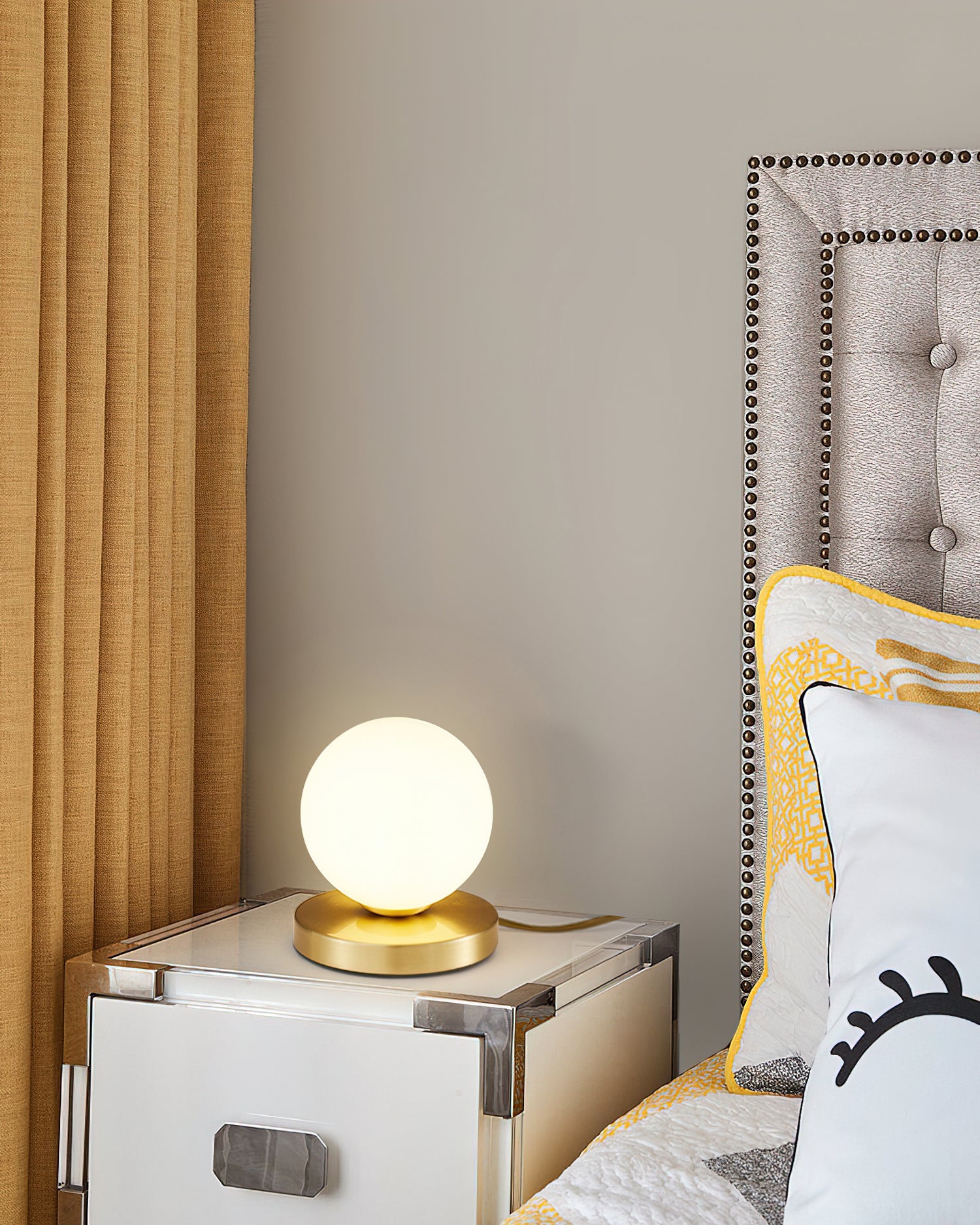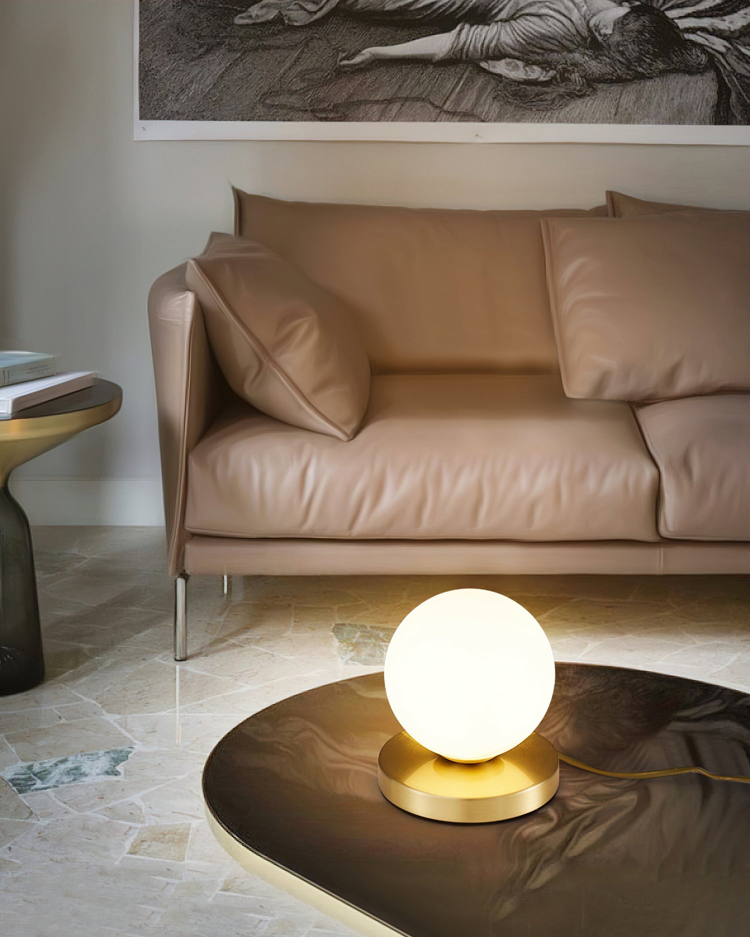يجمع مصباح طاولة دي نابولي بين تصميم أنيق وراقٍ وإضاءة ناعمة ومتوازنة. تصميمه الكروي يُبسط وظيفة مصدر الضوء، ويمنحه لمسة فريدة وتناغمًا مع الأسلوب العصري.