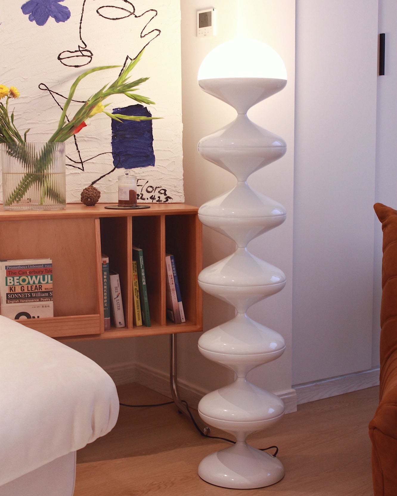 يكسر الخط المتعرج لجسم المصباح رتابة التصميم المستقيم، فكل تفصيلة فيه مفعمة بشغف الحياة وتقدير الفن. تصميمه الإبداعي والفردي يترك انطباعًا عميقًا لدى الناس.