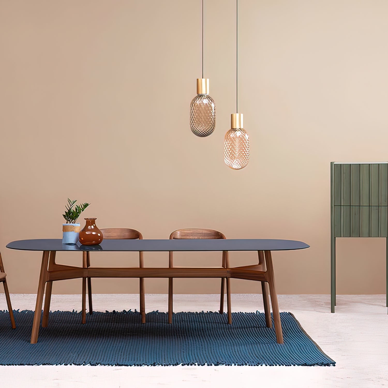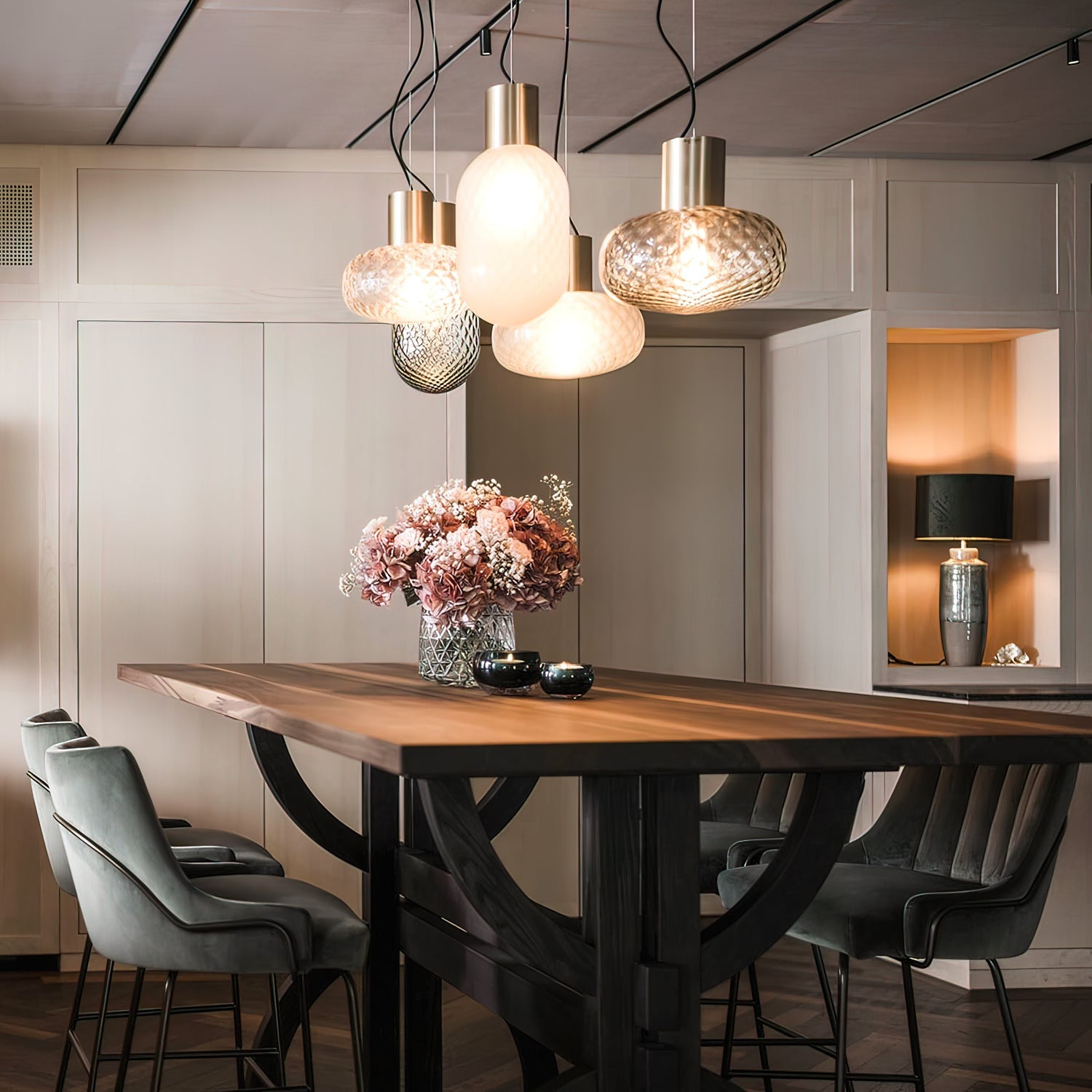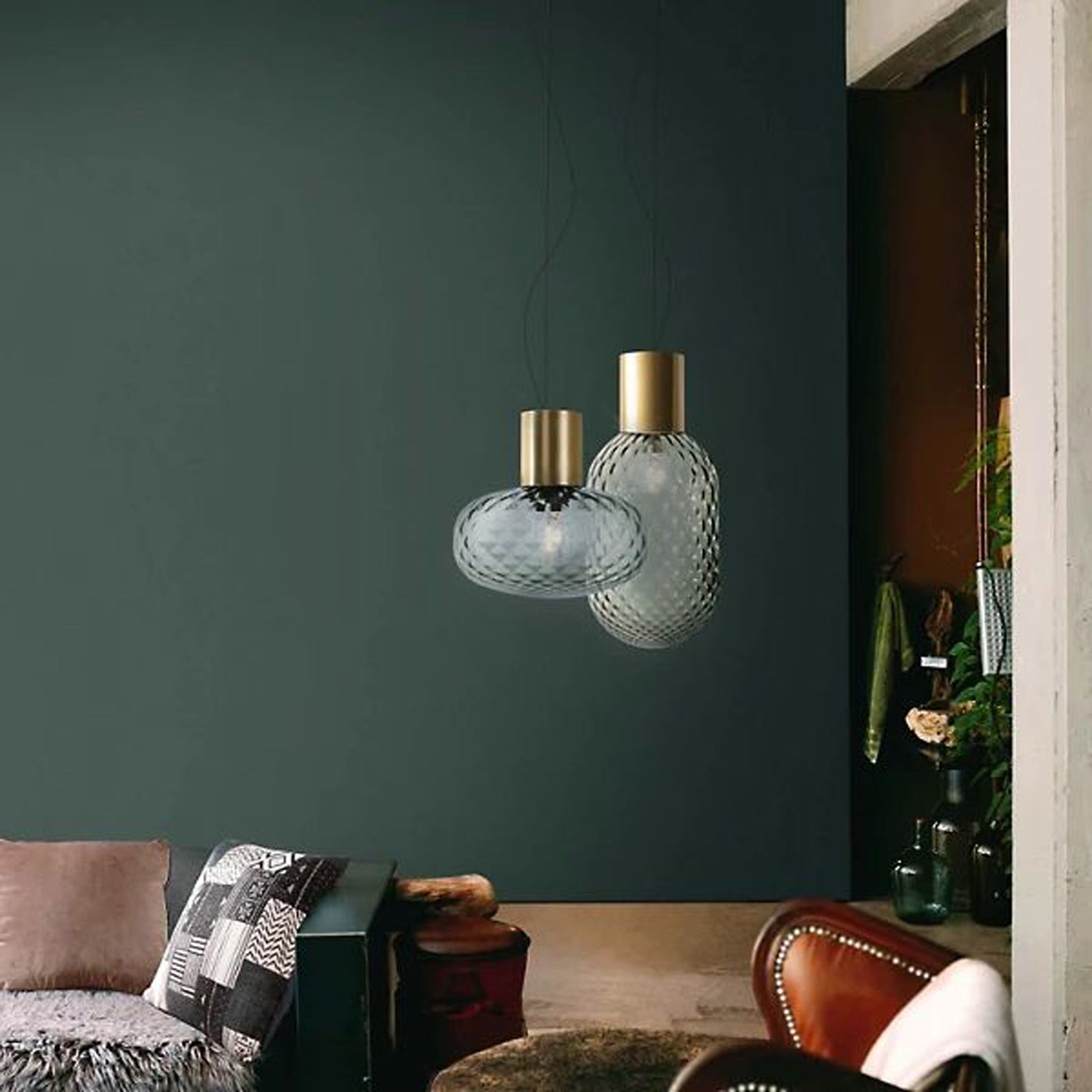 مصباح هيلينا المعلق مستوحى من زجاجات العطور العتيقة والعطور الشرقية، وهو مصنوع من زجاج فاخر بتصميم آسر. متوفر بزجاج رمادي أو برونزي مُعتّق، ويتيح لك هذا الثريا تخصيص الأجواء - من مشرقة وحيوية إلى هادئة وحزينة - حسب نوع الزجاج ومصدر الإضاءة الذي تختاره. تضفي هذه الثريا الإيطالية الحائزة على جوائز لمسة من الأناقة الراقية والسحر الفني على أي مساحة.
