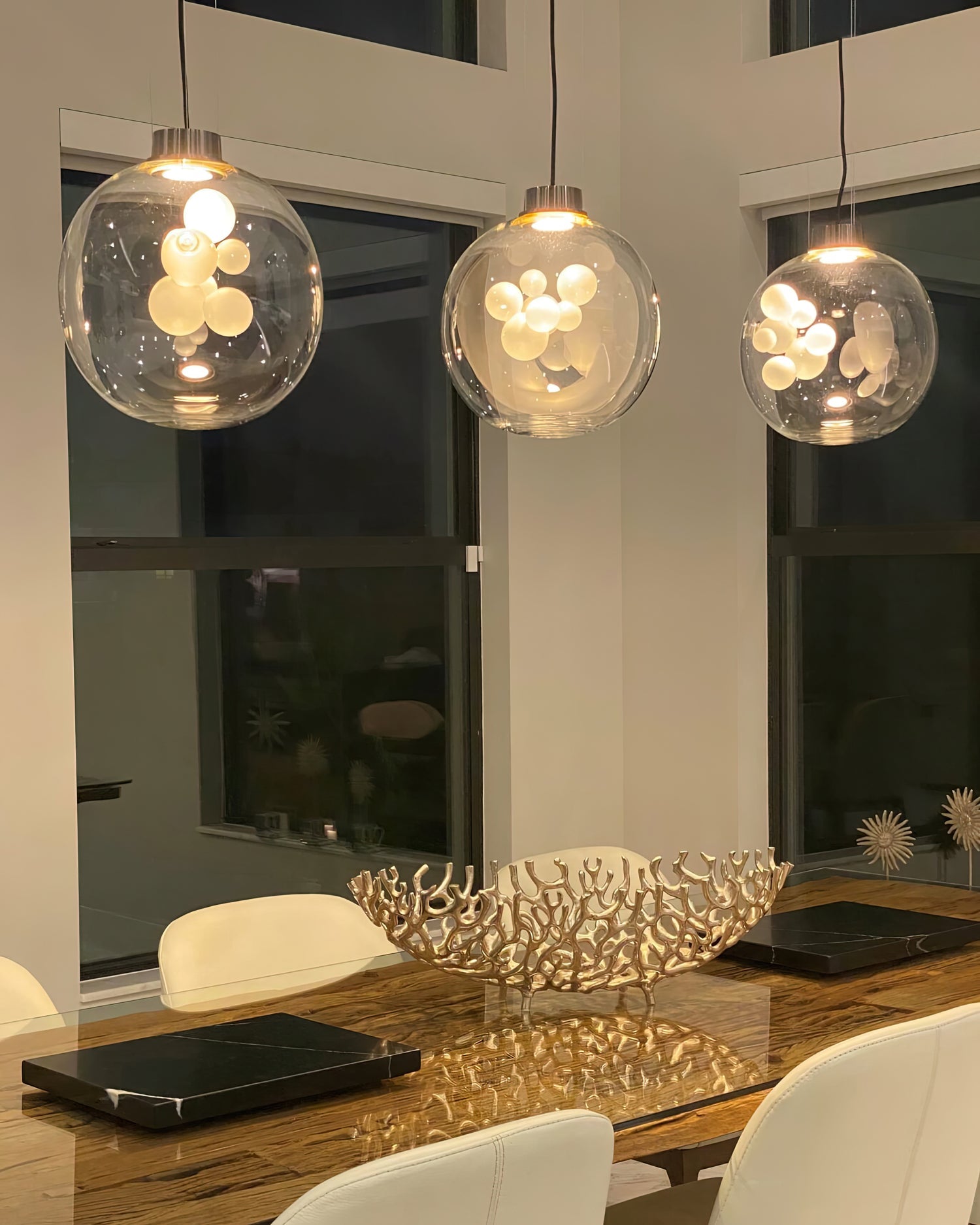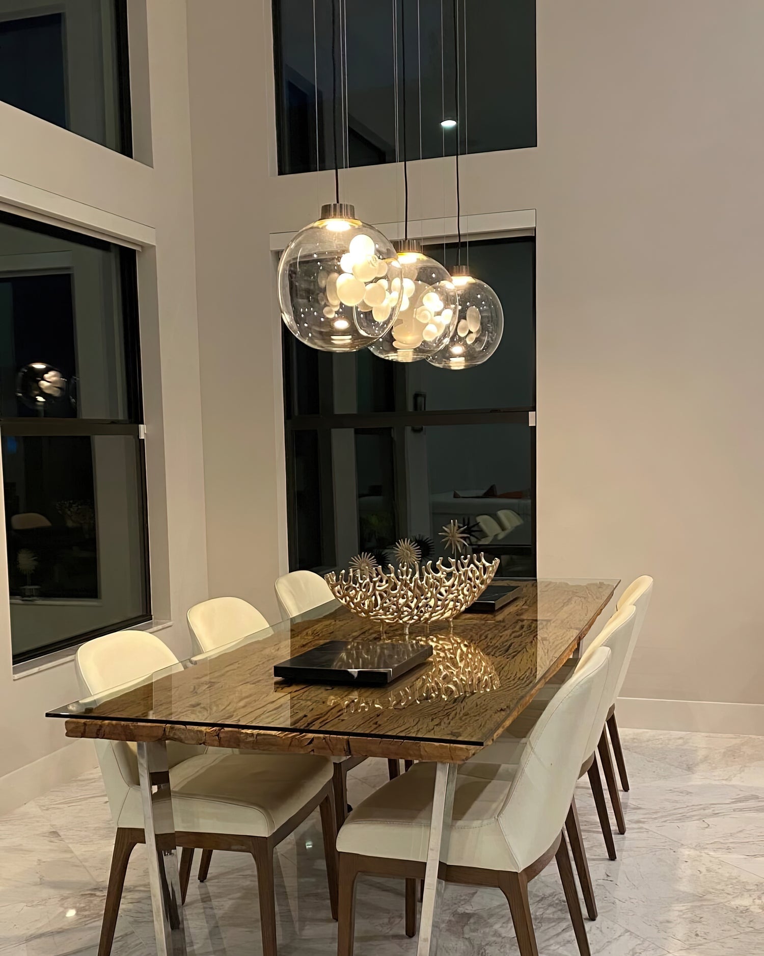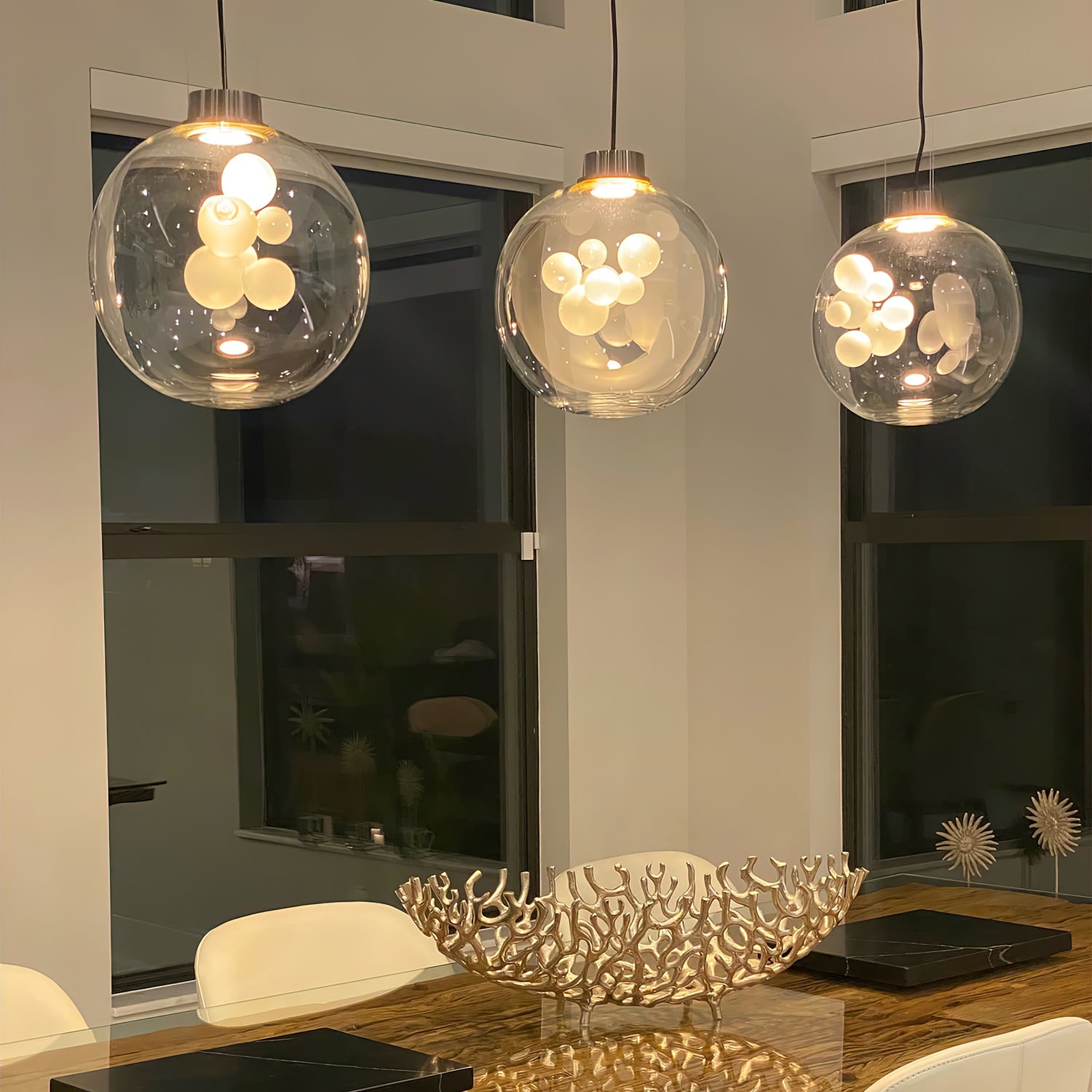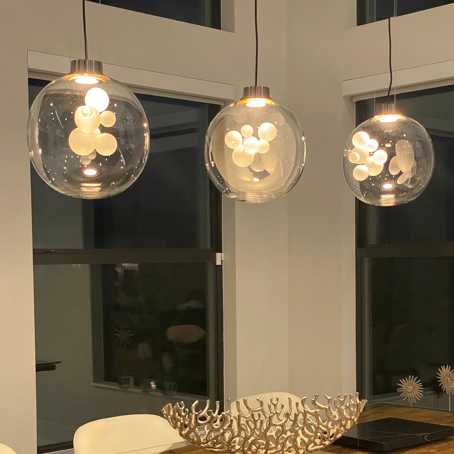 The Danya Pendant Light skillfully transforms light into art. Its mirrored exterior cleverly conceals an intricate glass sculpture within, revealed only when illuminated. The interplay of reflection and transparency creates a captivating visual experience, showcasing the designer's exquisite craftsmanship and ingenuity. The Danya Chandelier not only illuminates your space but also serves as a sophisticated finishing touch, elevating any interior with its dynamic, luminous appearance.