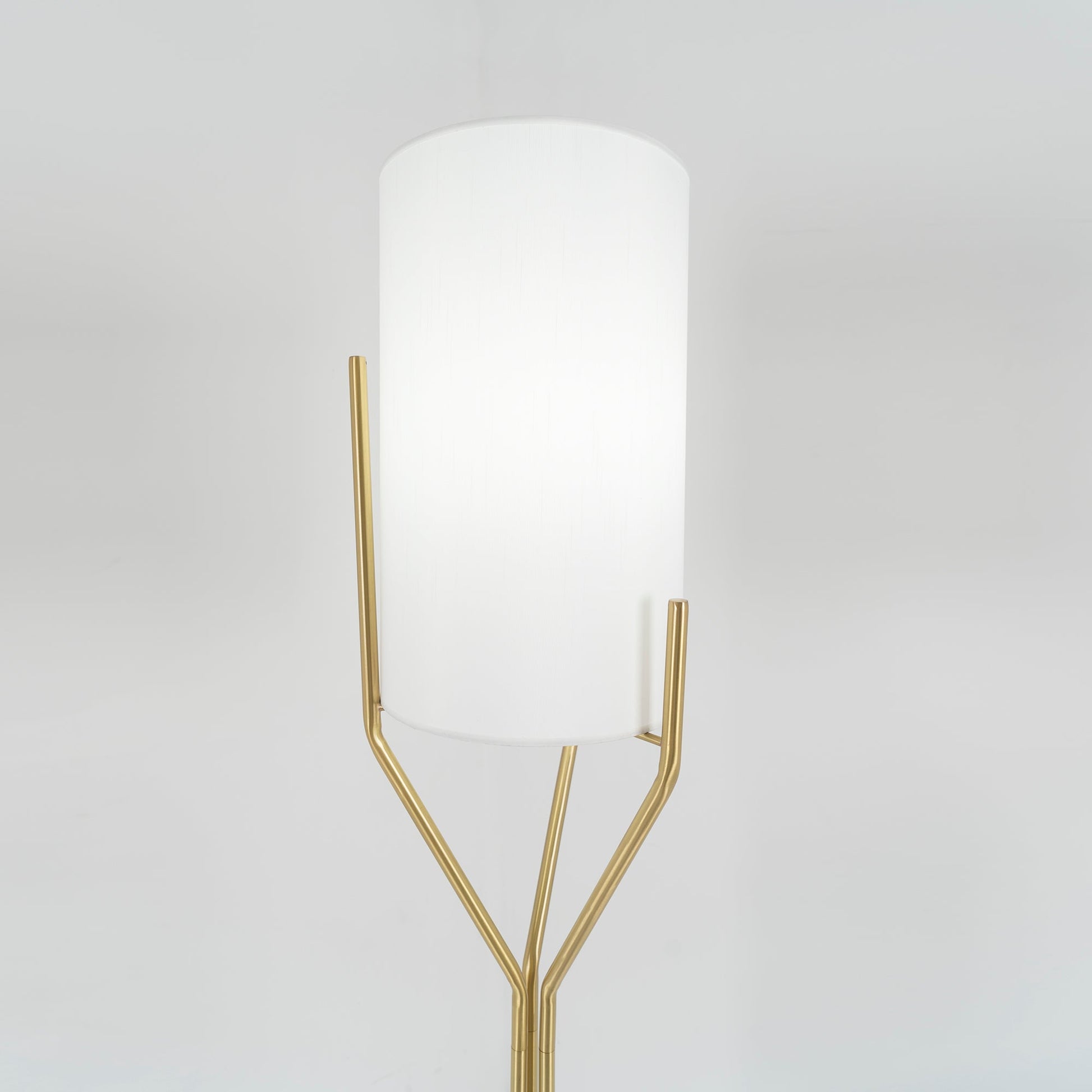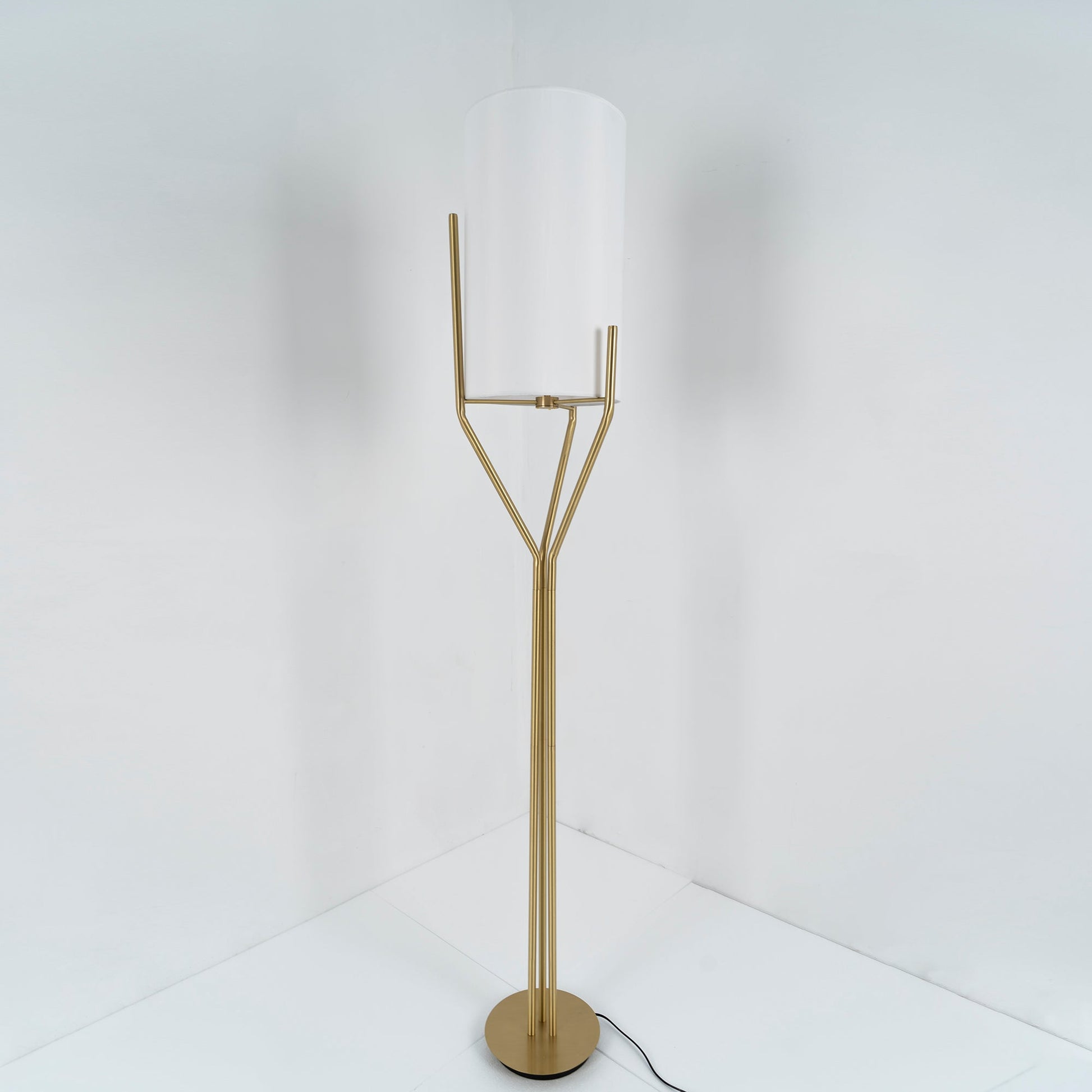 The stylish and minimalist Arborescence floor lamp. The stylish and minimalist Arborescence features a white cloth hood, satin or polished brass finish. There are three lengths to choose from.