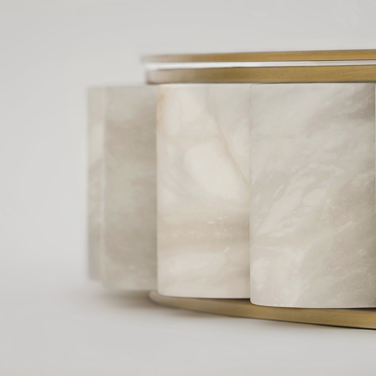 Inspired by the legendary island, from where mystical stories of light and shadows have enchanted the world for centuries, avalon showcases cascades of light emanating from a precious ring of alabaster, encapsulated in brass or bronze creating an exquisite illumination.