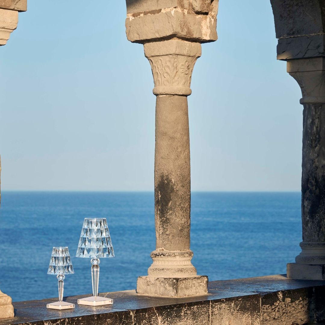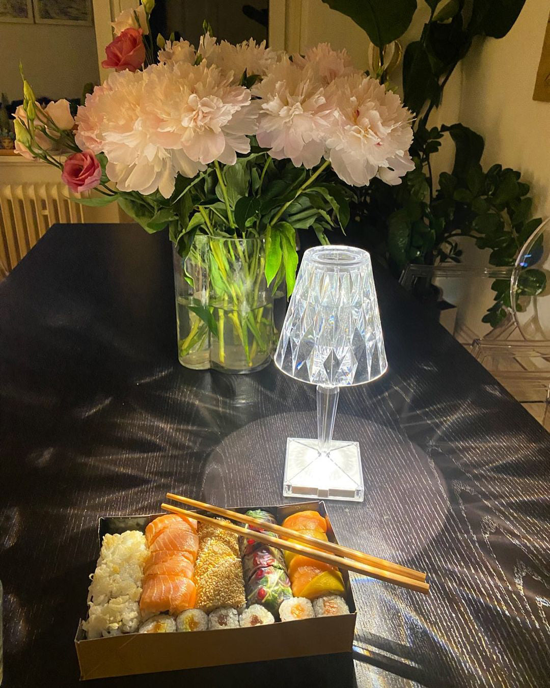 The battery is a compact desk lamp. Its innovation is that it can be charged 100% due to a simple electric plug, and the battery life is up to 8 hours. This makes it easy to move, ideal for temporary contract settings, for use in cafes or open-air restaurants.