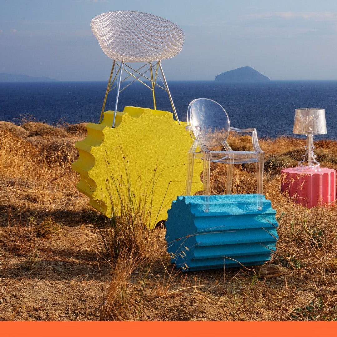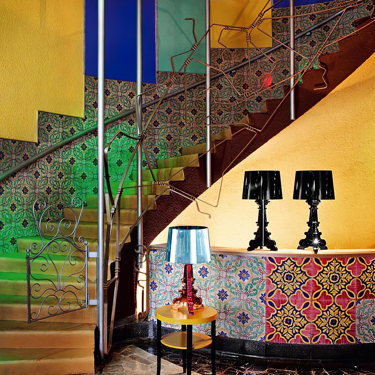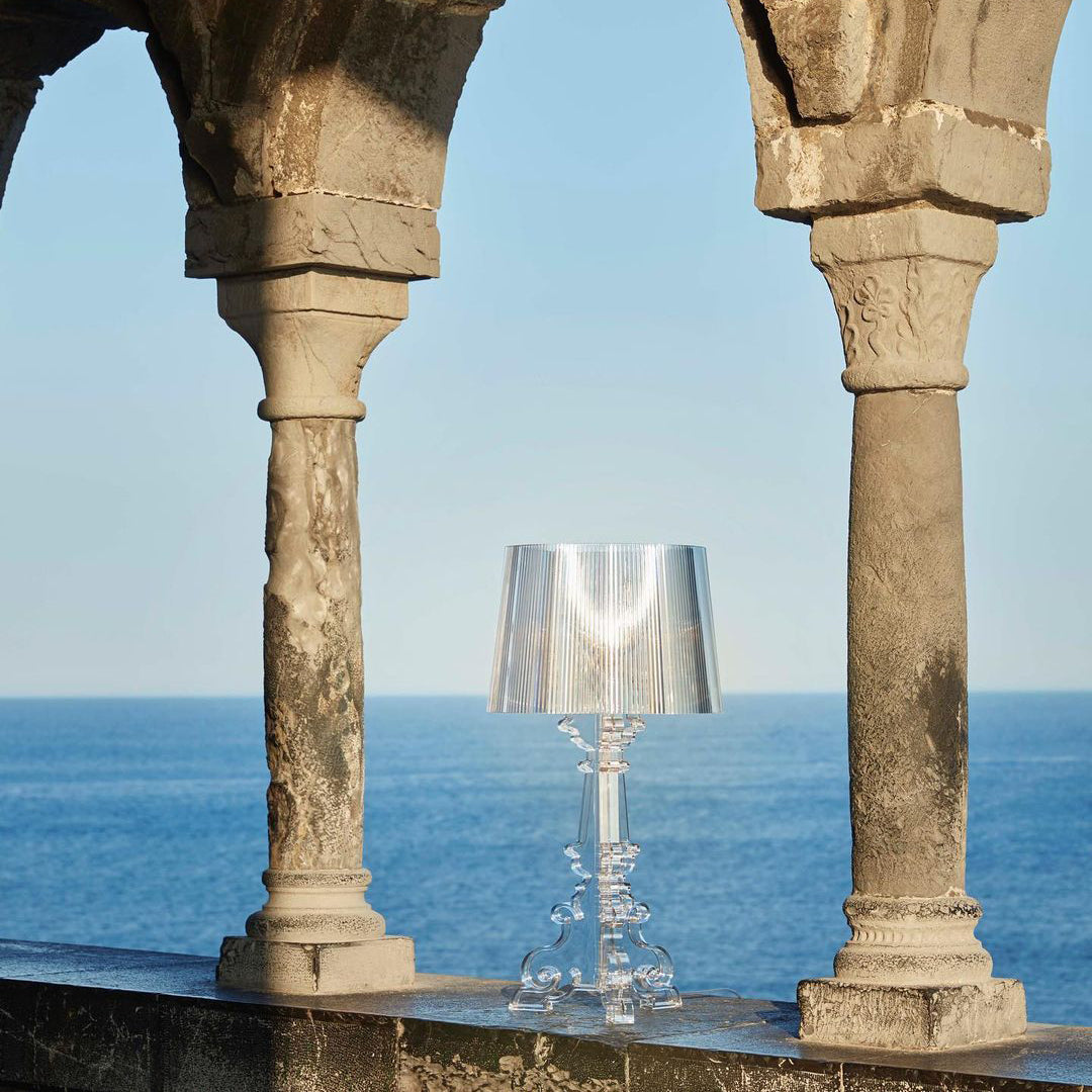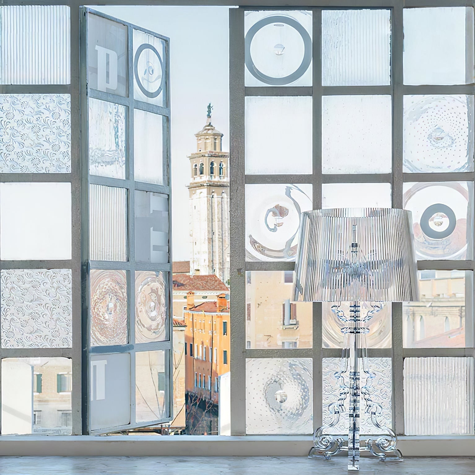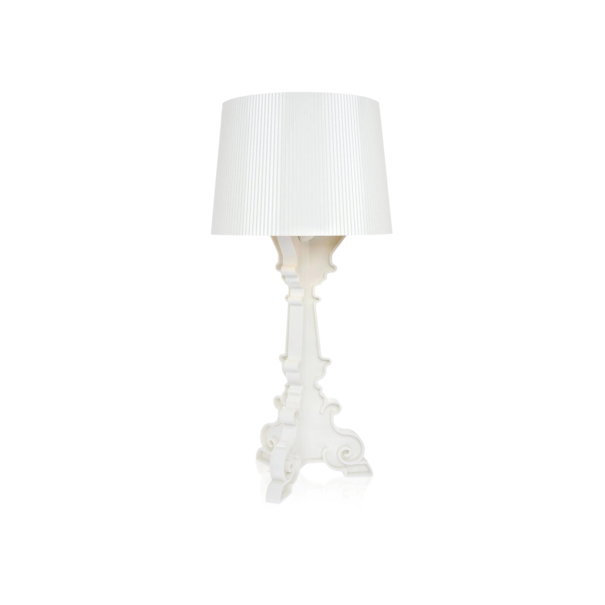 Bourgie unites classicism, wealth and tradition with technological innovation. The baroque-style base consists of three decorated elements that interlock, while the large shade is created with a pleated effect which creates a multitude of reflections when lit.