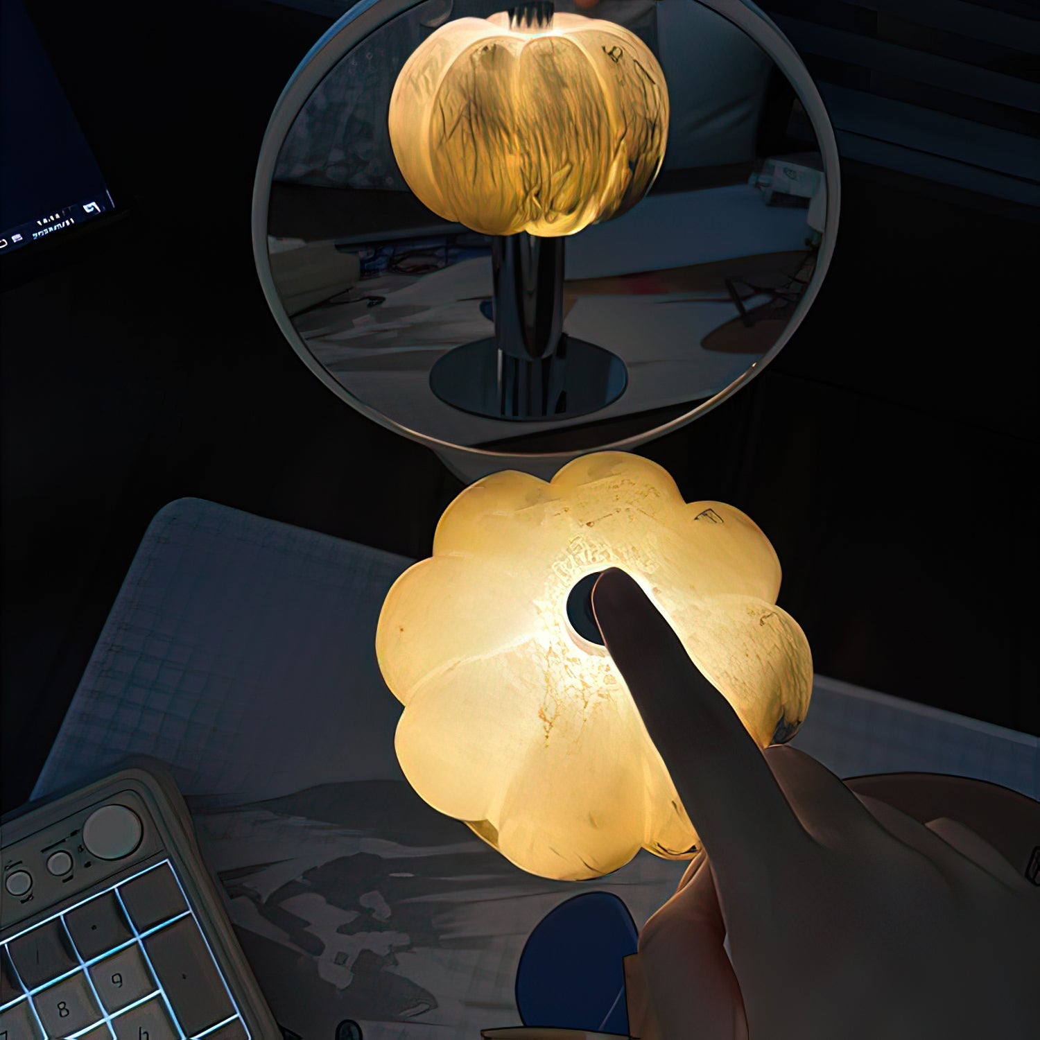 The Brumate Table Lamp, with its alabaster shade, emits a calming candlelight glow, perfect for creating a soothing work ambiance. The polished columnar base adds a modern touch, while the pumpkin and flower bud silhouettes create a soft, natural ambiance. When illuminated, the natural texture of the stone surface intensifies, softening the light and alleviating screen fatigue. Perfect for adding a touch of warmth to a corner or adding a soft, elegant glow to your desk, this desk lamp perfectly elevates any setting.