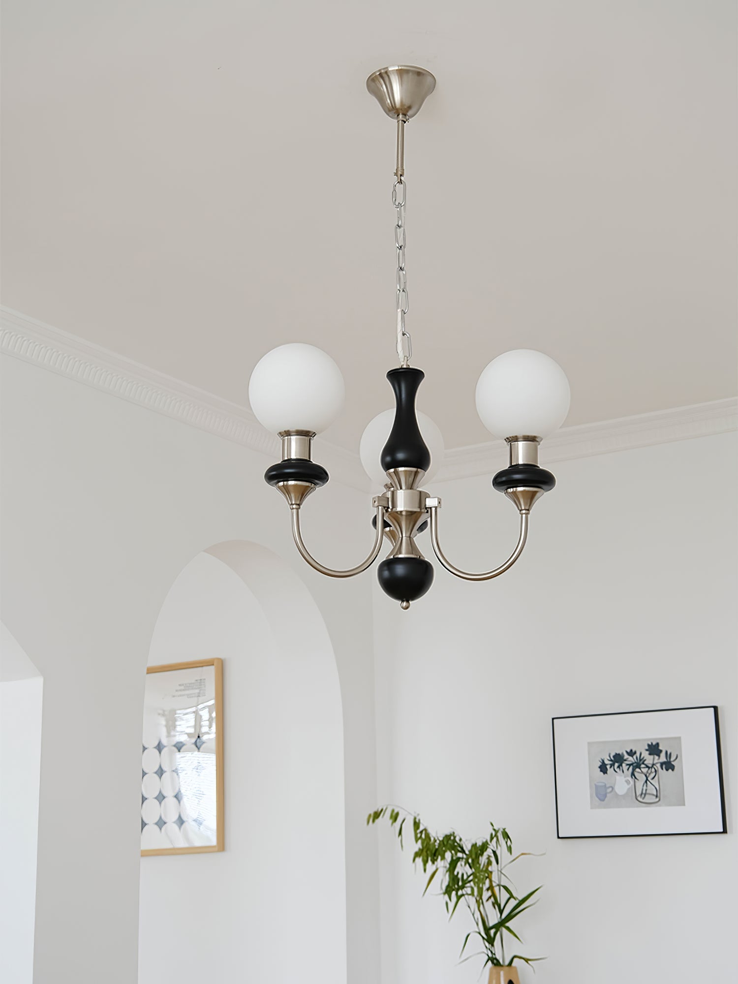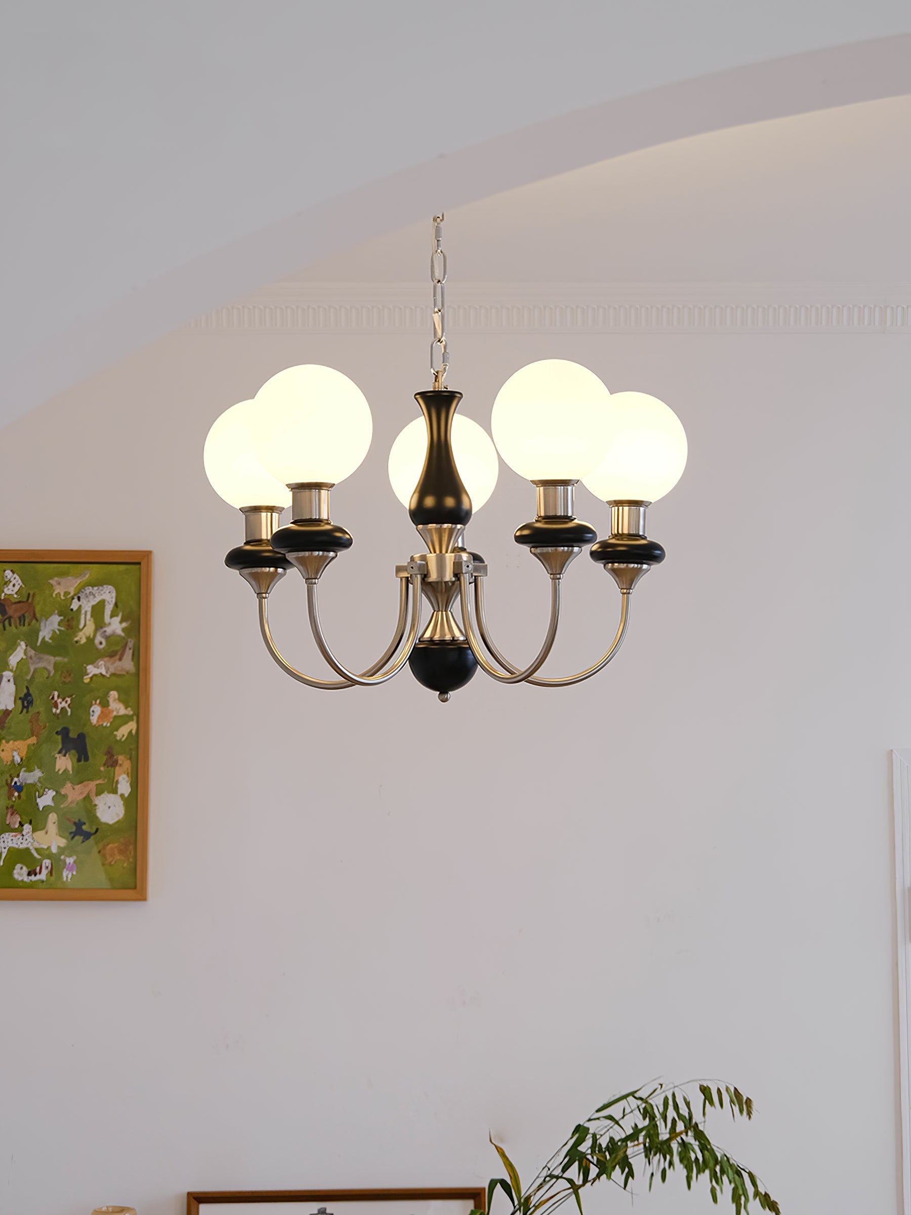 The iron casting process means this chandelier is light yet durable. The combination of the metal body and frosted glass shade give the chandelier a beautiful country house style.