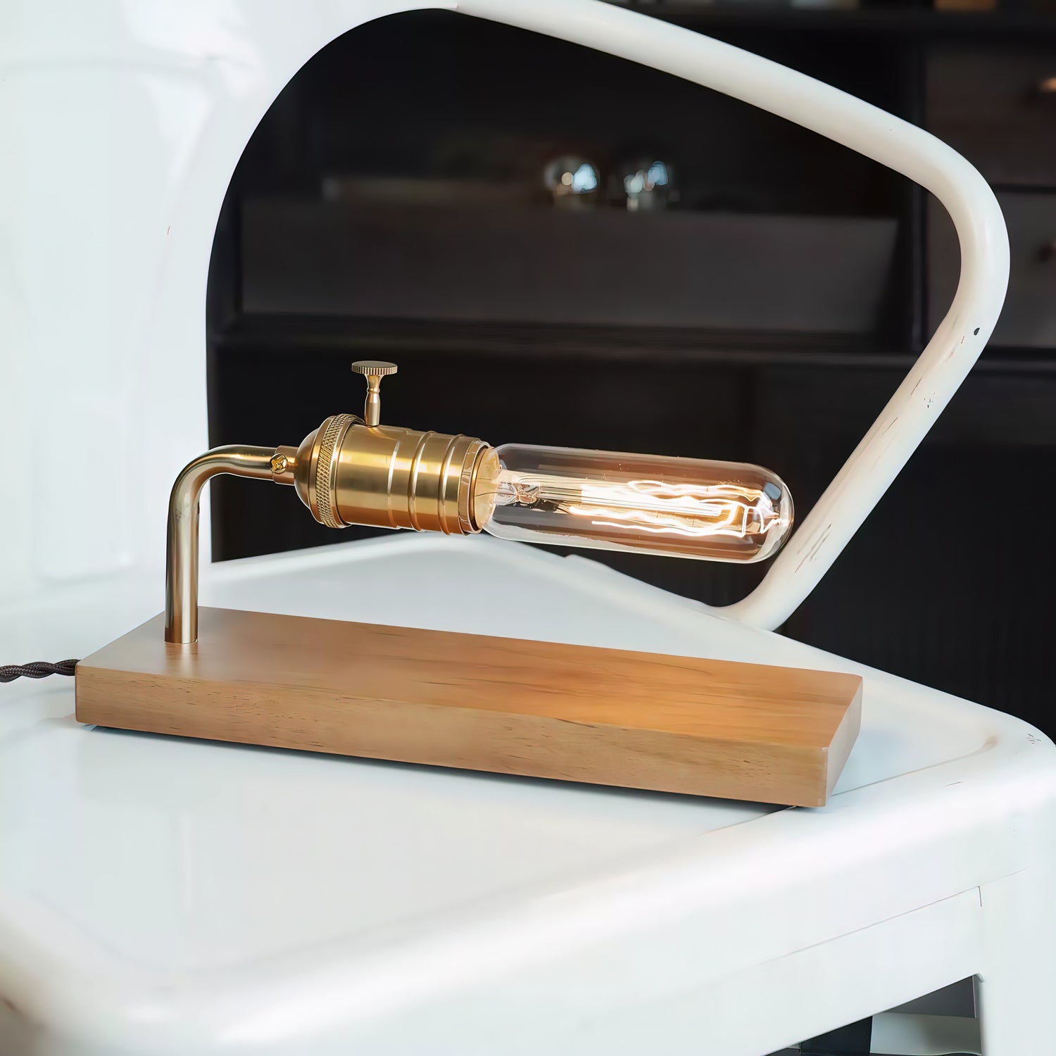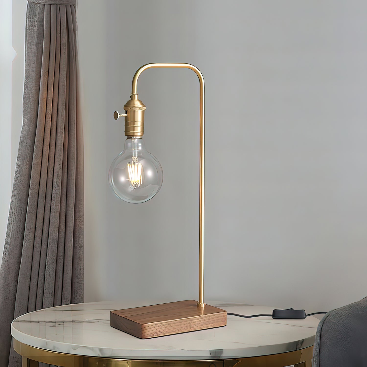 The Celio table lamp combines minimalist elegance with expert craftsmanship, featuring a sleek golden metal rod and a warm wooden base for stable support. Its large transparent bulb delivers a soft, inviting glow, ideal for creating a cozy atmosphere. Lightweight and easy to reposition, this lamp suits both home and office environments, offering versatile lighting with refined style.