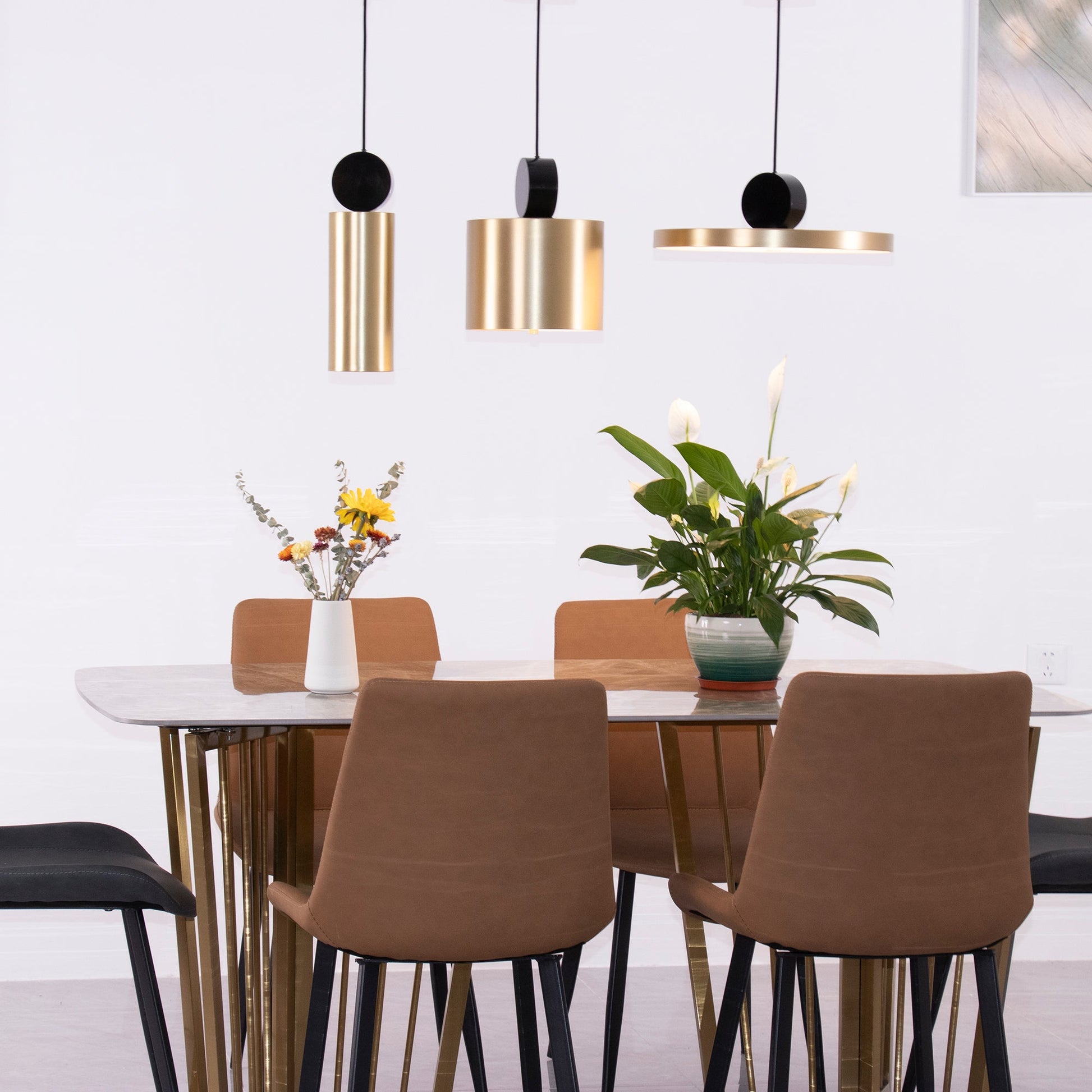 We offer two materials black + electroplated copper and black + polished brass.