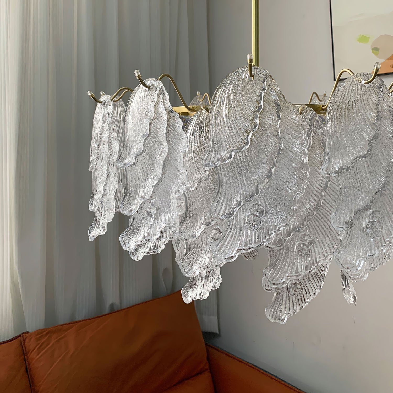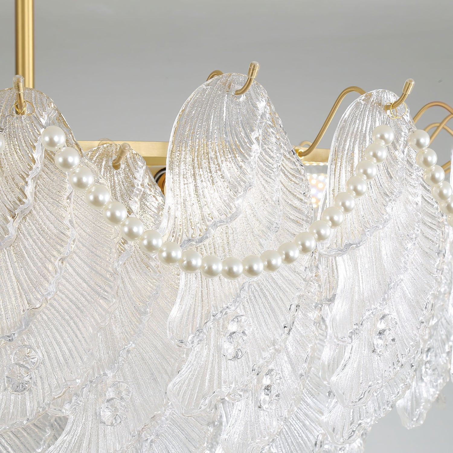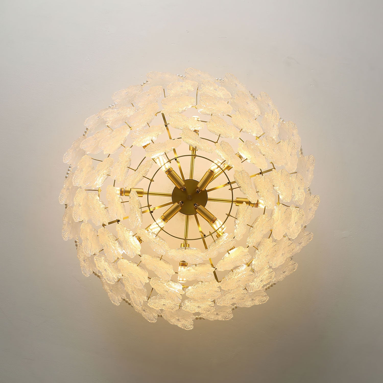 The Corbett Chandelier combines exquisite craftsmanship with natural inspiration, featuring feather-like glass panels that diffuse light softly for a warm, welcoming glow. Its brushed brass frame enhances its sophisticated allure, making it a versatile centerpiece for both modern and traditional interiors. Ideal for living rooms, dining areas, or entryways, this chandelier elevates any space with refined elegance and an inviting atmosphere.