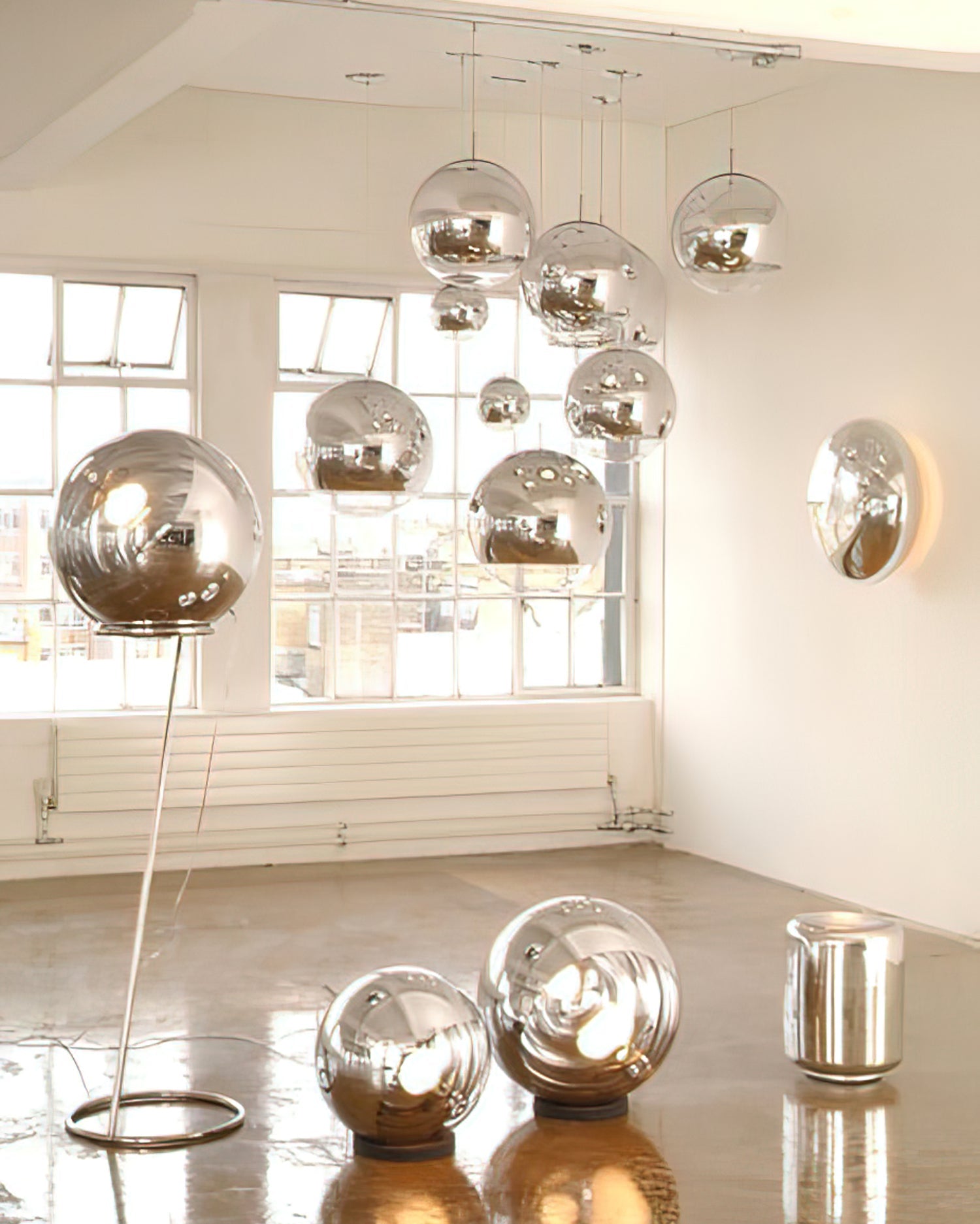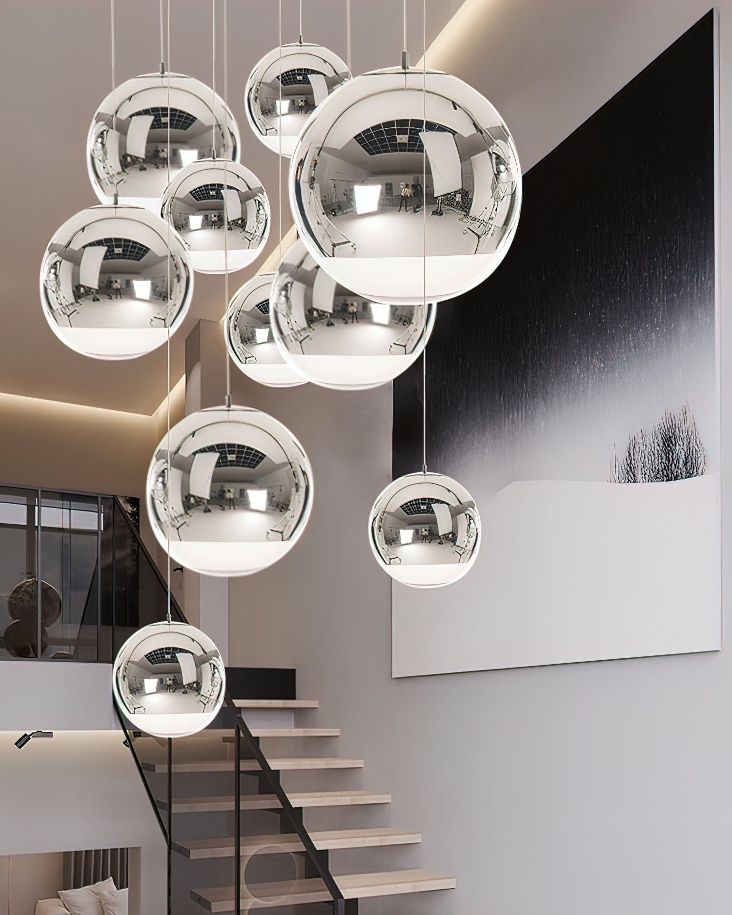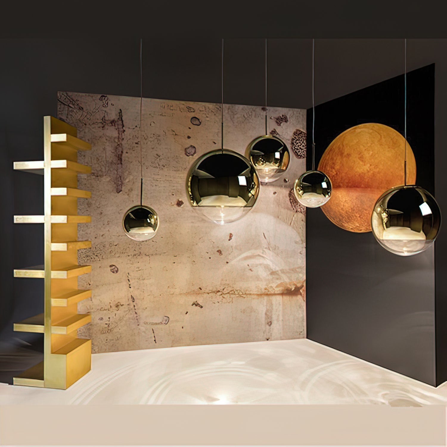 The Dalida Pendant Light seamlessly blends modern design with exquisite craftsmanship. Its mirrored glass globe is crafted from a sophisticated blend of glass and stone. Its fluid shape, accented by anodized finishes in copper, rose gold, and gold, enhances its sophistication and versatility. This chandelier adds a touch of understated charm to any room, seamlessly blending modern aesthetics with timeless elegance to create a sophisticated interior.