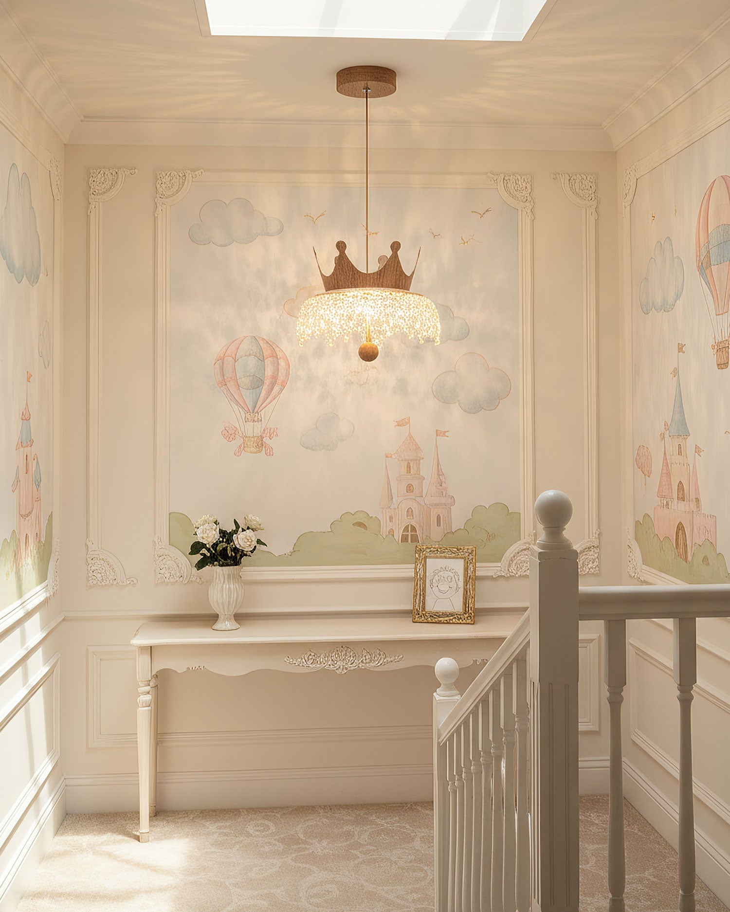The Emmanual Pendant Light combines warm wood with cascading crystal accents to evoke playful elegance. Its crown-inspired silhouette adds regal charm, while illuminated crystals cast a radiant glow that dances across any room. Perfect for bedrooms, children’s rooms, or cozy living spaces, this pendant infuses your interior with a whimsical fairytale ambiance grounded in sophisticated design.