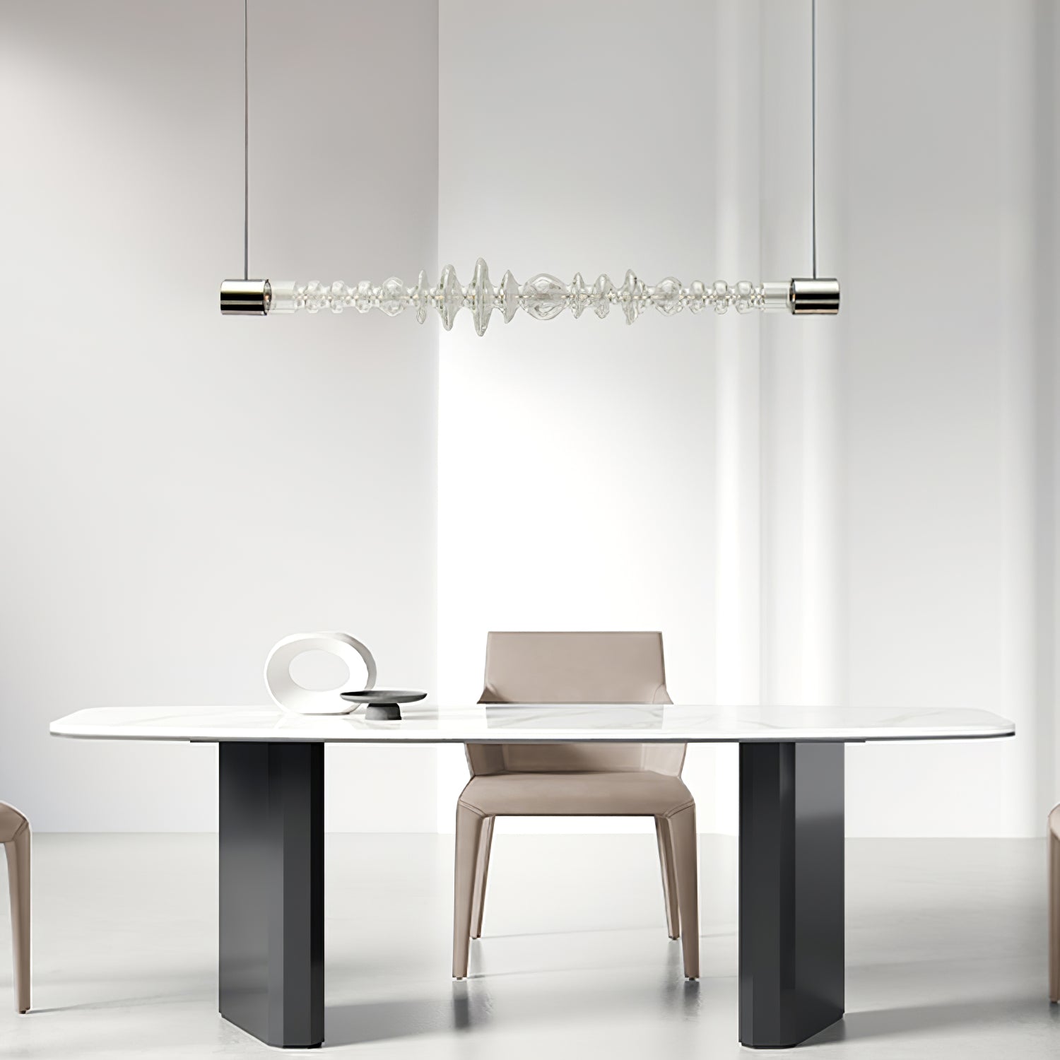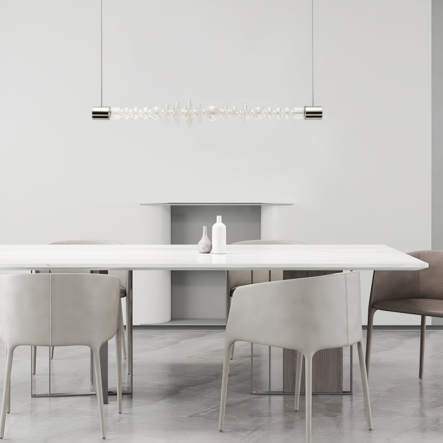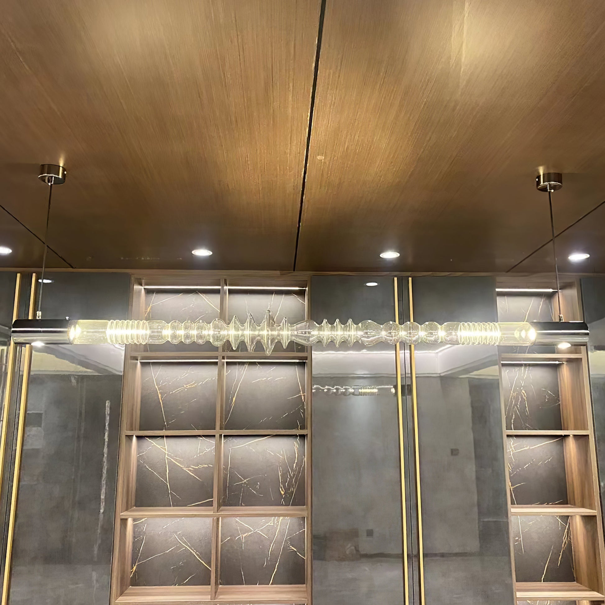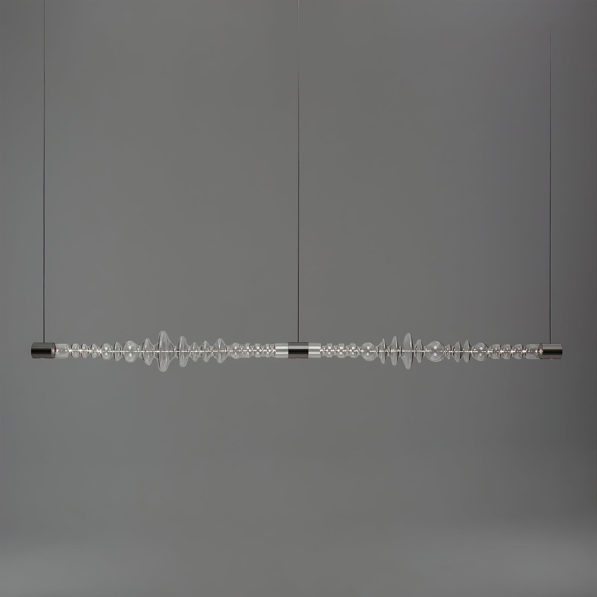 Filamento is a sculptural piece made of a single piece of glass more than one meter long. When illuminated, its form and matter disappear, giving way to a filament of light as a result of the study of its geometry. The propagation of particles called photons becomes a visible and linear form of energy. It serves as a study of how light travels through concave and convex glass. It can be used outdoor and indoors.
