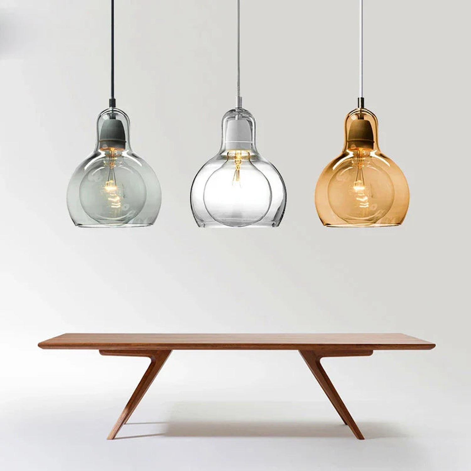 The Fritz Pendant Lamp showcases Nordic craftsmanship through its traditional hand-blown glass technique, forming a sleek gourd shape that highlights a classic exposed bulb filament. Its smoothly curved silhouette combines timeless design with modern elegance, casting a warm, exclusive glow that elevates any space with refined sophistication.