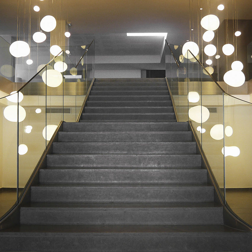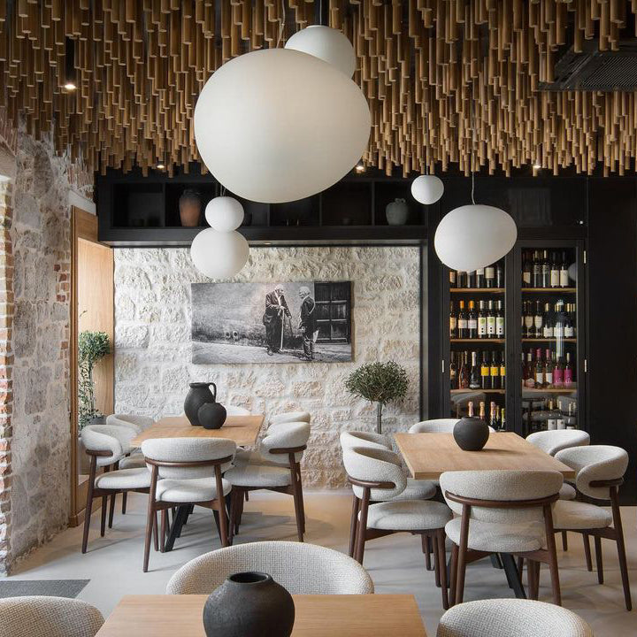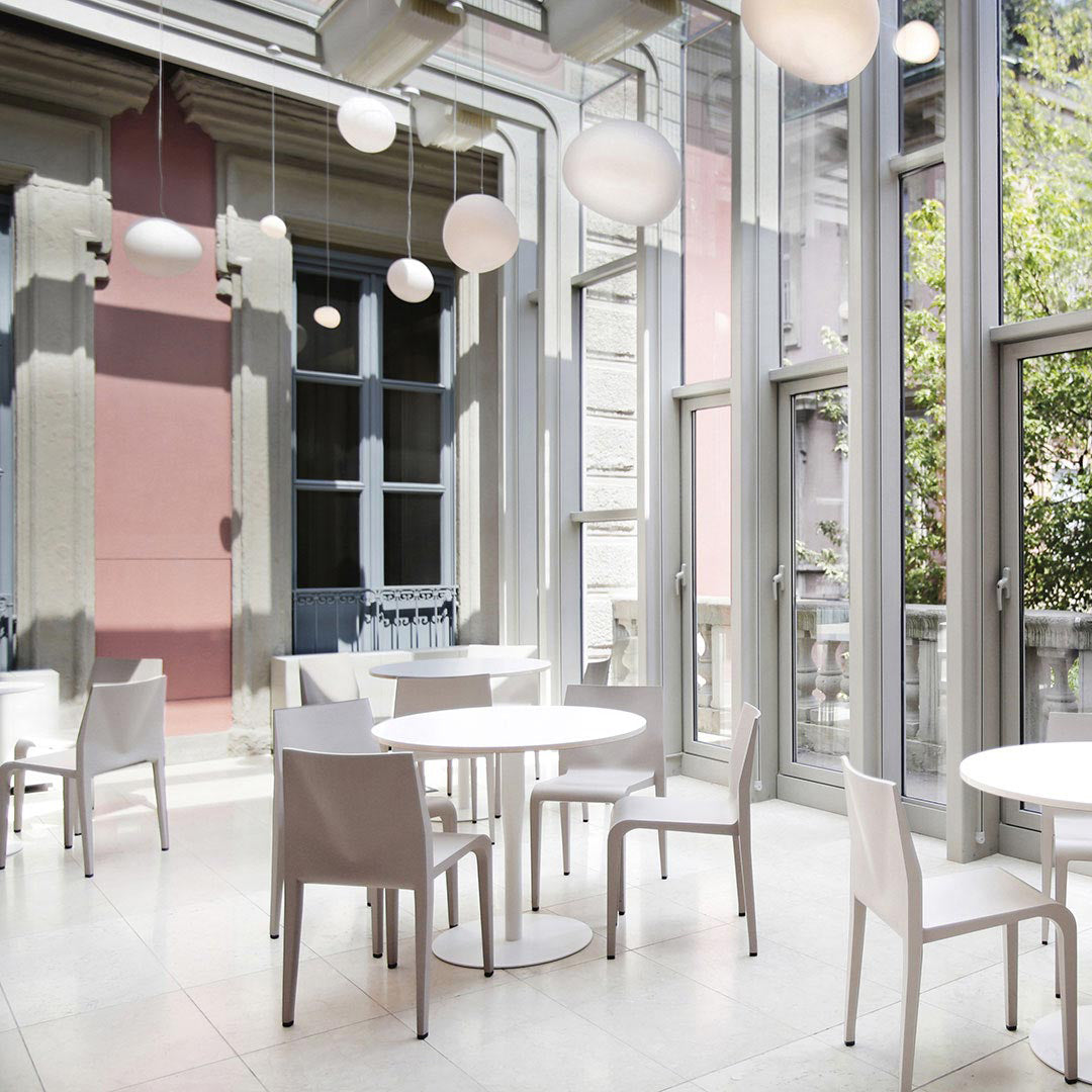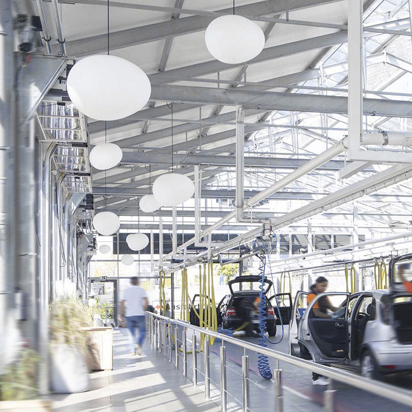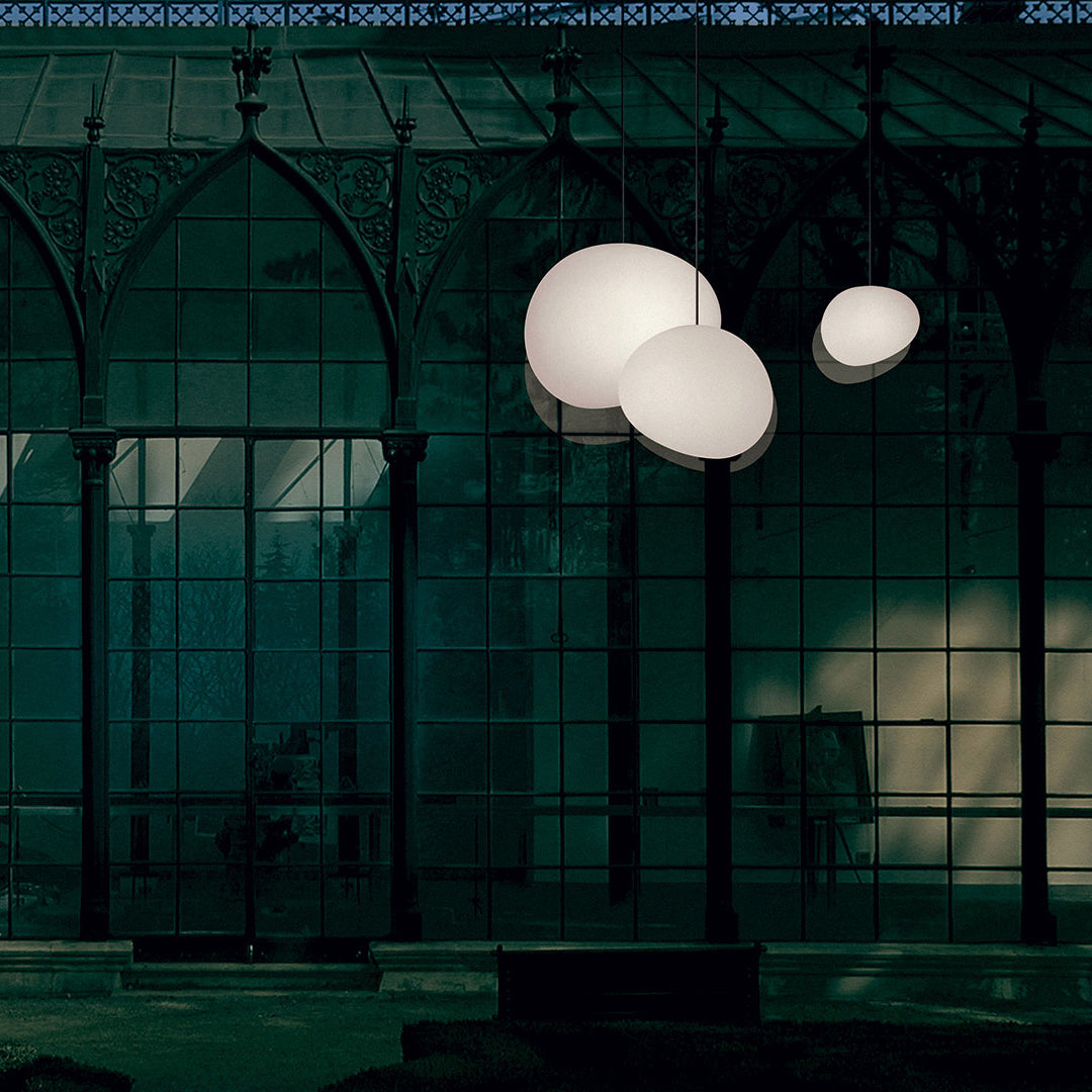 With its pleasantly organic shape, like pebbles smoothed by a river, the Gregg Outdoor Pendant lamps are perfect for creating magic scenes in the open air, thanks also to the various sizes available.