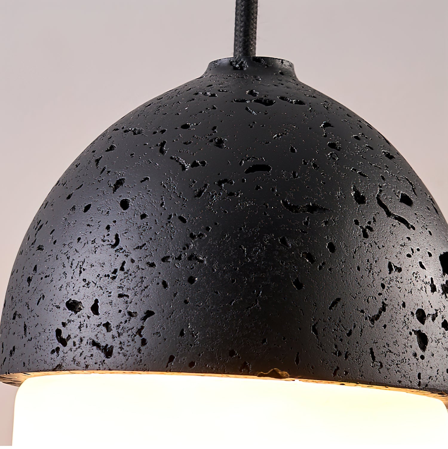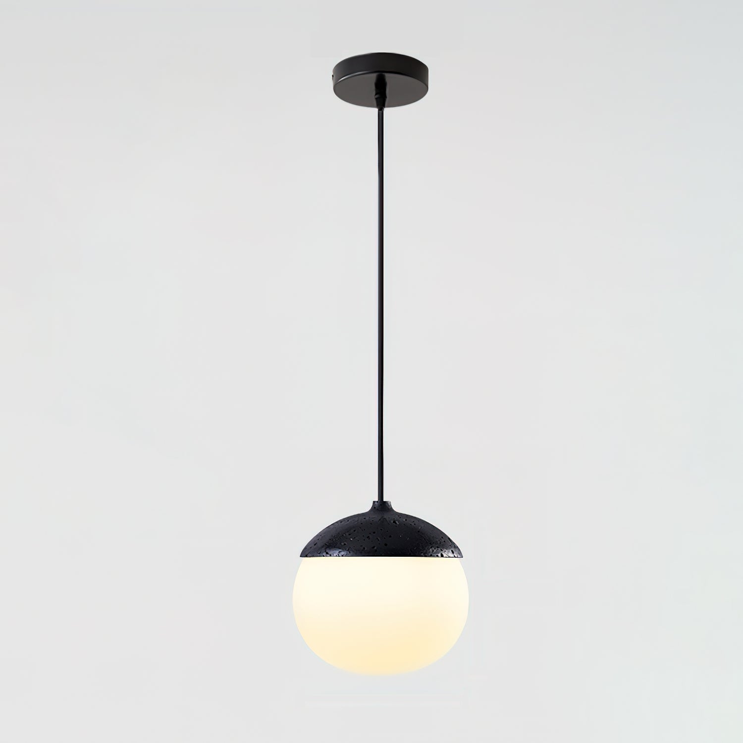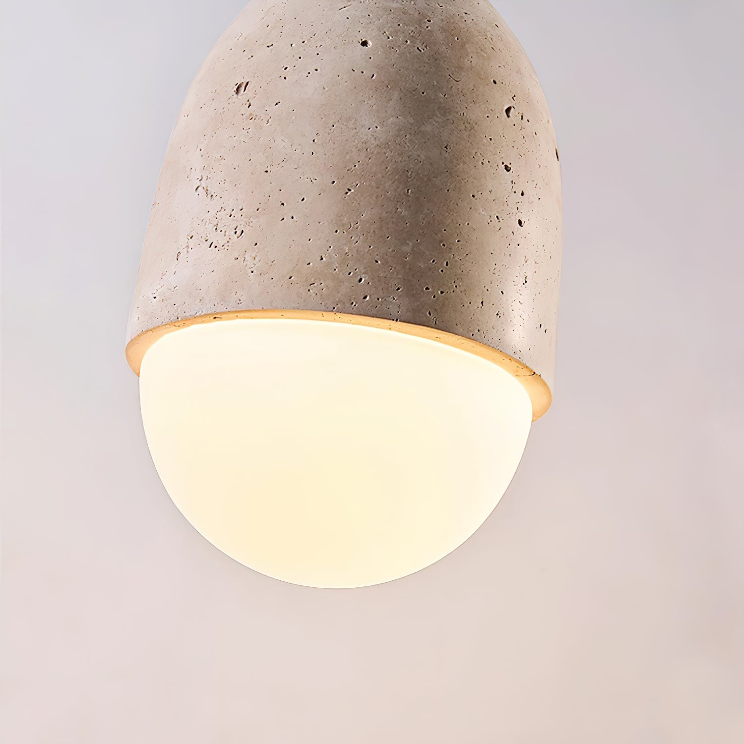 The Hammerton Pendant Light combines natural travertine stone with smooth white glass to create a pendant light that balances rustic texture and modern elegance. Its beige travertine upper section features unique porous patterns, while the soft white glass below diffuses warm, inviting light. Suspended by a sleek black cord, this fixture adds a refined yet organic touch to contemporary interiors seeking a natural, cozy ambiance.
