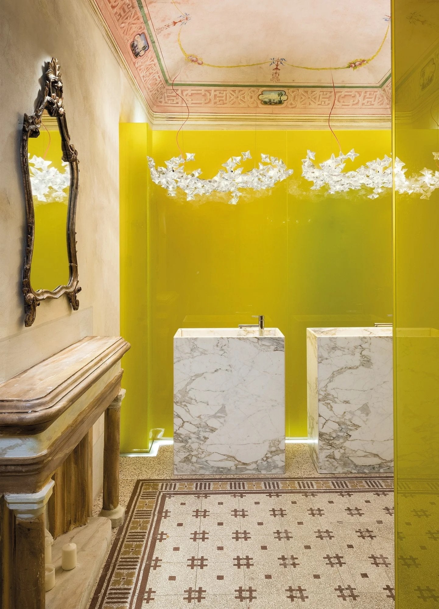 Hanami is a symbol of delicate poetry, taking its name from the traditional Japanese ritual of observing blossoming cherry trees. The Hanami family includes ethereal suspensions, available in two sizes, as well as an applique version that redefines the traditional ceiling lamp concept. Hanami’s unique, delicately coloured illumination is distributed throughout hand-folded flowers, a noble material that recreates diamond-like reflections, mounted on a painted steel and polycarbonate frame that houses its LED sources.