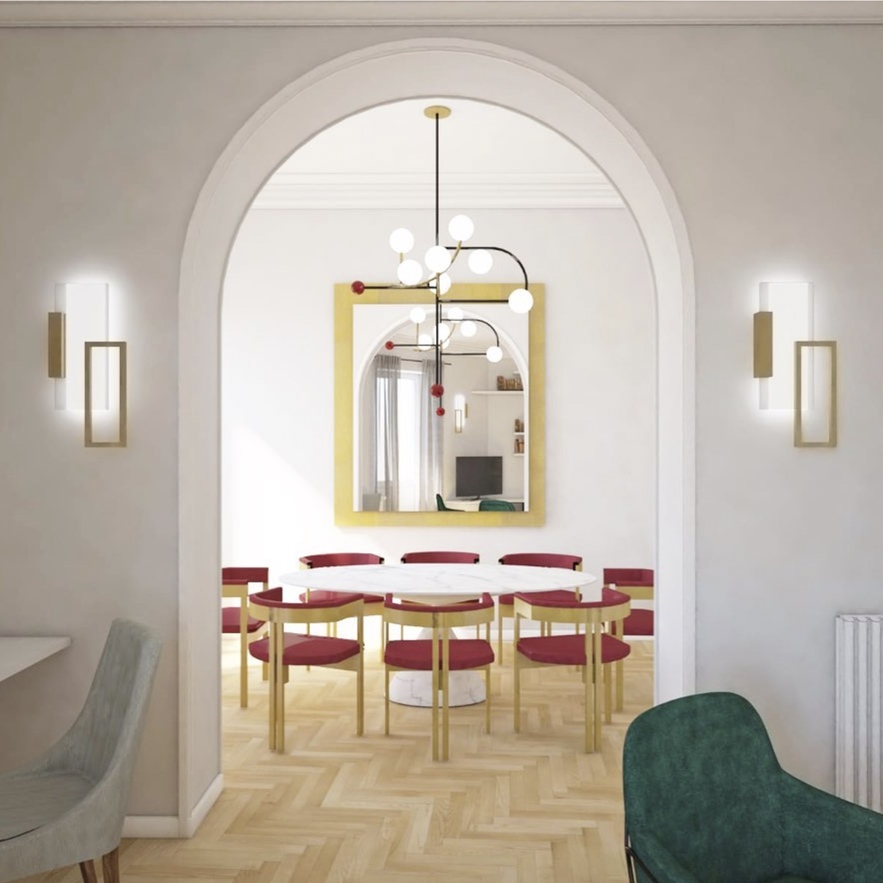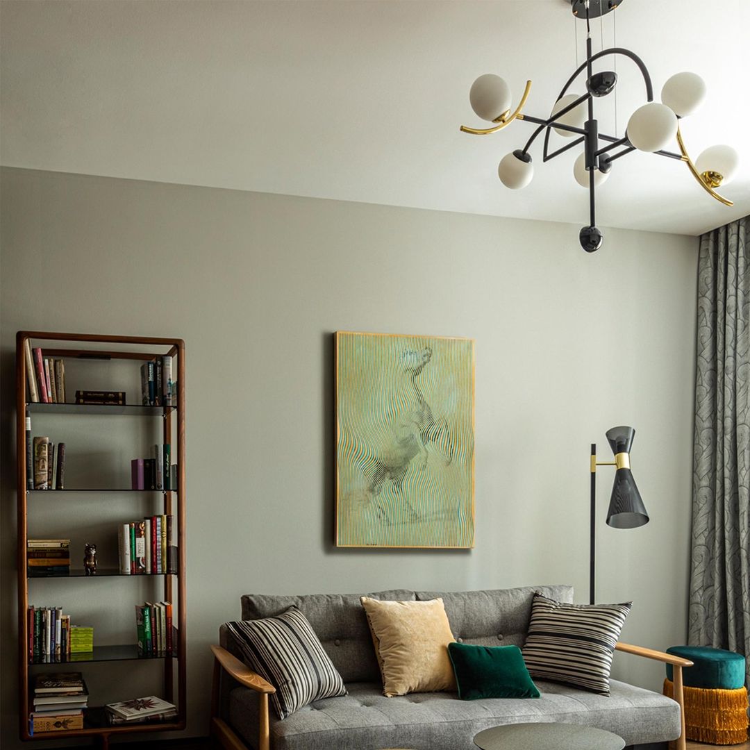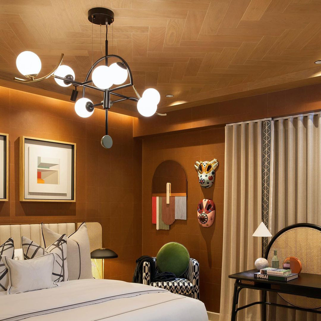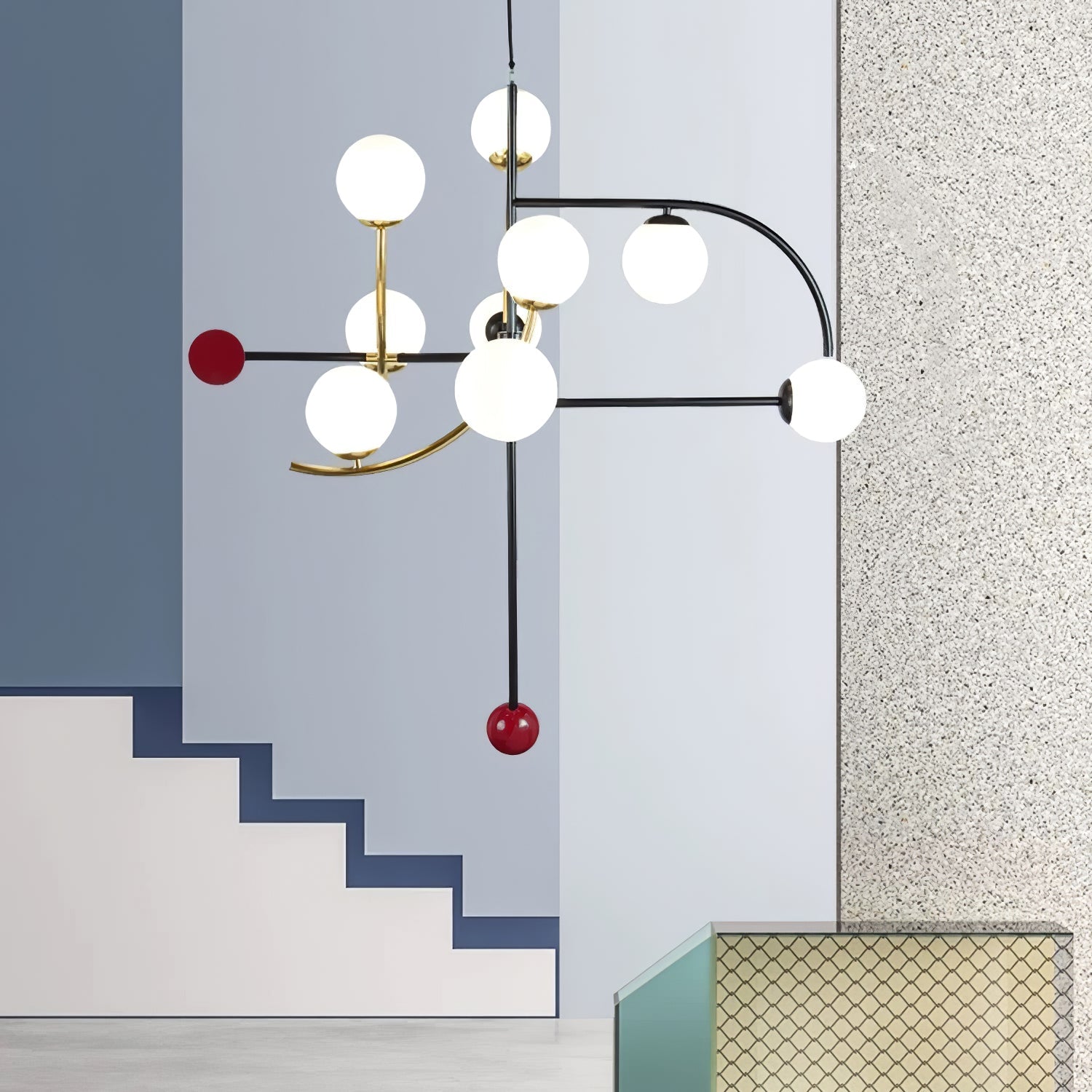 Helio is a playful and sculptural suspension light created . The light features glass spheres with lighting elements as well as decorative wooden half-spheres poised delicately on arc-shaped metal arms, resulting in an abstract shape that resembles a mobile sculpture. Helio is a spectacular statement light which works well in both residential and commercial spaces from living rooms and dining rooms to restaurants and reception areas.