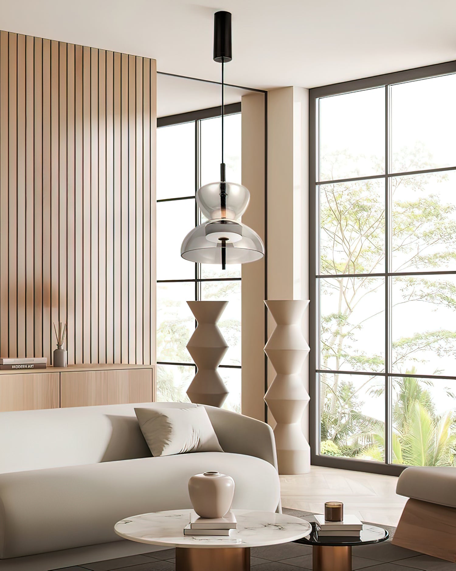 The Jesco Pendant Light features an organic glass design inspired by oriental philosophy, blending delicate form with warm, inviting illumination. Its harmonious shape creates a cozy atmosphere, enhancing the aesthetic of dining rooms, living areas, or bedrooms. Versatile in style, it can be paired with matching pieces or combined in varied colors to craft distinctive, innovative lighting arrangements.