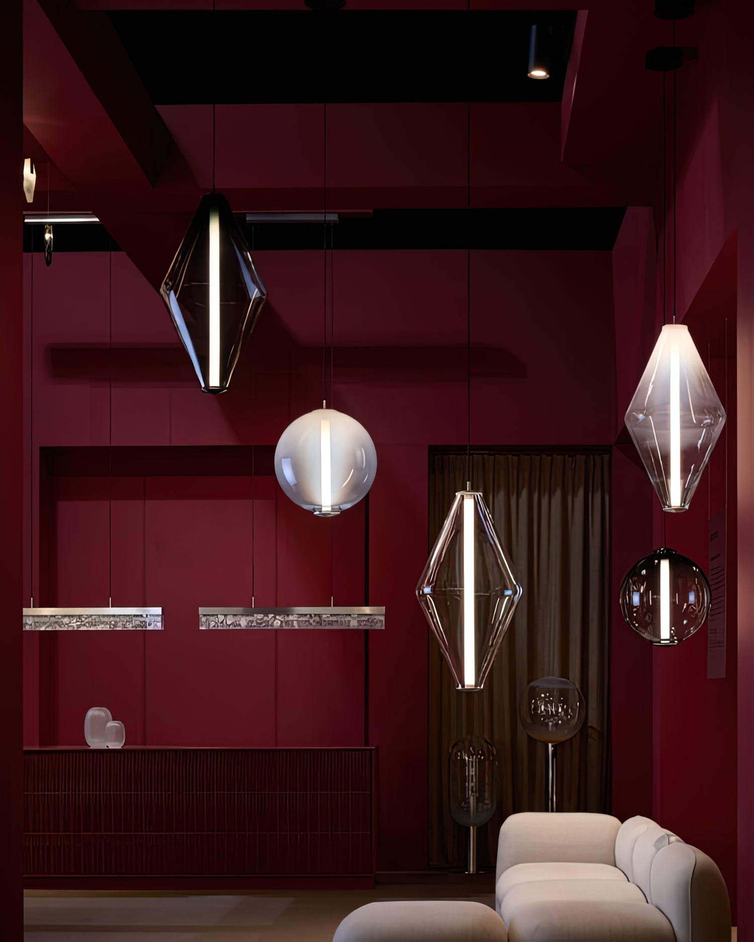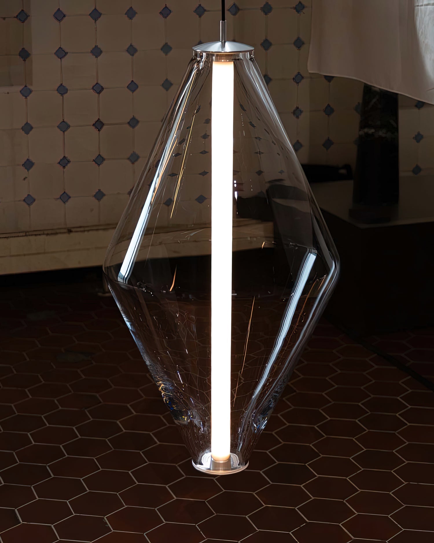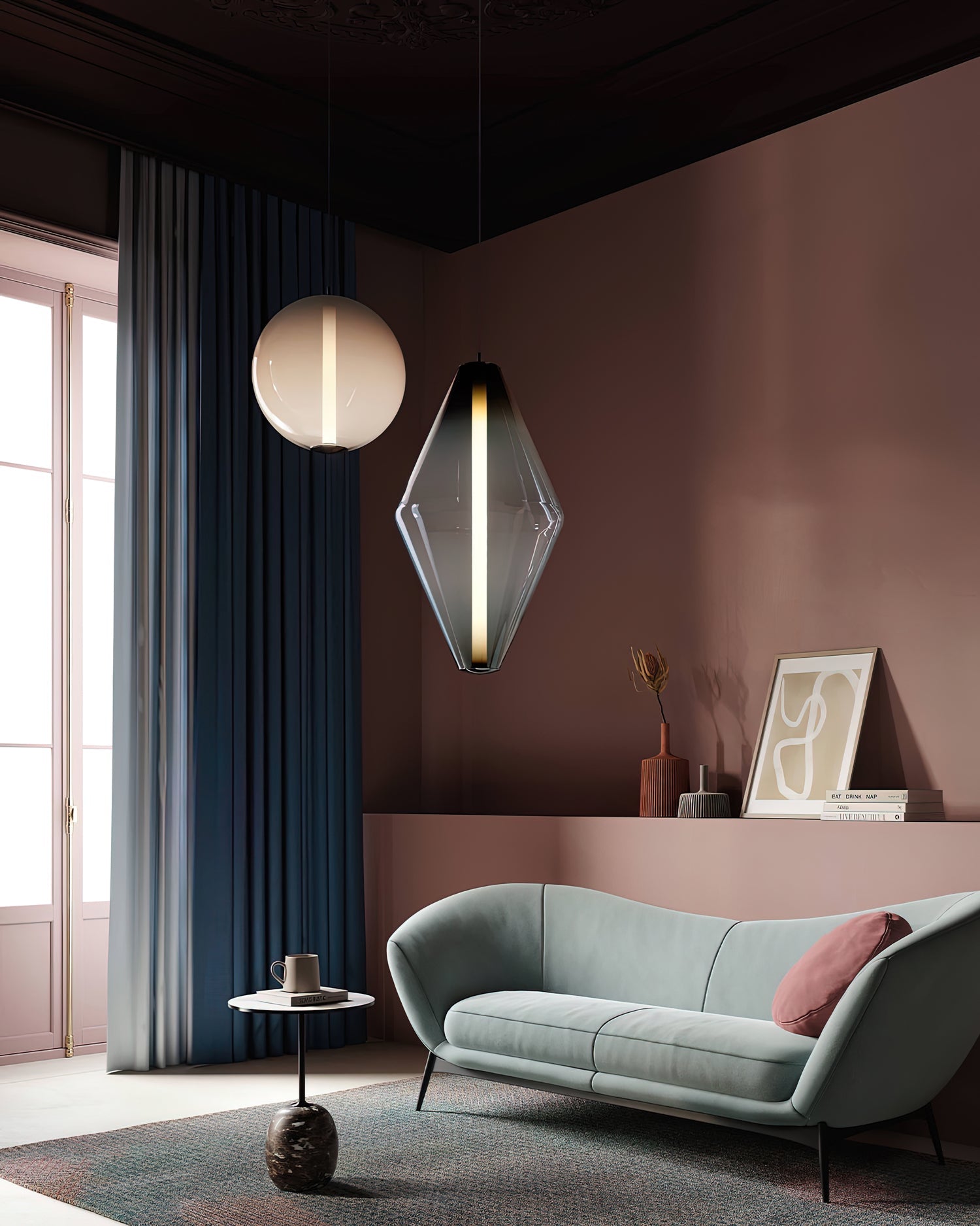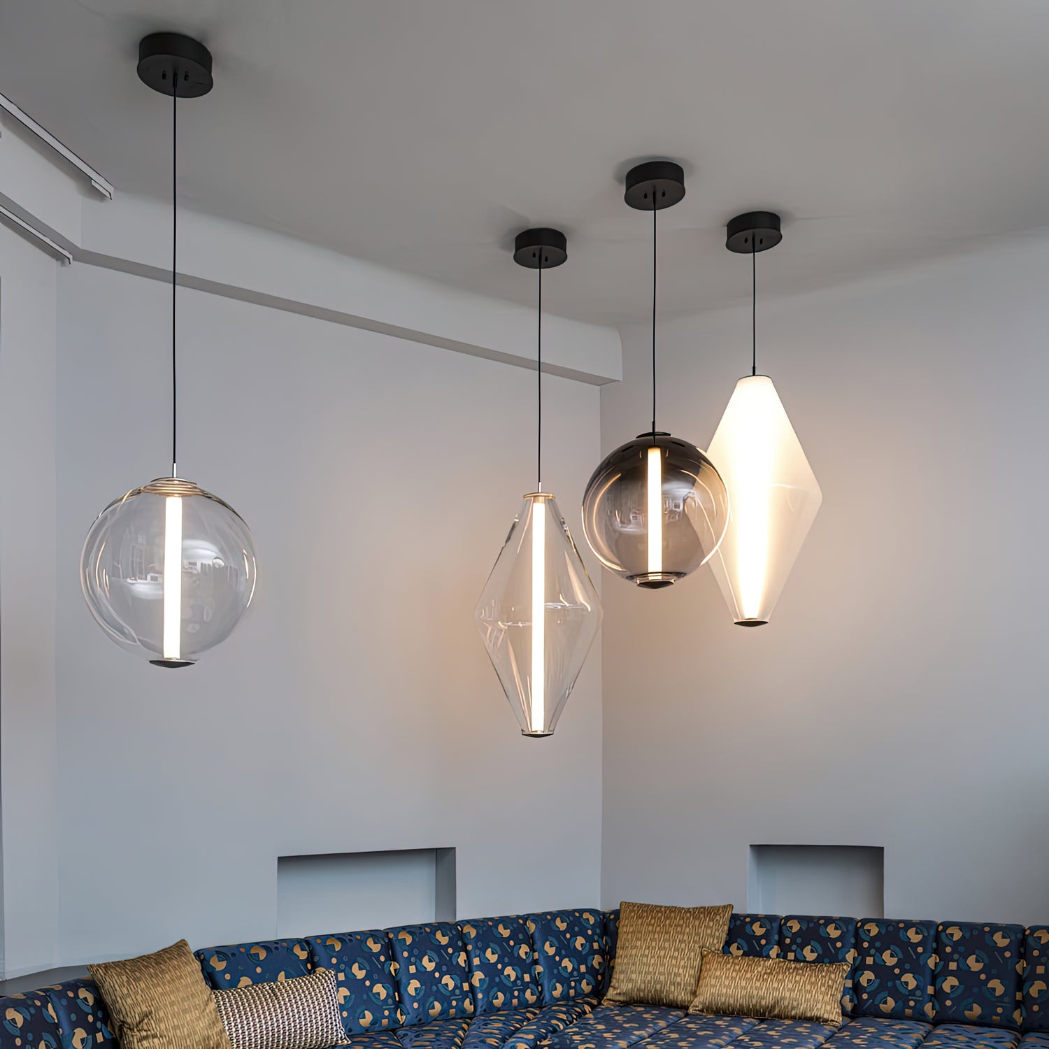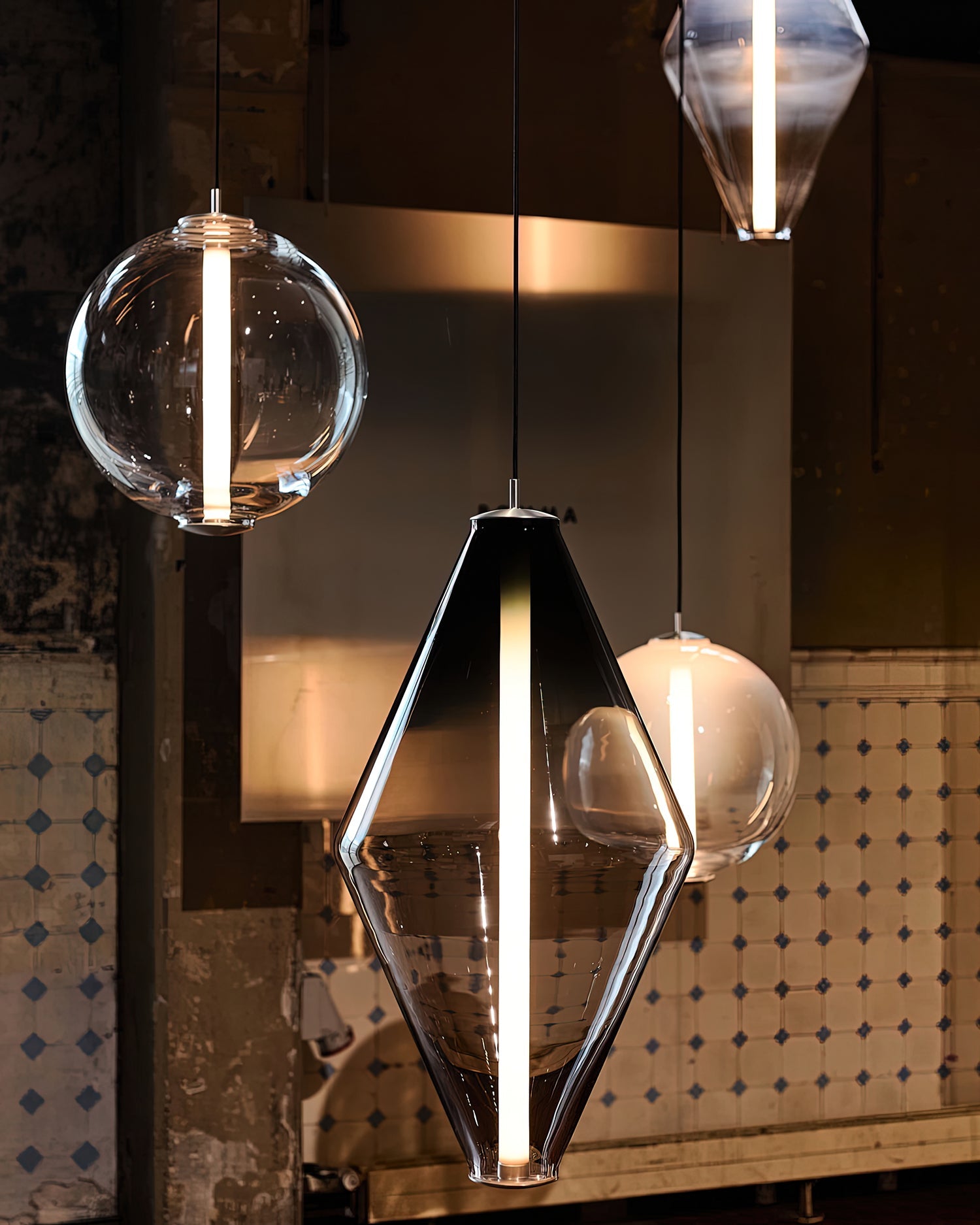 The Kandinsky Pendant Light blends artistic design with practical lighting, inspired by the protective shape of nautical buoys. Crafted from hand-blown glass, it radiates a serene, warm glow, transforming any room into a tranquil retreat. Combining sculptural beauty with practical illumination, this chandelier offers a modern interpretation of a nautical theme, creating a warm and inviting atmosphere. Ideal for those seeking a stylish and tranquil ambiance, it's a striking decorative piece that gently enhances any interior.