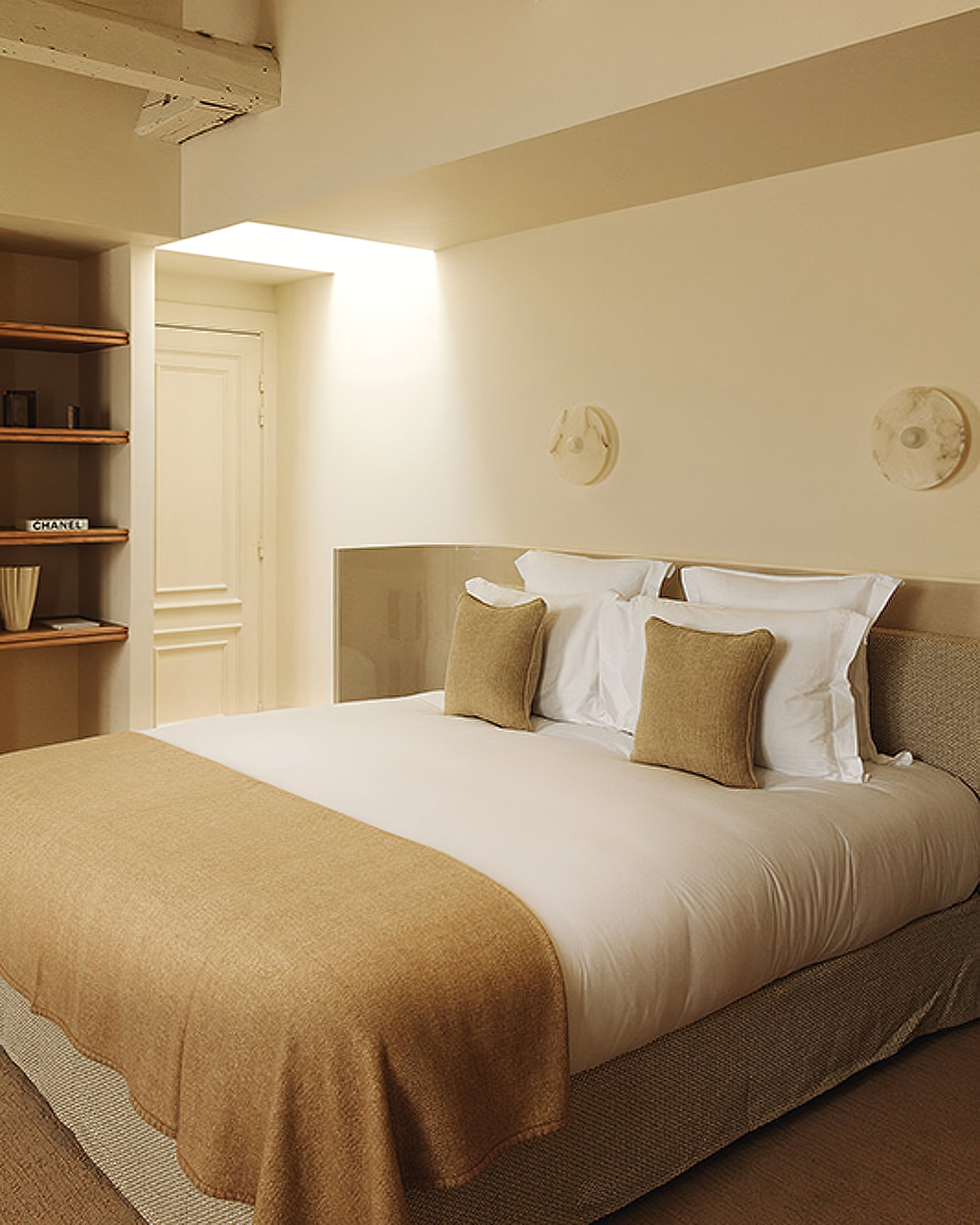 The Kelly Wall Lamp features a refined alabaster construction paired with a custom opaque optical lens that softly diffuses light. This design ensures an even glow with a subtle halo effect, delivering balanced illumination and a visually cohesive ambiance to any architectural space. Ideal for those seeking sophisticated and expert lighting solutions.