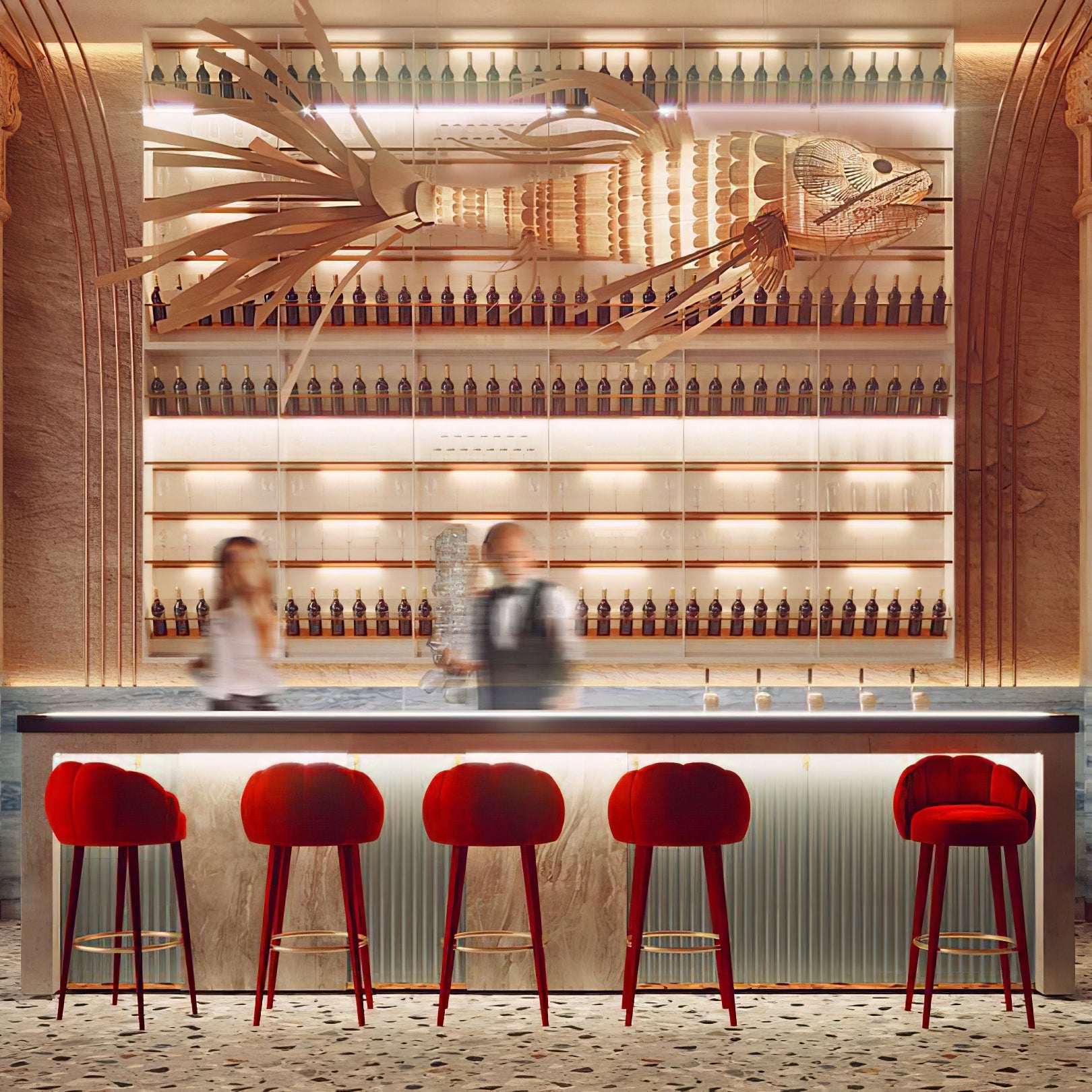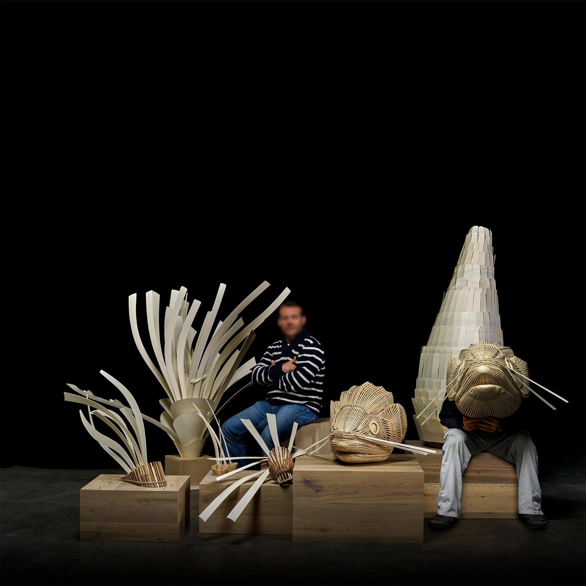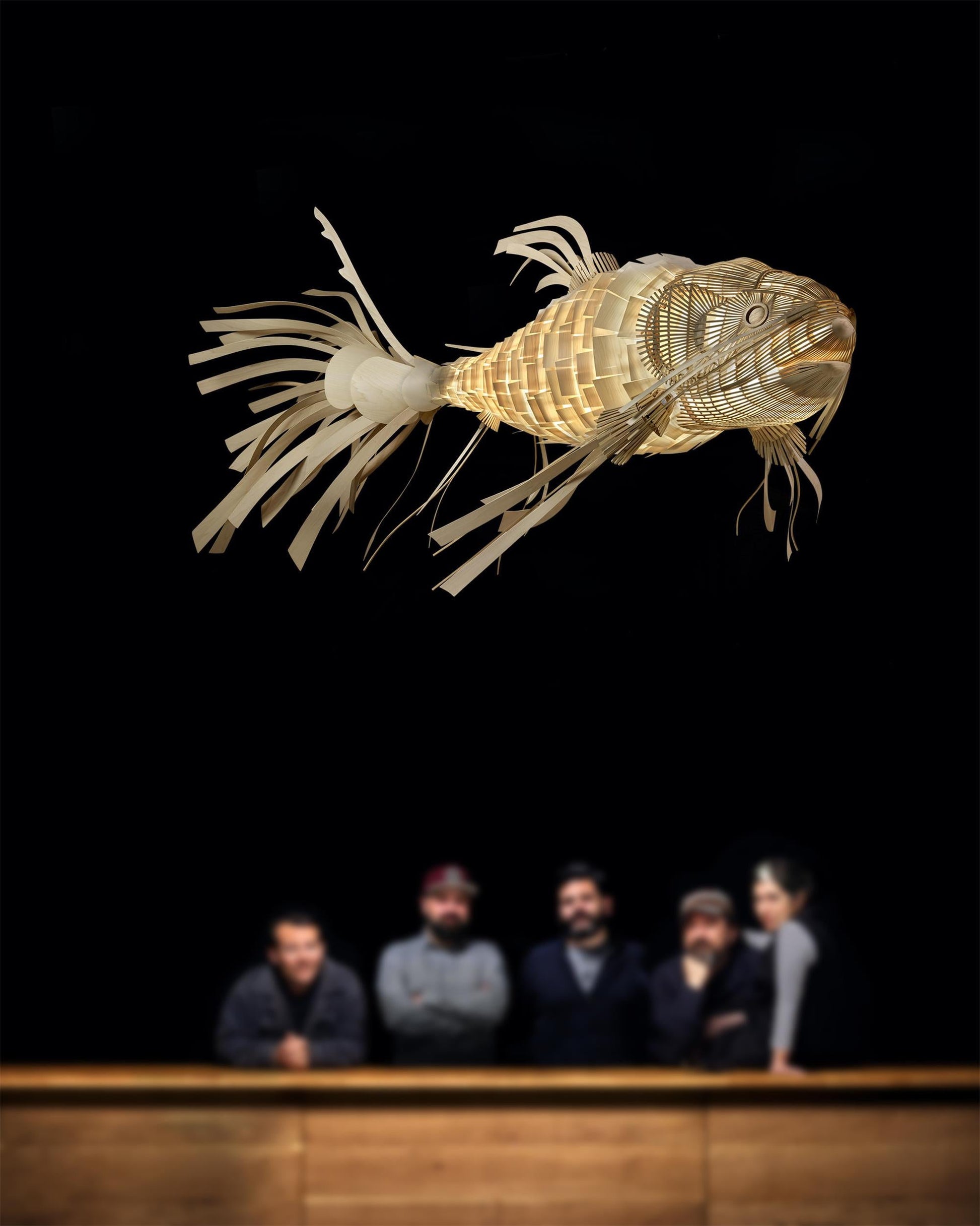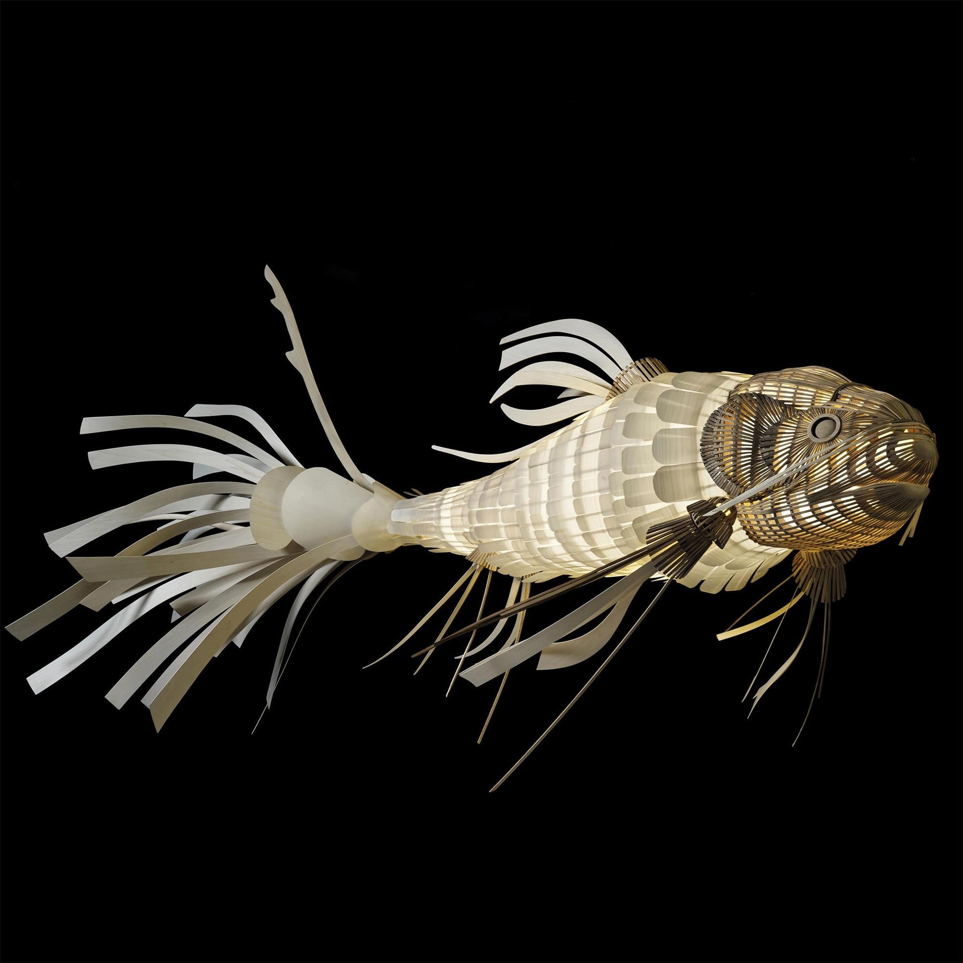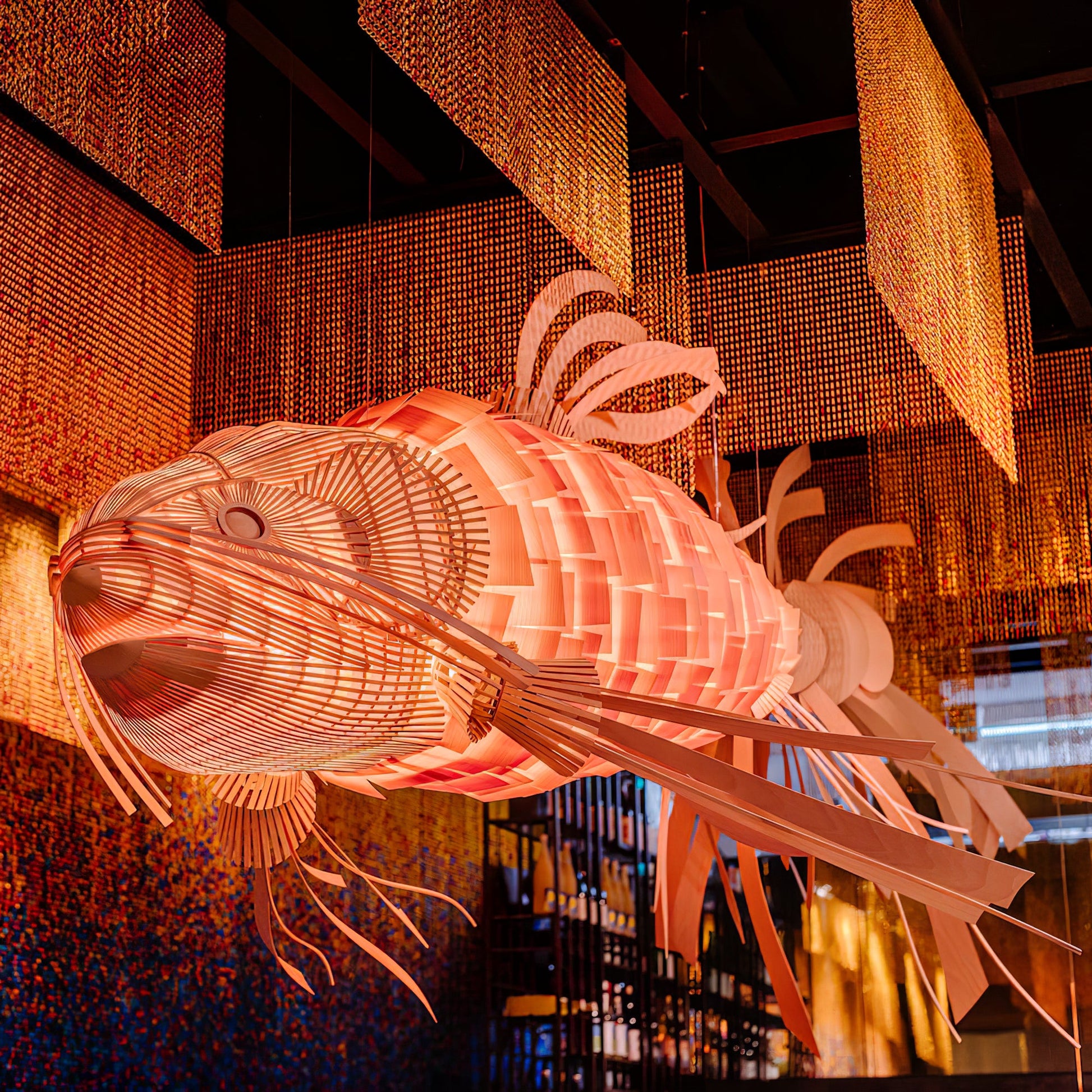The koi is a much respected and symbolic fish in China. Symbolizing strength, this ornamental carp is thought to represent luck and prosperity. The overlaying of wooden slats—with a similar character to fish scales—is referred to as the ‘Koi Fabric’.