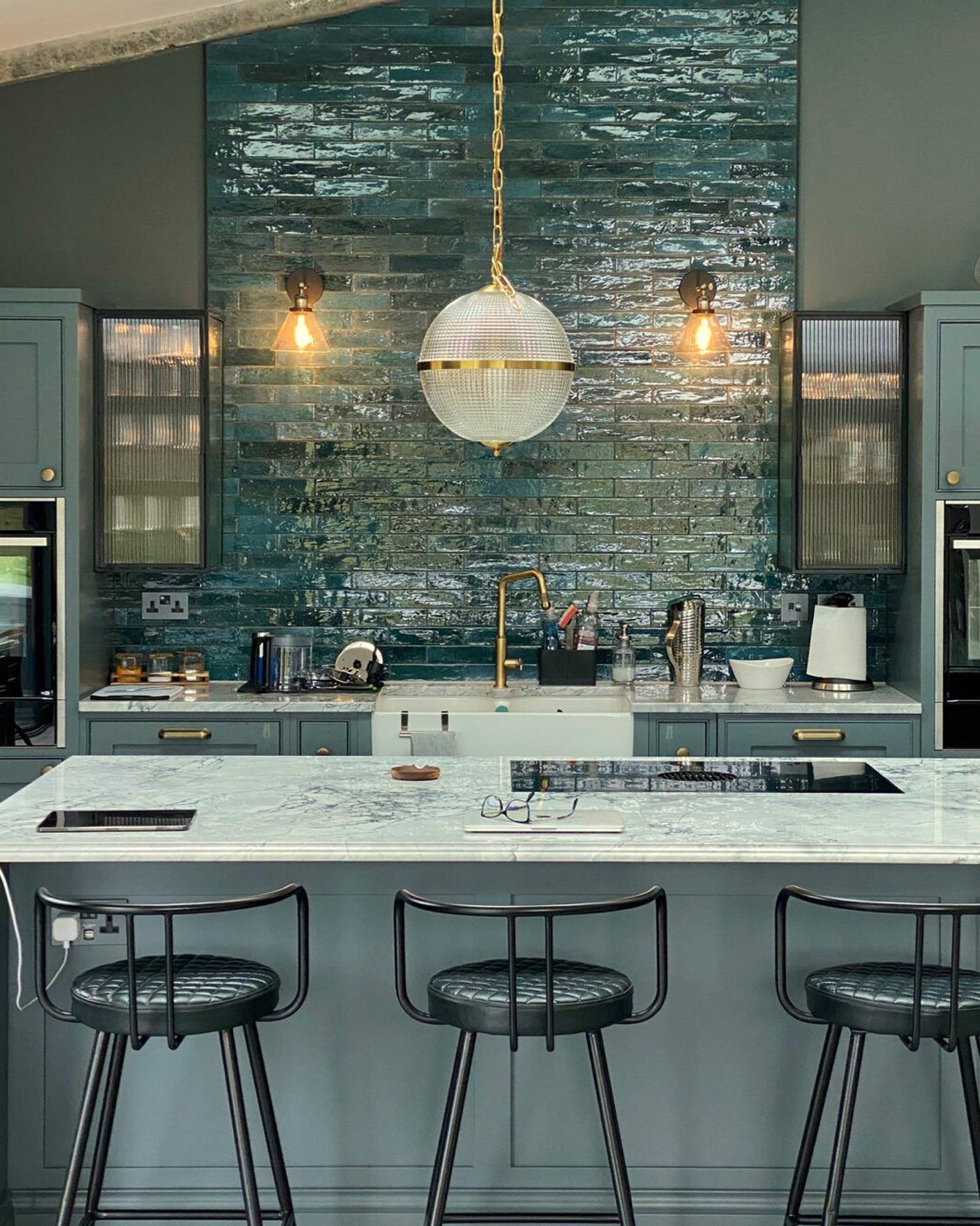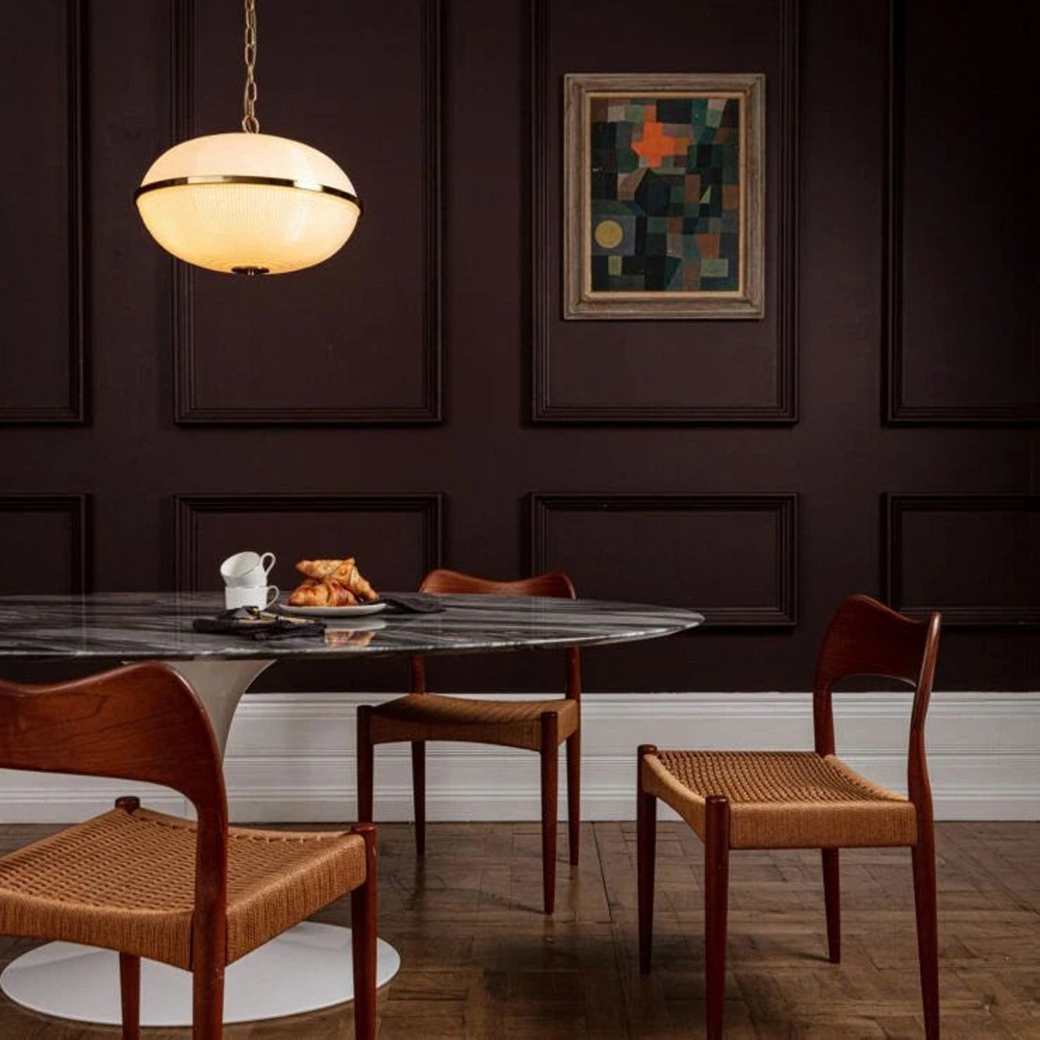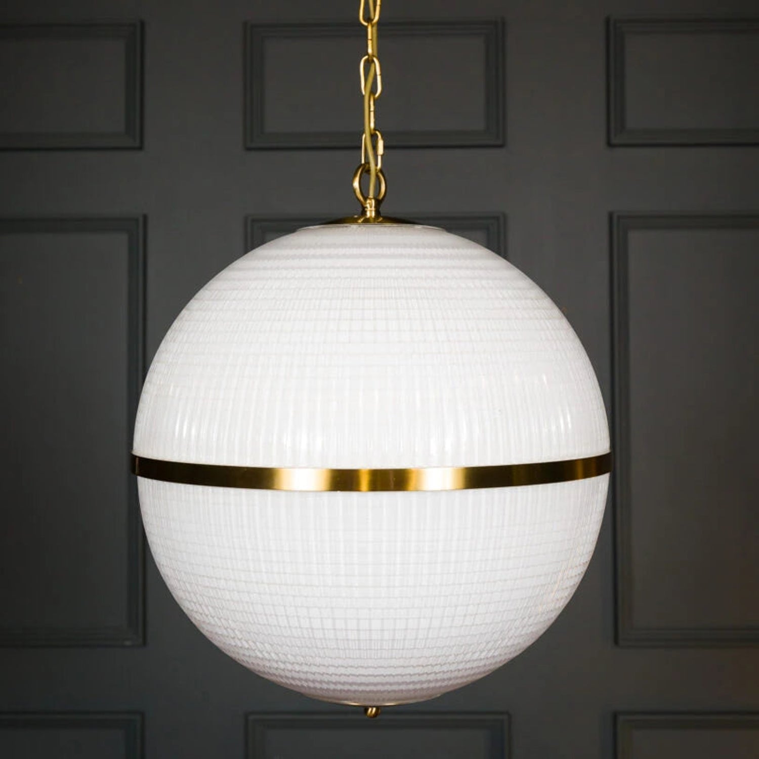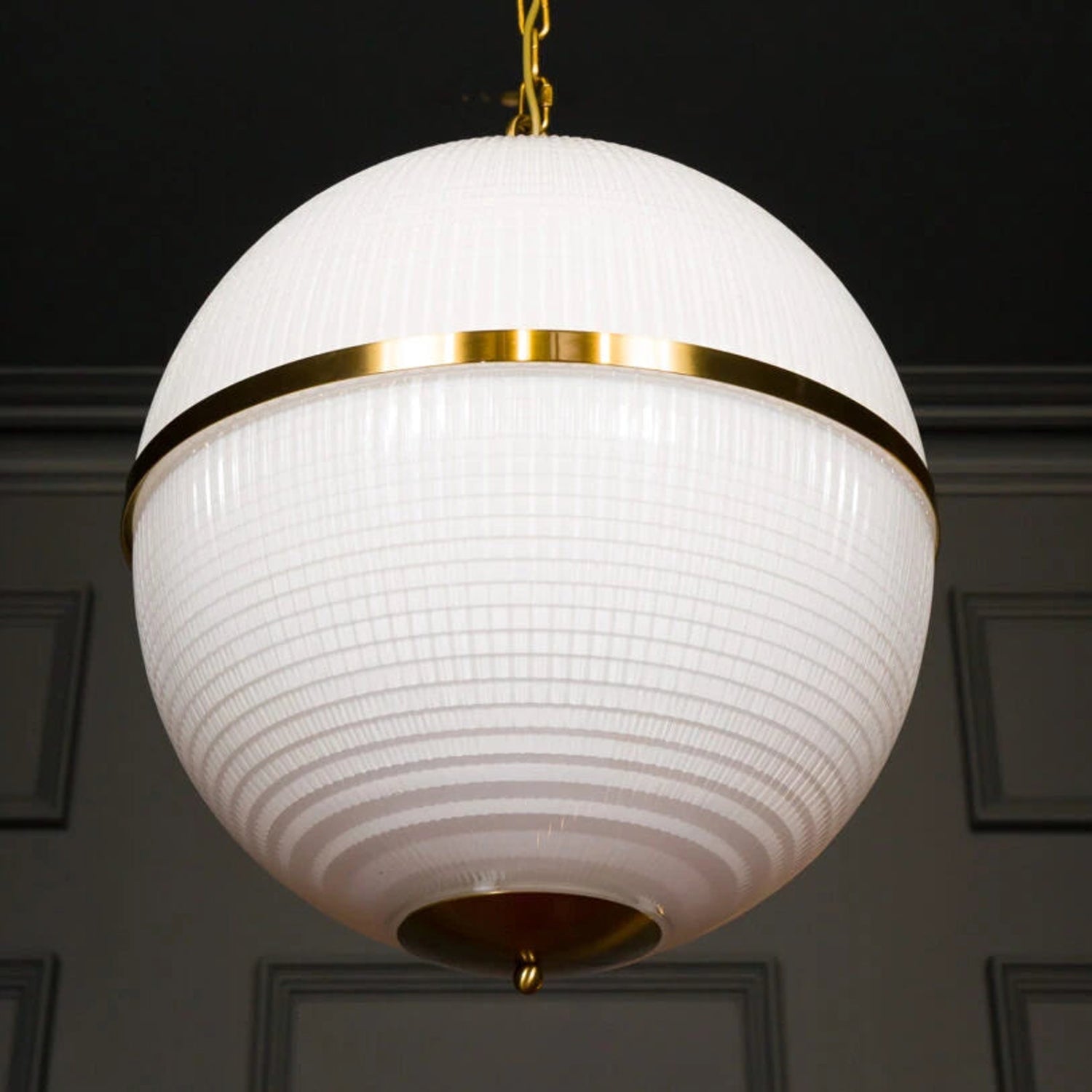 The Layla Pendant Light combines prismatic molded glass with brass hardware for an authentic vintage aesthetic. Its milky white globe emits a soft, ambient glow, making it ideal for residential and commercial interiors. Available in two sizes, Layla pendant lamps can be arranged in rows or clusters to enhance dining areas, bar counters, or kitchen islands, delivering both style and functionality.