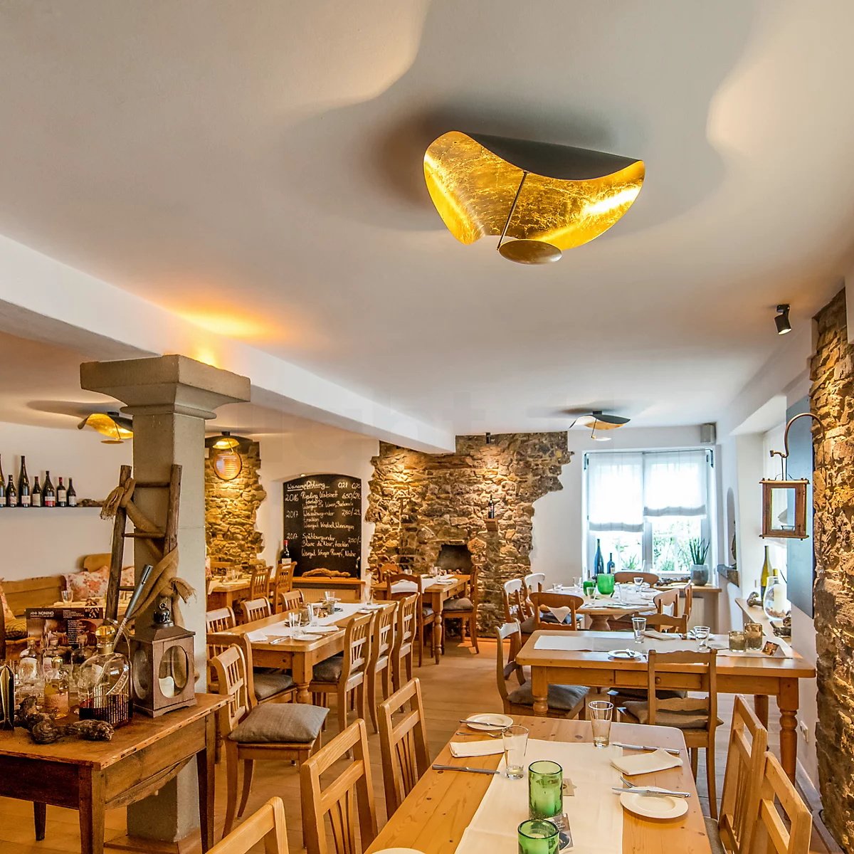 The Lederam Manta Wall / Ceiling features a gracefully curving shade that embodies fluidity and the accuracy of the motion required to draw a line, with a disc shade extending out with a metal rod. Finished in White with the option of a White or Gold rod. May be ceiling or wall mounted.