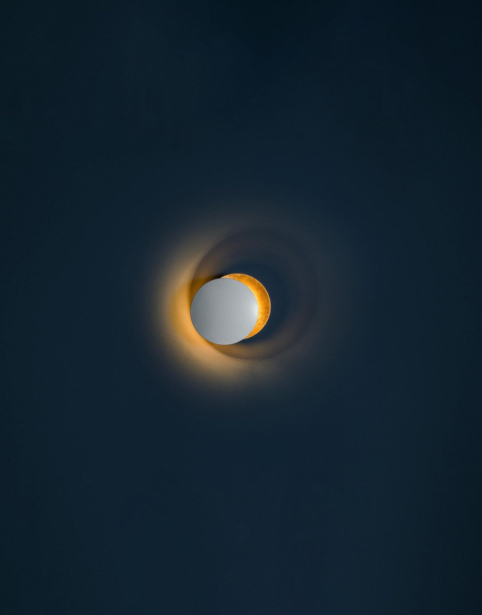 The beautiful wall lamp Lederam wall lamps characterized by an adjustable disc in the front. This design is both refined and impressive and enables to vary the lighting effects. Like the Earth, the sun, and the moon that can move to each other, it is possible to adjust the frontal disc with a nickel-plated flexible joint before the metallic disc in the back. This front disc can be moved to the front and around to create the wished lighting atmosphere. This emotional design is associated with the most modern LED technology.