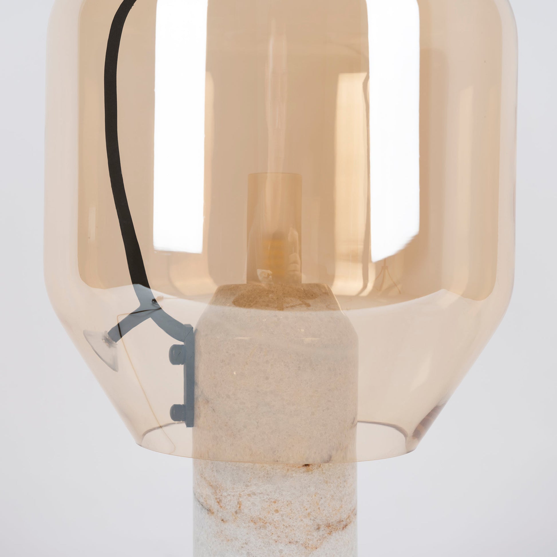 An elegant, modern, and traditional piece of craftsmanship. The shade is made in mouth-blown glass shade in the very best quality. The combination of glass and marble, which is one of the biggest trends at the moment, makes the lamp something extraordinary for your home ,Created a robust lamp that looks like a piece of art in itself. The lamp is made in two colours, so you have the opportunity to choose between an eye-catching colour and a more neutral one.