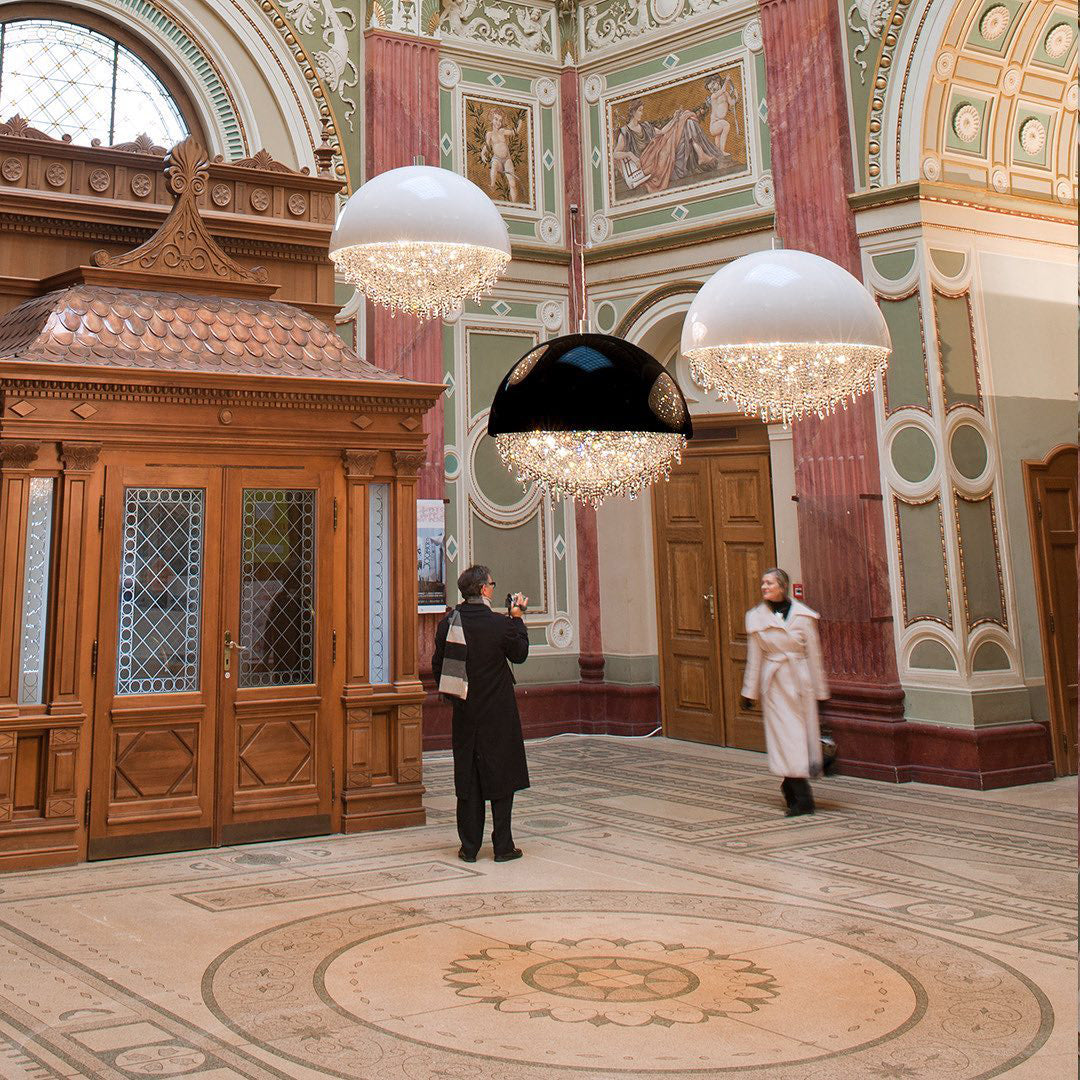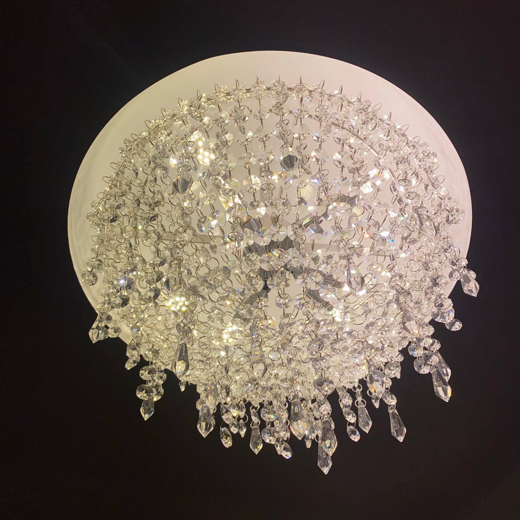 Grace and elegance defines this contemporary pendant light with an appealing feature. Our Combining the famous Iceberg shape with the upper hemisphere, symbol of luxurious design and outstanding craftsmanship. Sparkling clear hand-cut crystals are paired with a lampshade Metal , giving this pendant light a sophisticated, contemporary feel.