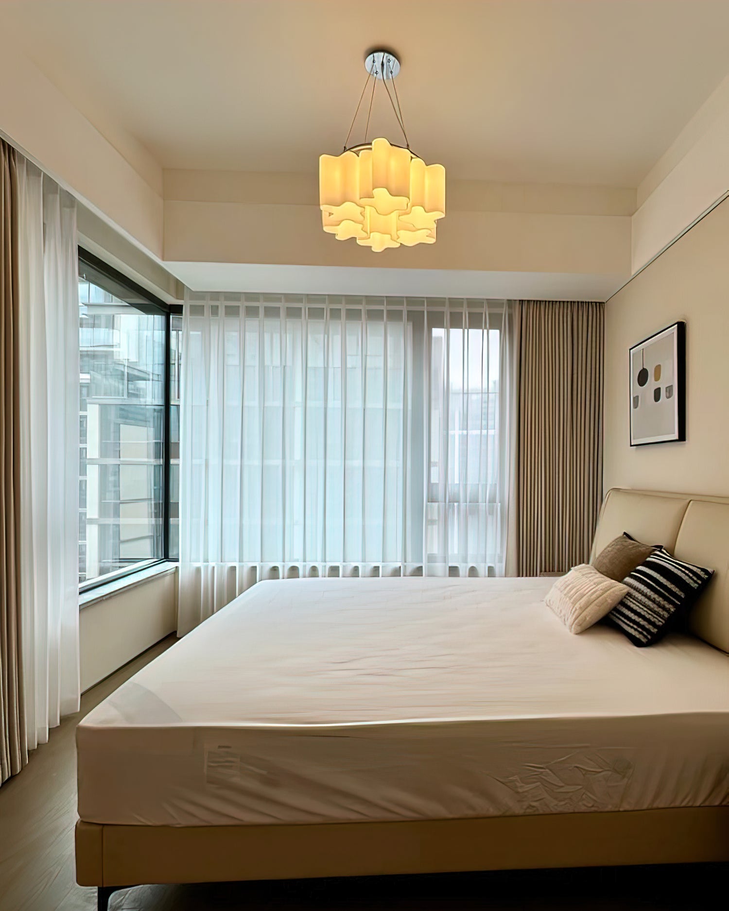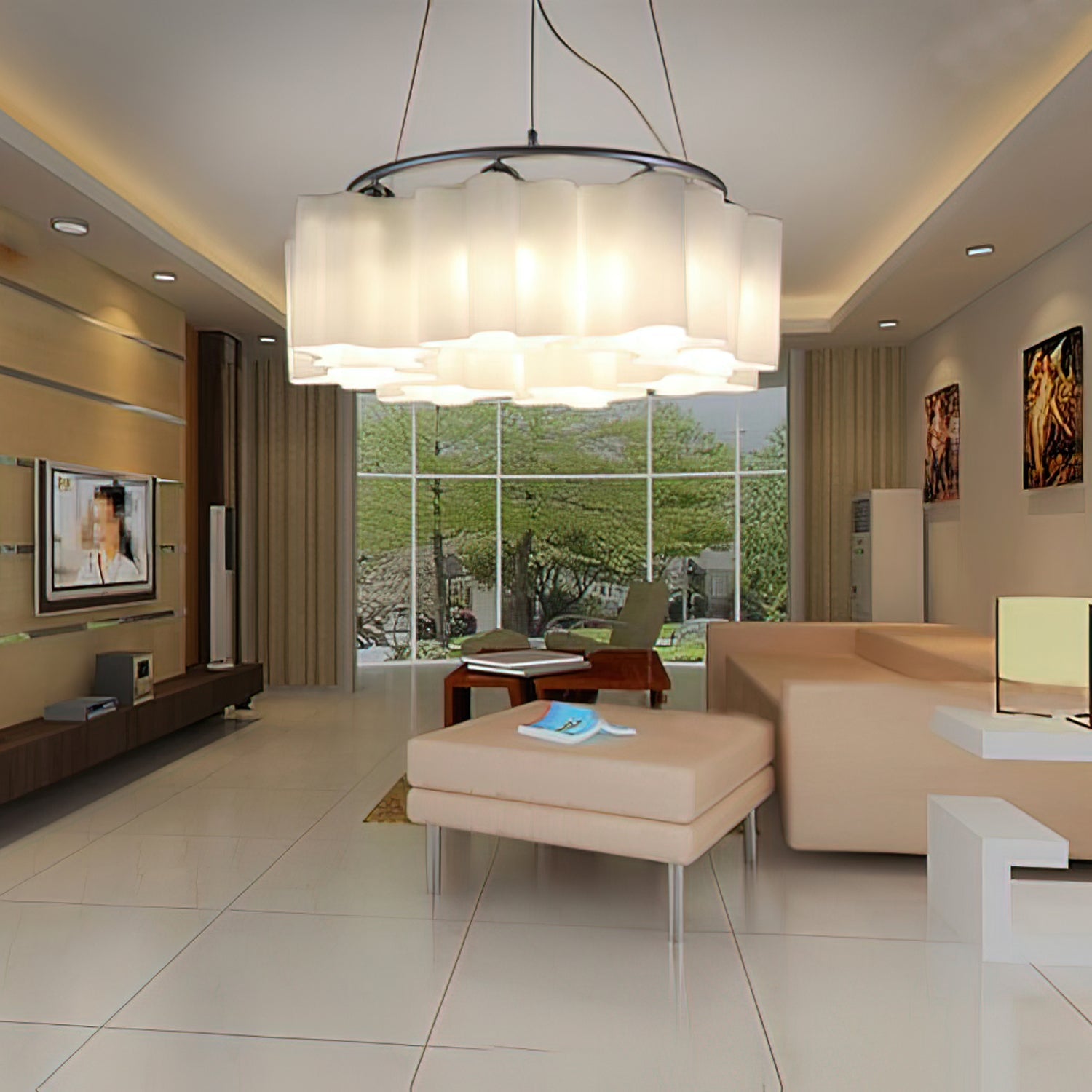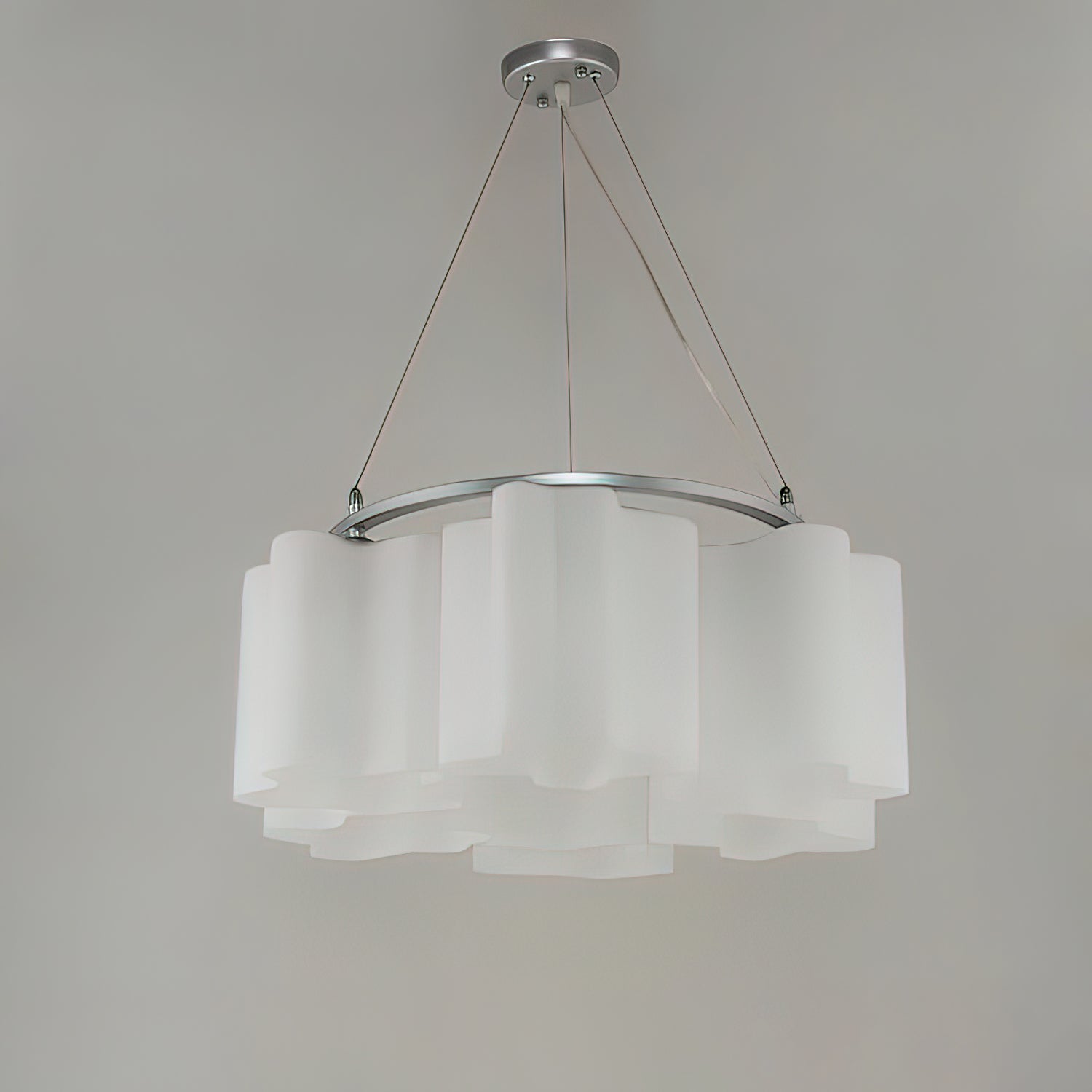 The Marjorie Chandelier combines a sleek chrome-plated metal frame with a frosted white glass shade, delivering both durability and refined style. Its distinctive design serves as a centerpiece, enhancing any room with a sophisticated, modern elegance while providing soft, ambient lighting that elevates the overall atmosphere.