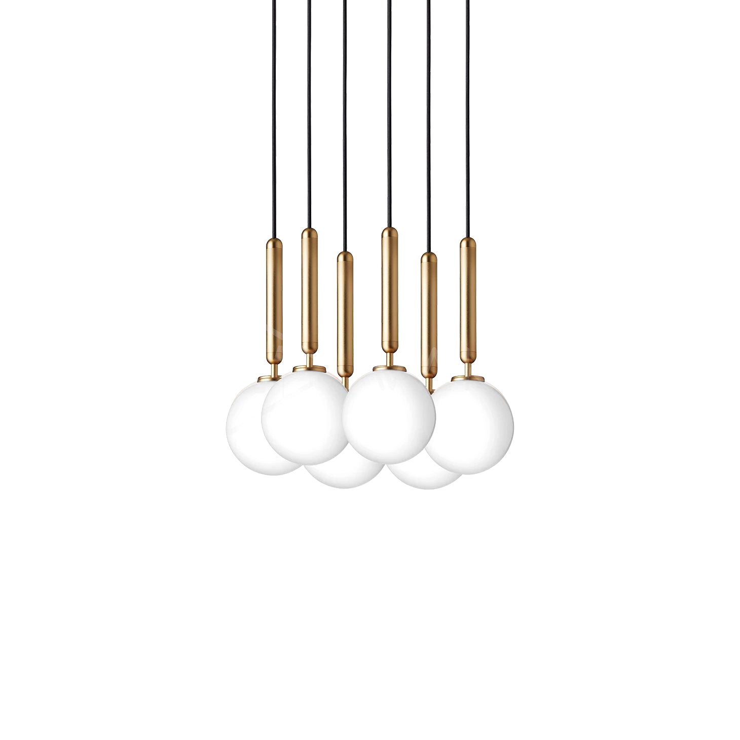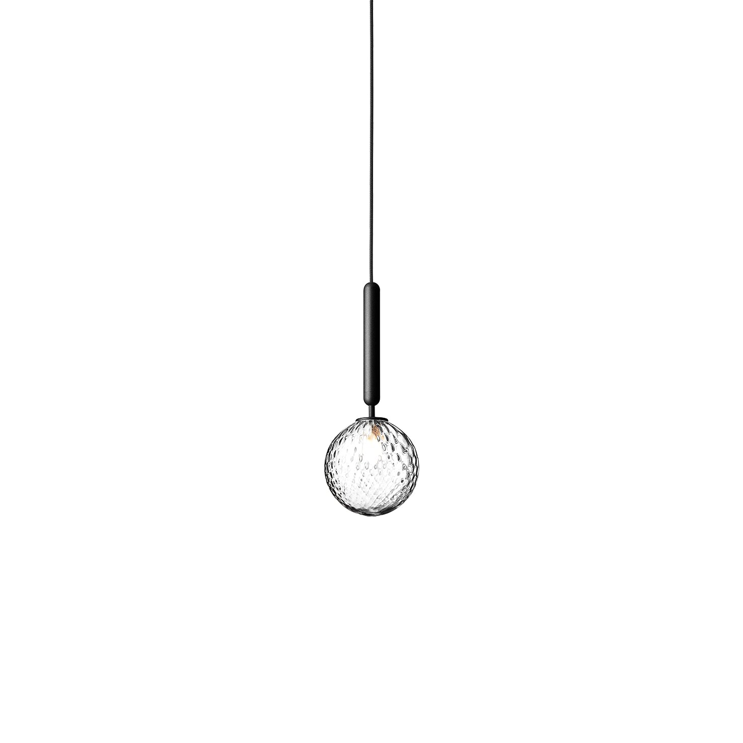 Comprising mouth-blown glass spheres and a stylish processed metal structure, the Miira Pendant Light design exudes balance and depth. The optic clear glass version, with its unique embossed pattern, brings a playful light and atmosphere to the room, while the opal glass version has an inherent sense of warmth.