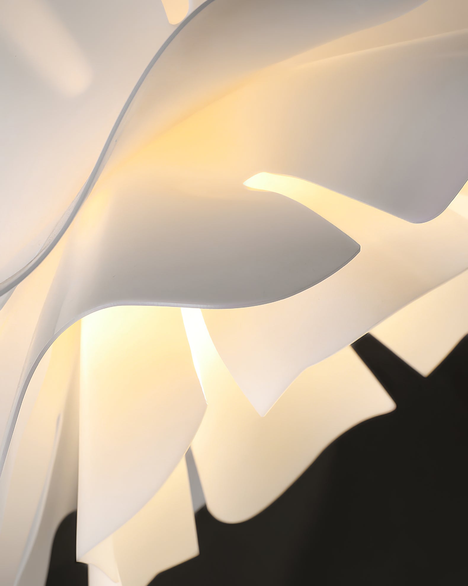 The Pendant Light has a shape like a lotus, which is charming and will catch your attention at once. The white finish makes people feel comfortable since it looks like a cloud floating in the air.
