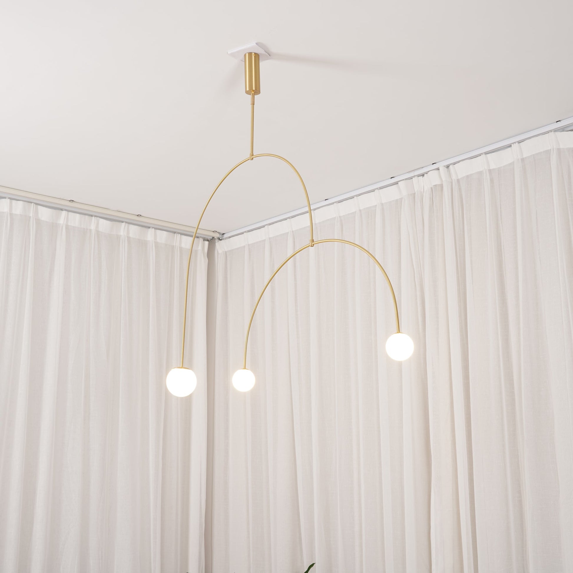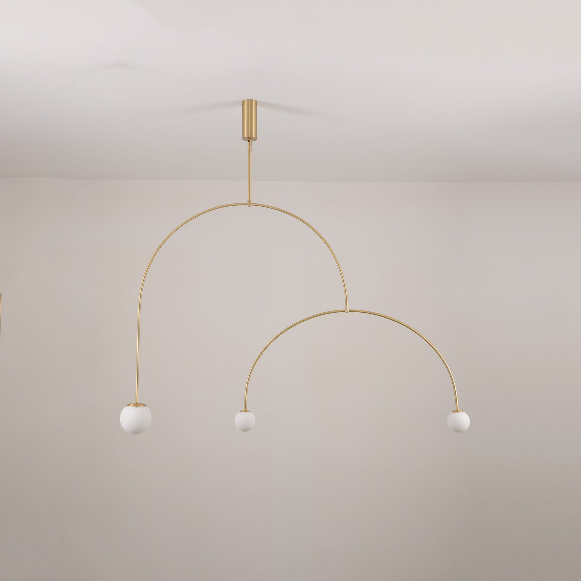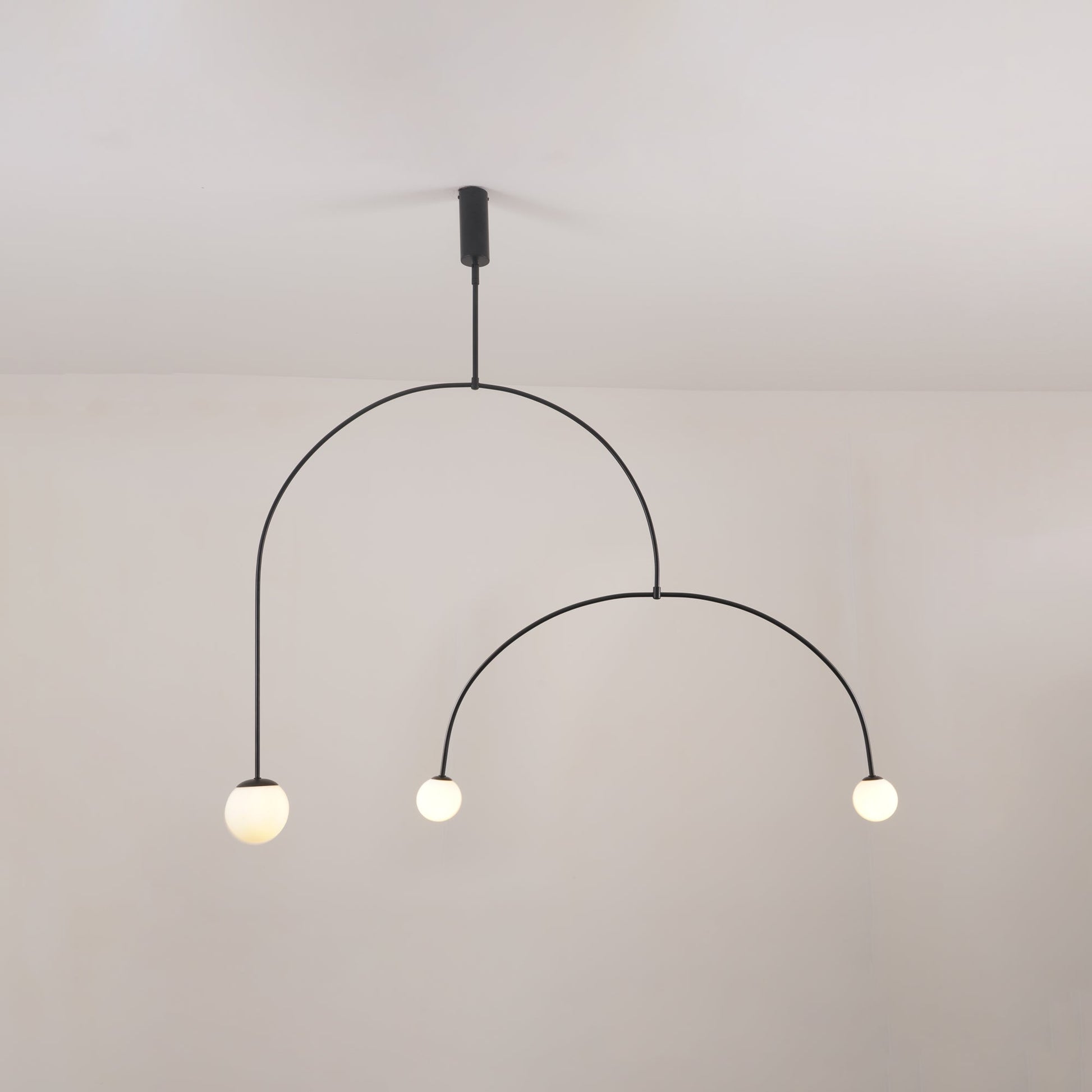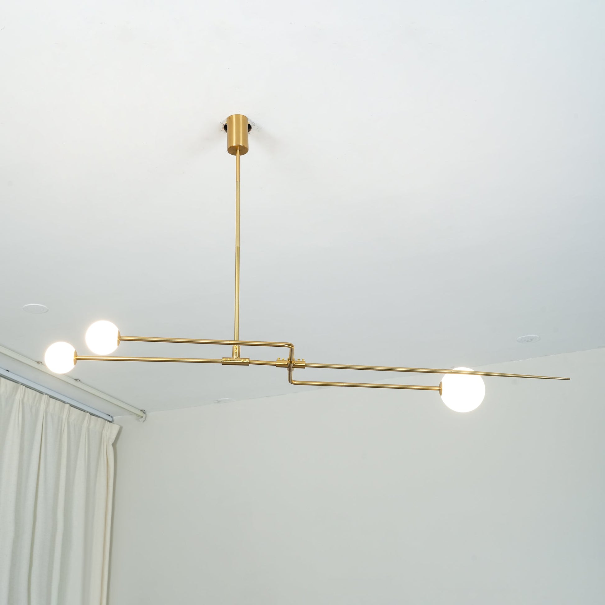 Mobile Chandelier is a minimalist design created by London-based designer Michael Anastassiades. This lighting reveals a minimalist design with very graphic and uncluttered forms. These lines in the air have several sources of warm light, with diffusers in opaline blown glass.