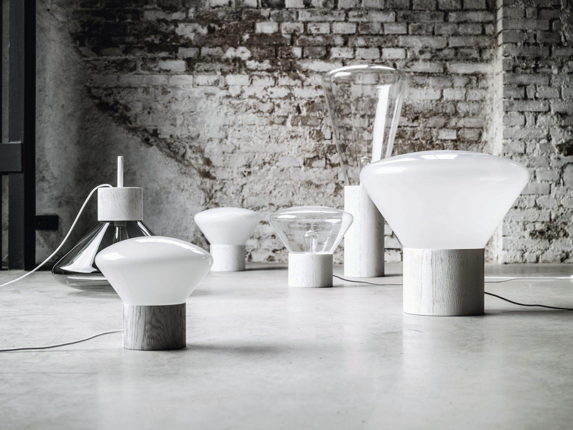 The lights, featuring a billowing glass shade set in a handcrafted wood base together with a naked filament bulb, breathe new life into any space and elicit a festive ambiance. The collection offers multiple shape and size variants as well as a broad palette of glass colors and woods.