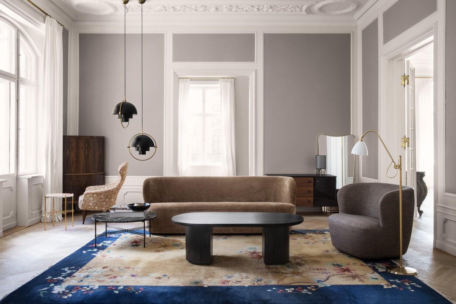 The design is characterized by the exceptional and playful lampshade that reflects Weisdorf’s passion for versatility: The base of the lamp consists of three basic shapes - two immovable cylinders and a hemisphere - framed by a thin ring. What makes it special? The hemisphere is divided into two parts so that the two halves are mobile and invite you to play with shapes and light.
