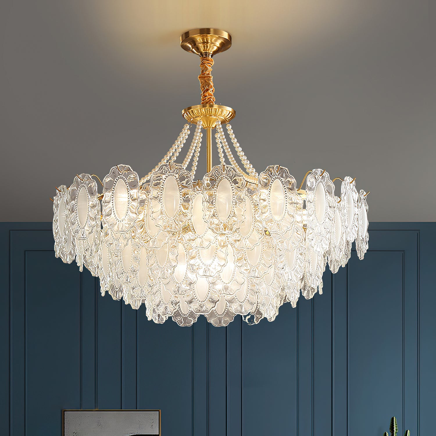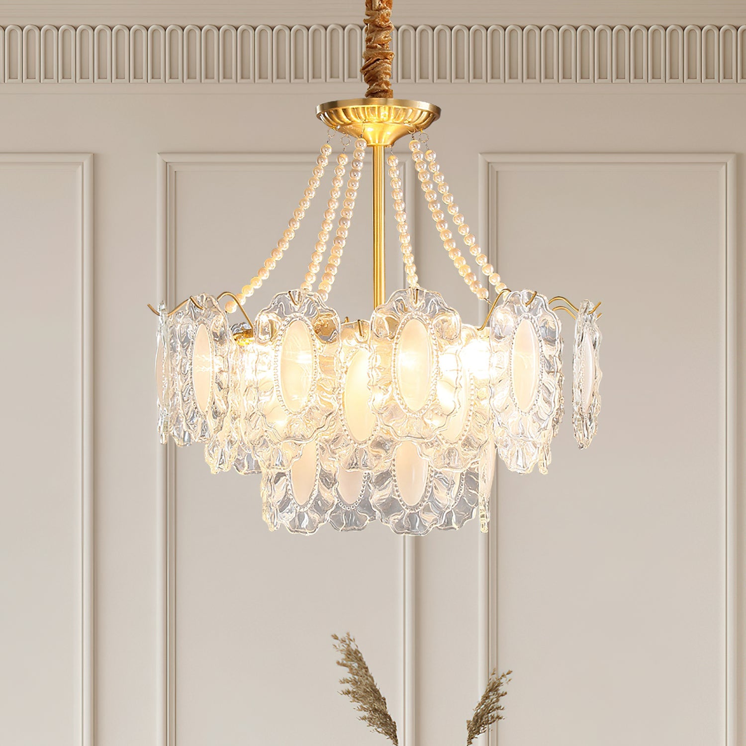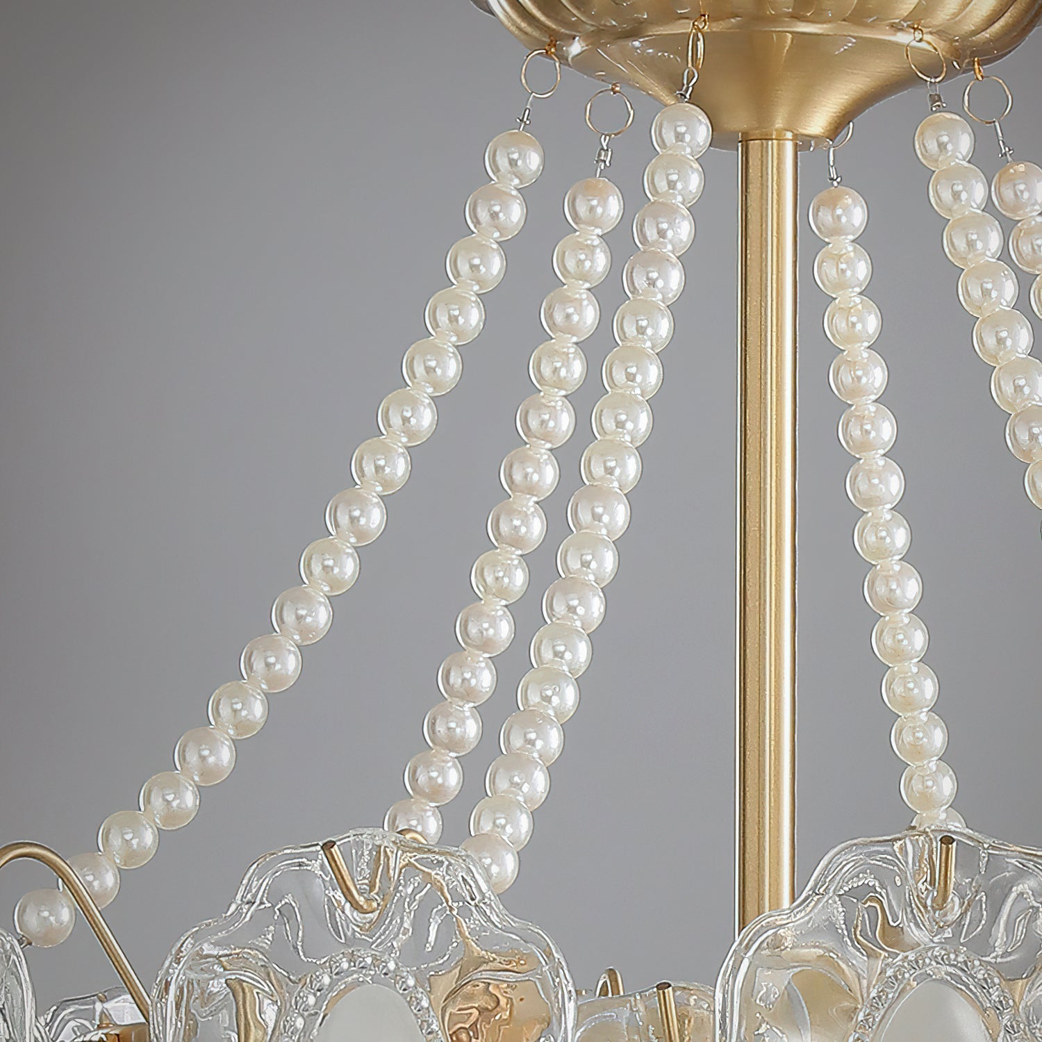 The Nason Pearl Glass Chandelier combines sleek brass and glass for a modern and elegant look. Designed to create a vibrant ambiance, this unique fixture adds a bold, elegant touch to any space. Its unique combination of materials elevates your interiors with a modern and sophisticated touch.