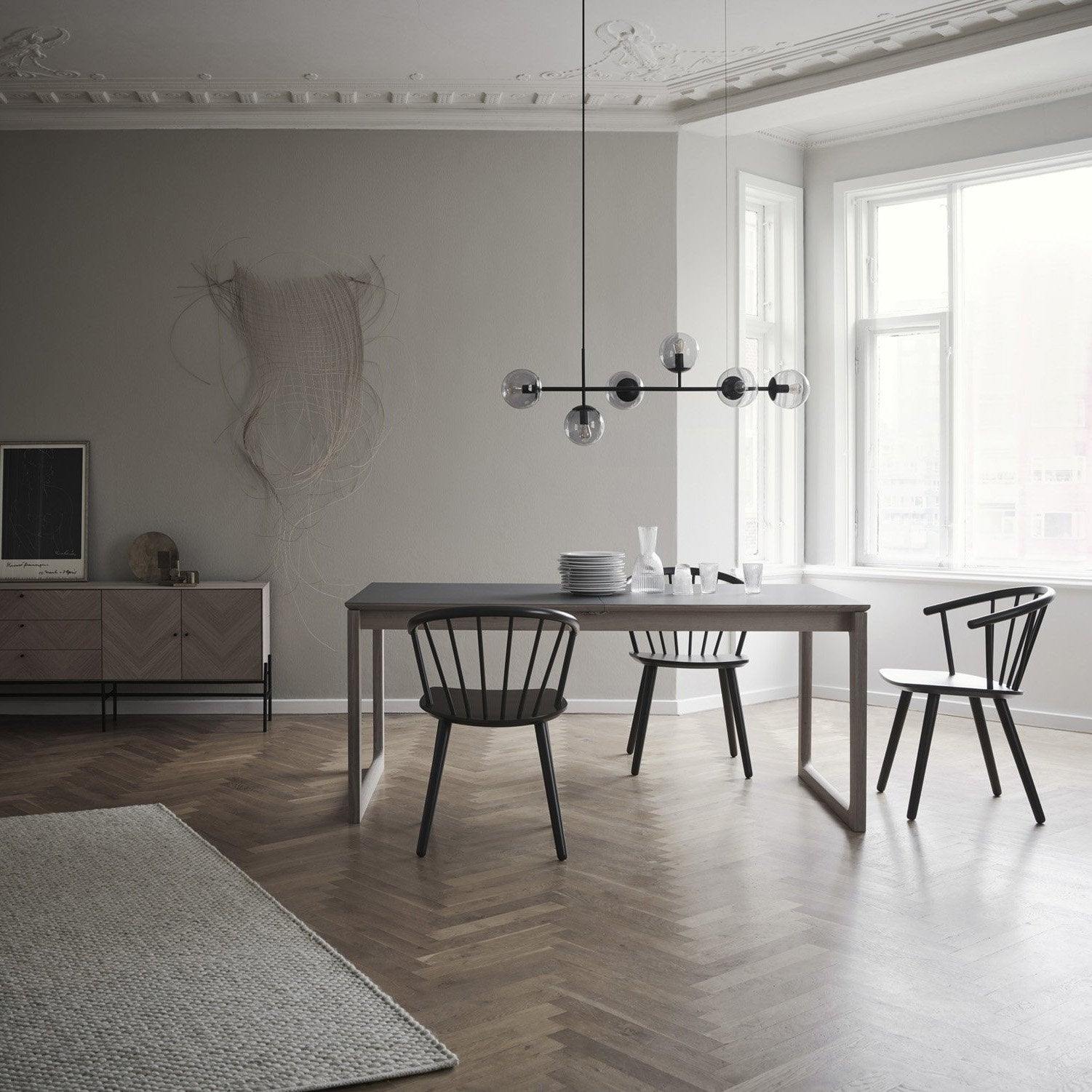 Like beads on a cord. Perfect, round glass beads that spread a reflective, shiny light into the room. The light from the Orb hanging lamp creates an exclusive atmosphere that looks stringent, but also liberating nonchalantly. The combination of brass and glass gives your interior an industrial touch.