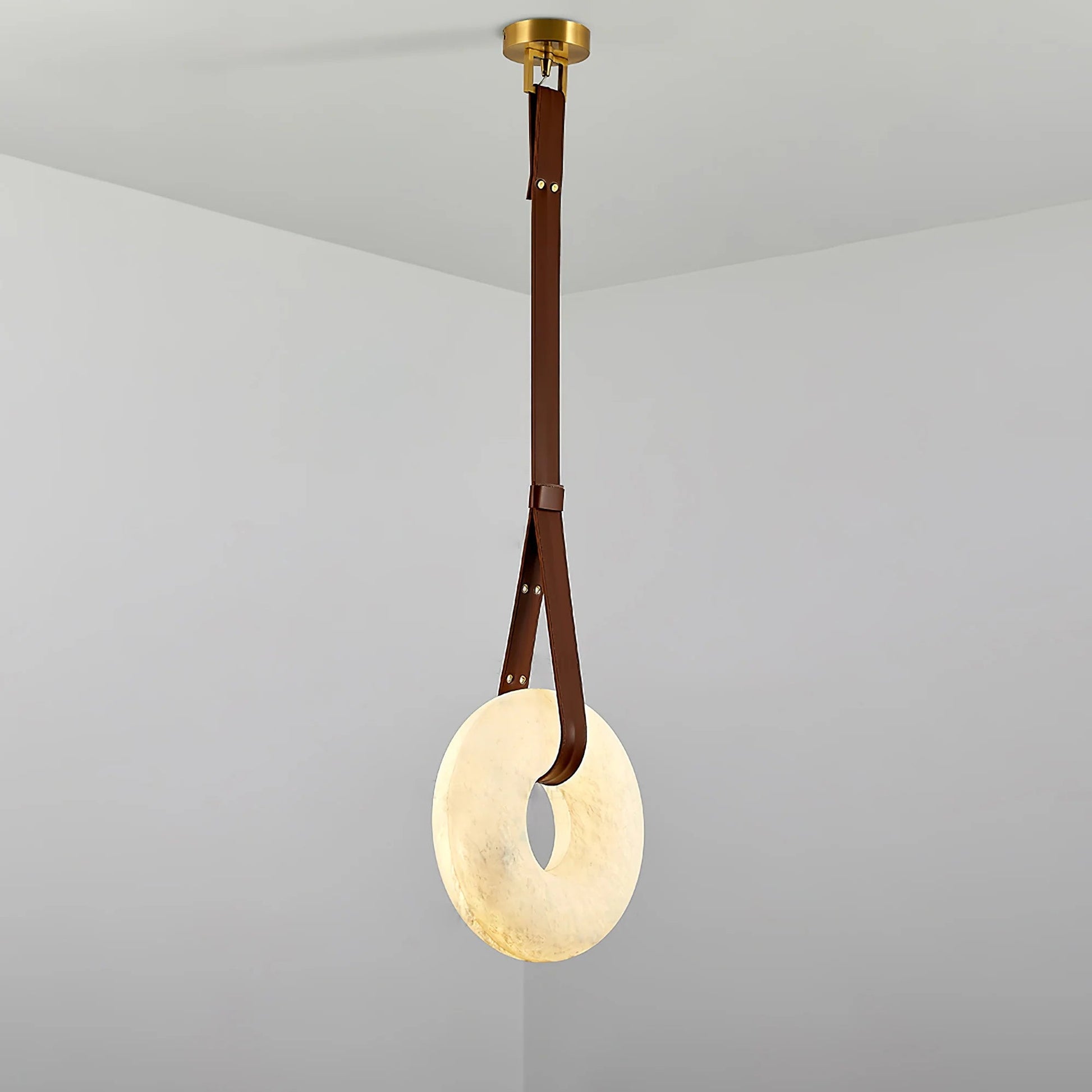 Alone or in clusters, Oslo’s glowing rings shine in space. Its light weight is played up by soft leather fasteners.
