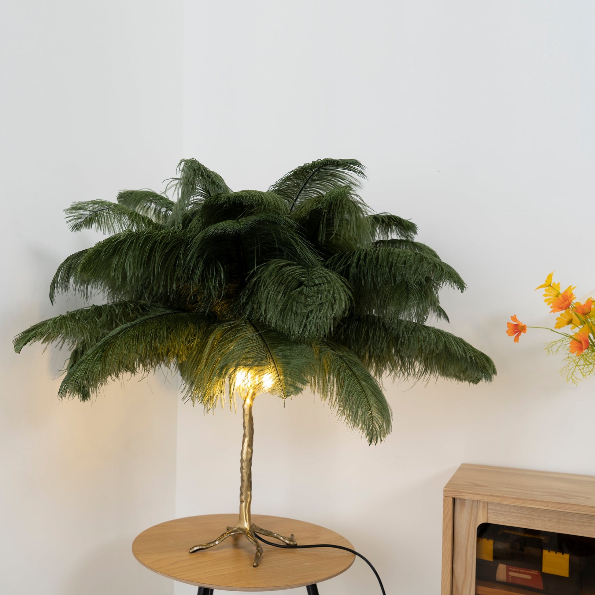 As part of our exclusive feather lamp series, our feather table lamps are finished with ostrich feathers and brass metal base.
