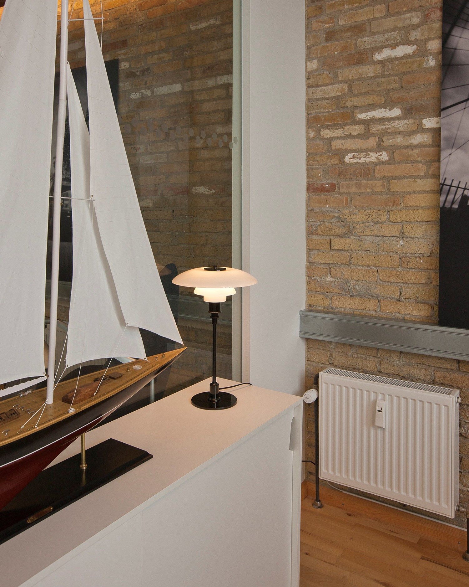 The Poul Reflector Table Lamp features a sophisticated design with stacked concentric lampshades that effectively diffuse light, reducing glare and creating a soft, even illumination. Originally crafted from metal or glass, these shades conceal the light source, enhancing visual comfort while maintaining an elegant aesthetic. This lamp combines historical lighting principles with modern technology to provide a refined lighting experience that balances functionality and style. Ideal for spaces requiring both ambient and task lighting, it offers a subtle yet impactful enhancement to any interior.