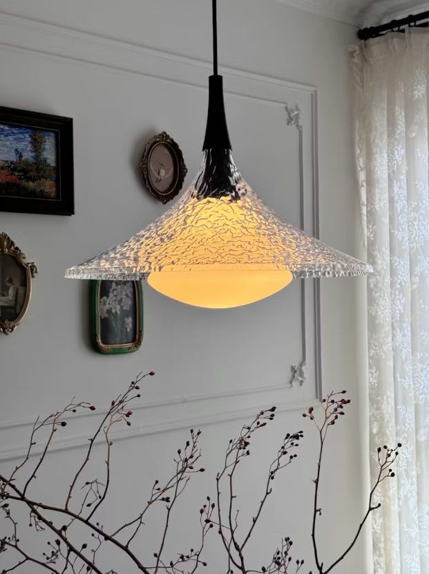 Material: Iron+Aluminum+Handmade Tanslucent Glass Shade+Transparent Acrylic Shade