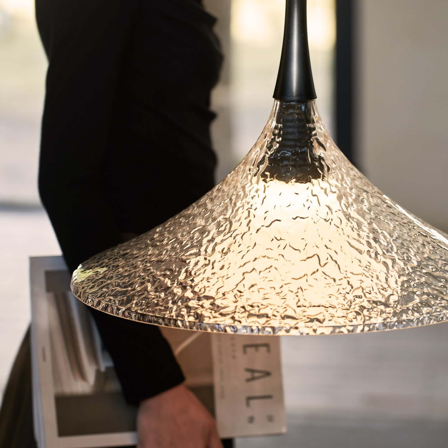 Featuring fluid lines and a harmonious combination of transparent acrylic shade paired with the translucent opal glass, the Ripple Suspension Pendant effortlessly complements any interior style. With its simple yet natural design, the Ripple can define a space with modern luxury while creating a cozy, inviting ambiance.
