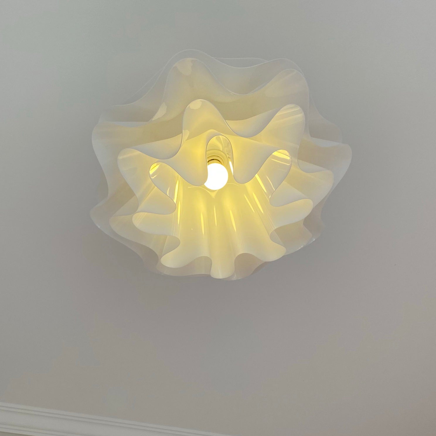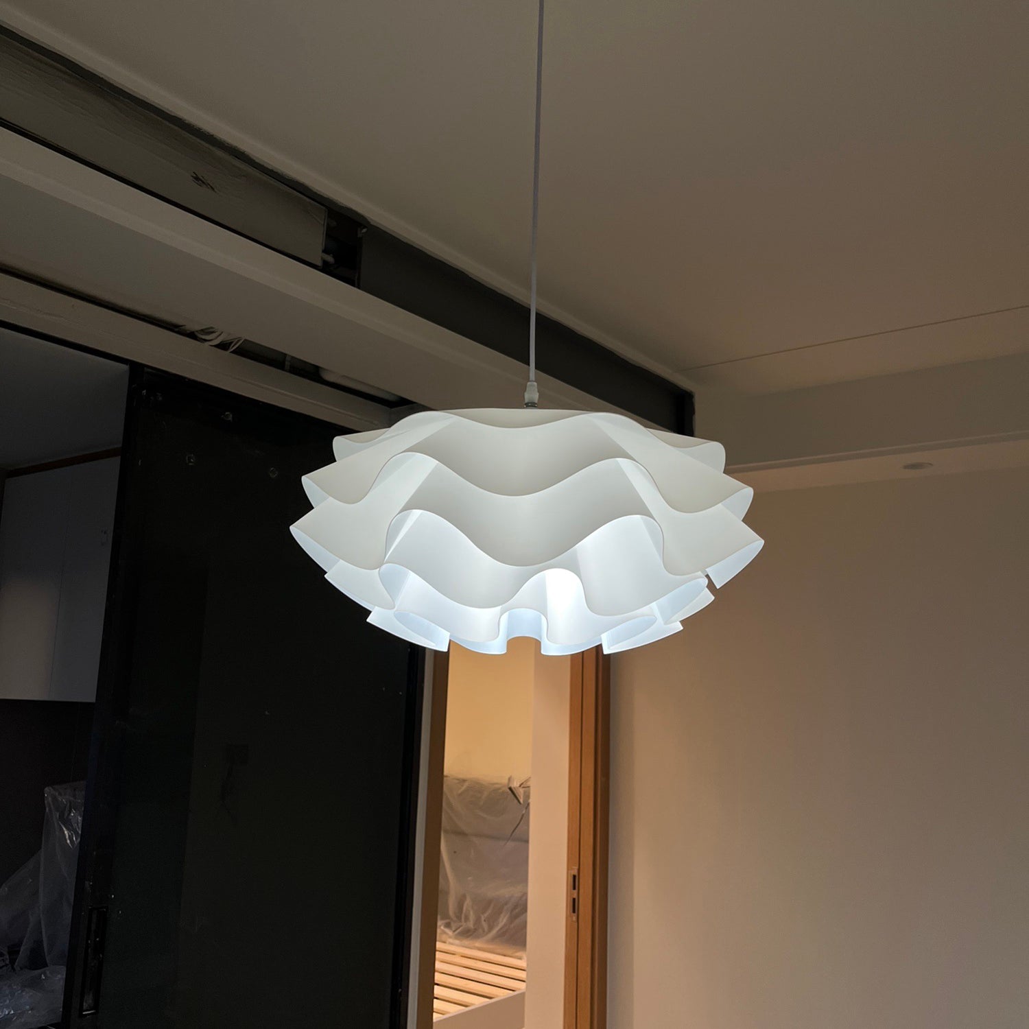 This charming white Skirt pendant light managed to combine practicality with elegance. And the design of this product is overall more modern. When lit, lighting diffuses from the acrylic shade to cast a romantic ambiance.