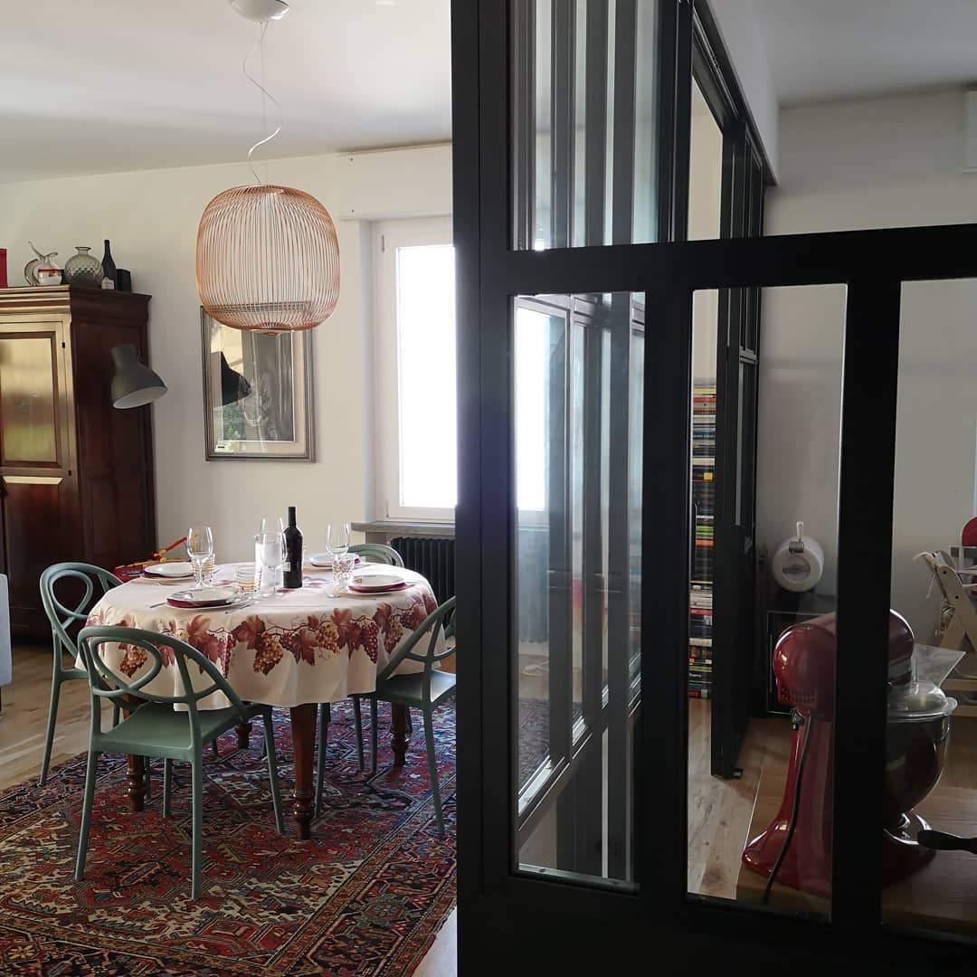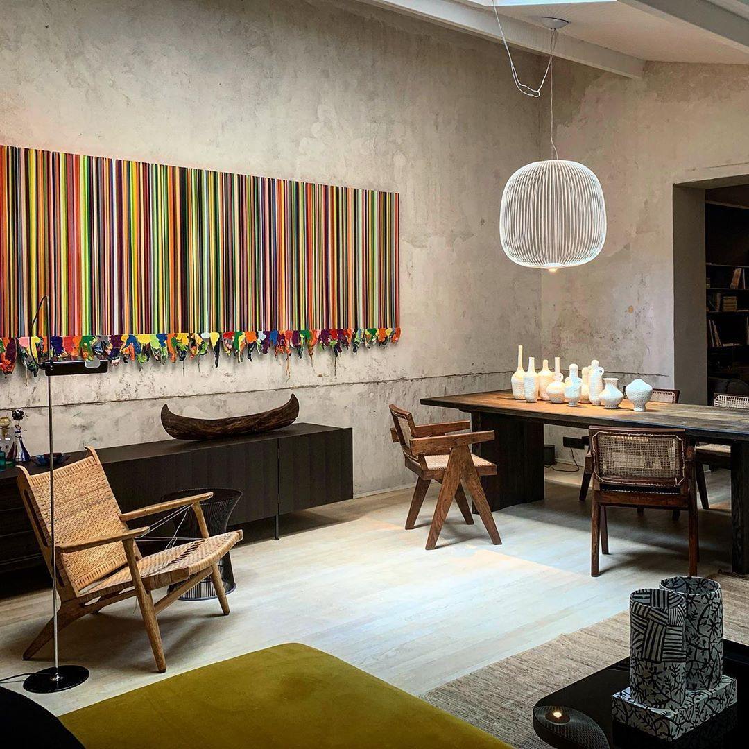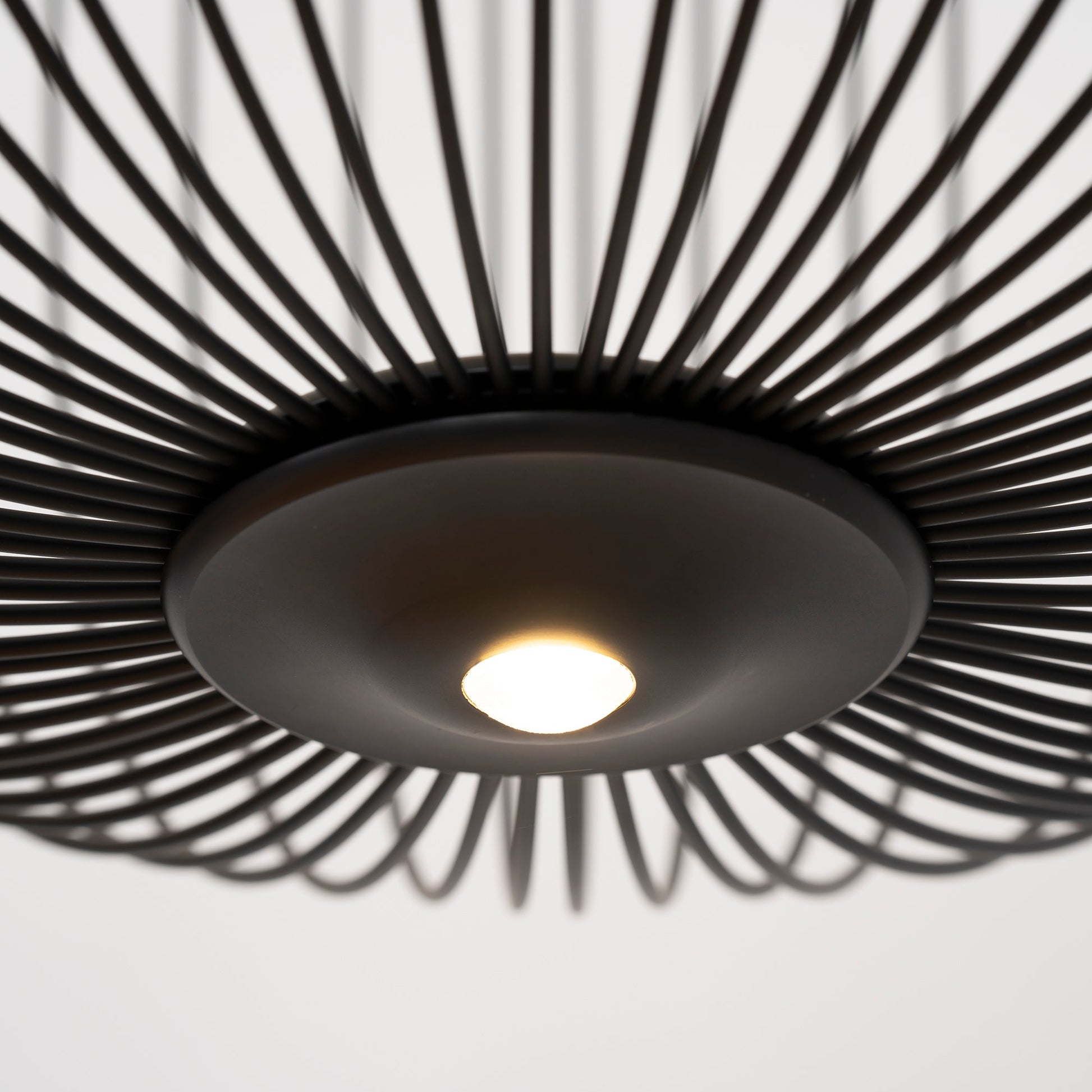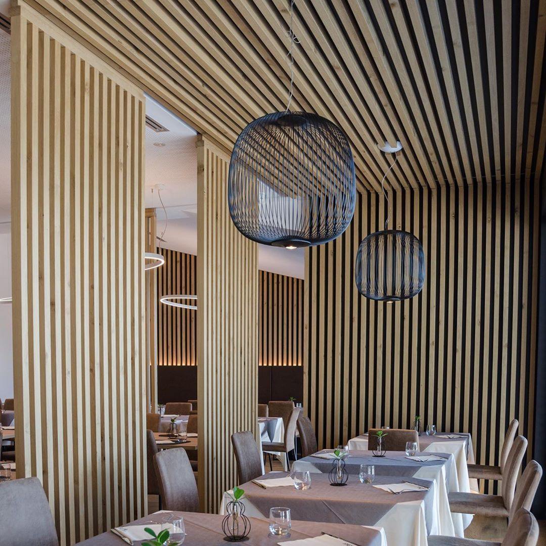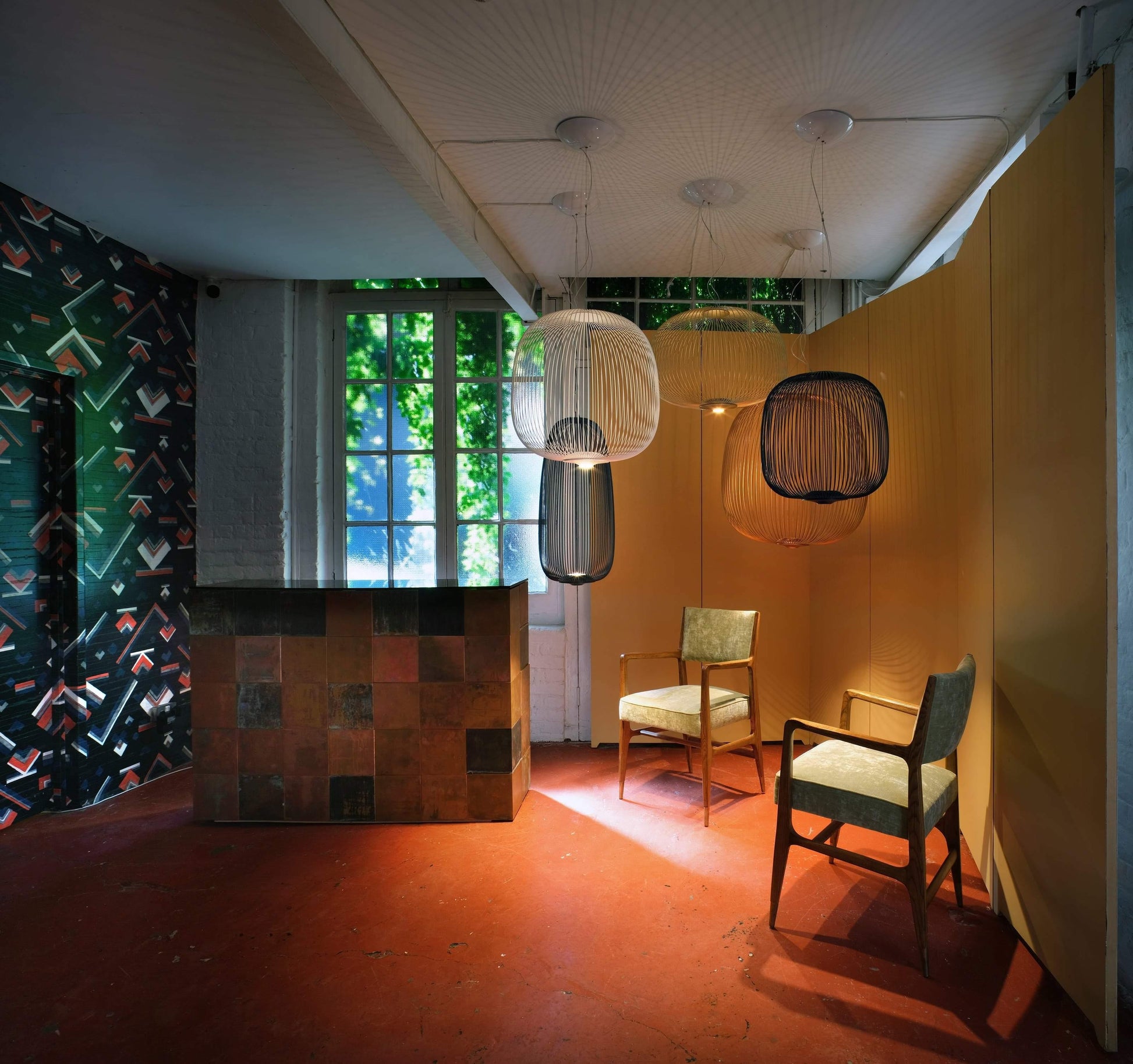 Spokes express a feeling of lightweight and motion. As if crossing a magical and geometrical mesh, the light filters out from the inside, projecting a kaleidoscope of blocks and voids. The shape of the Spokes suspension lamp recalls a lantern or an aviary.