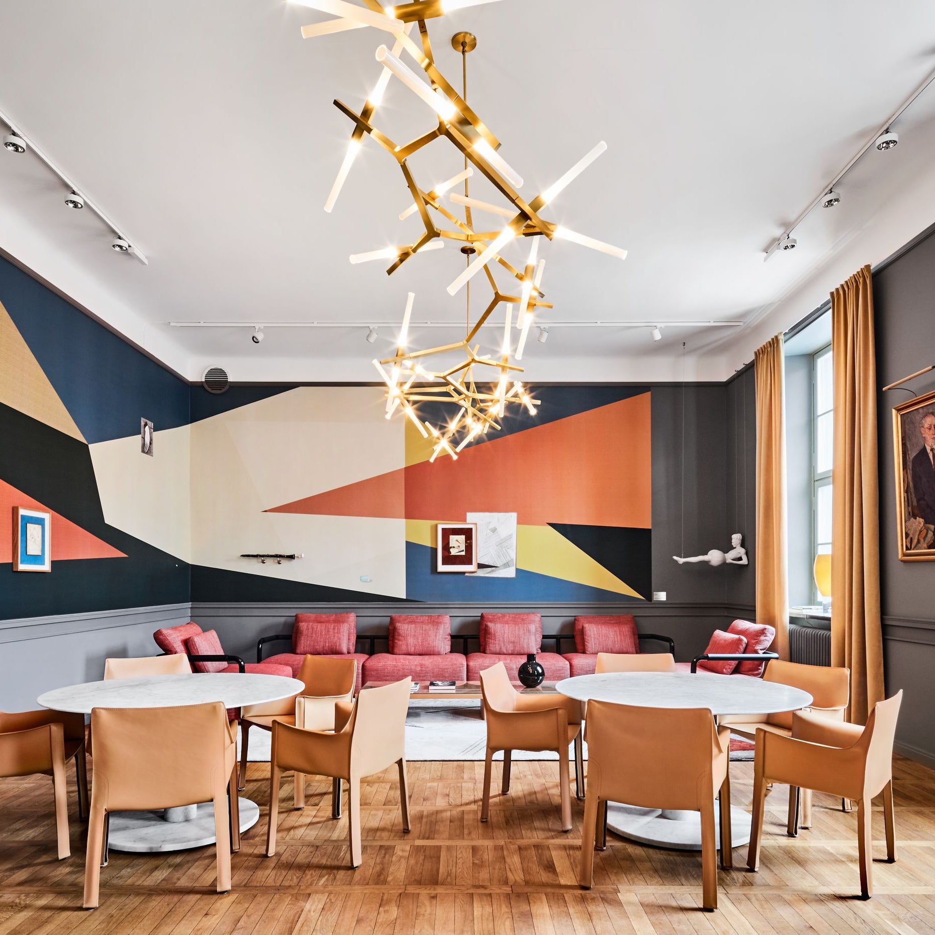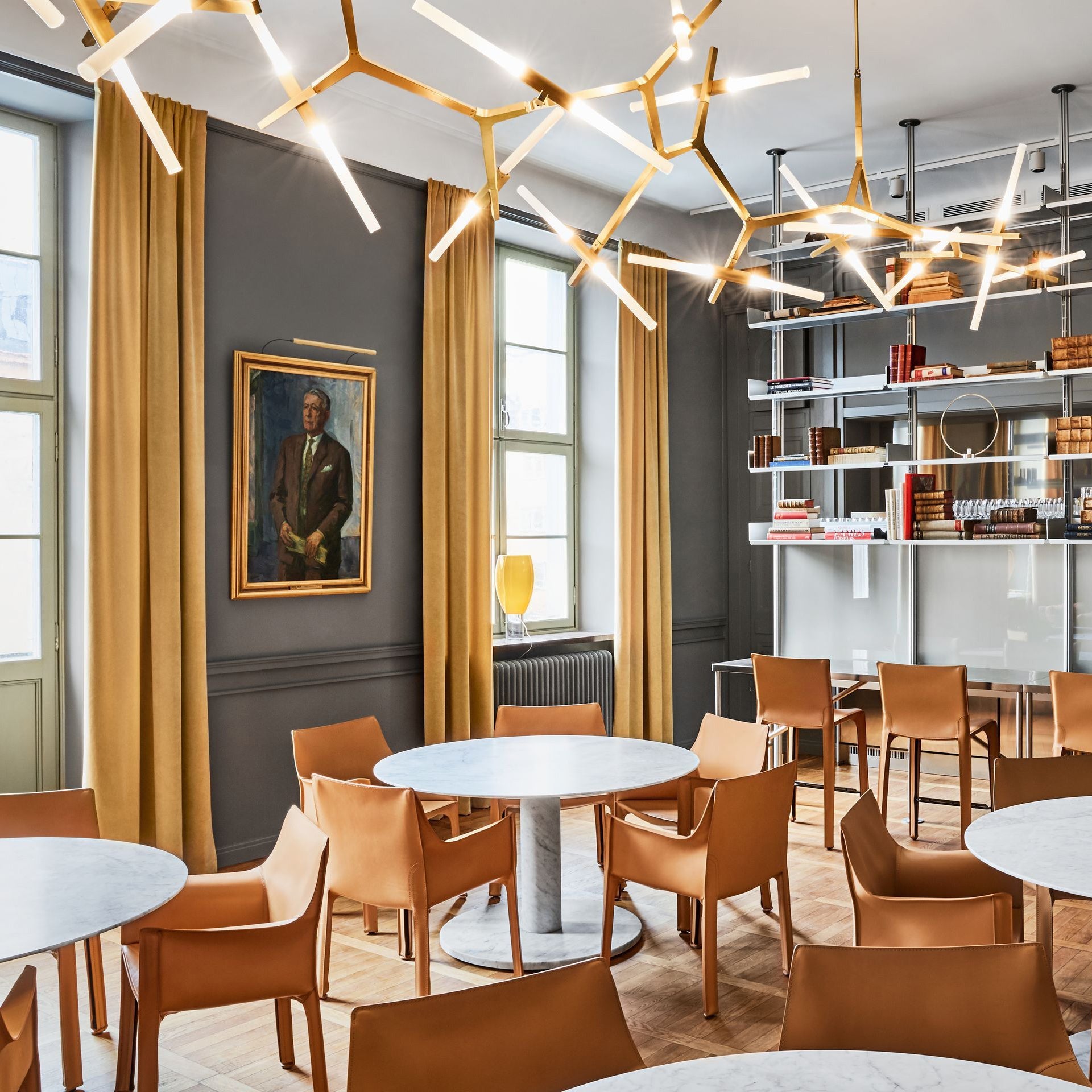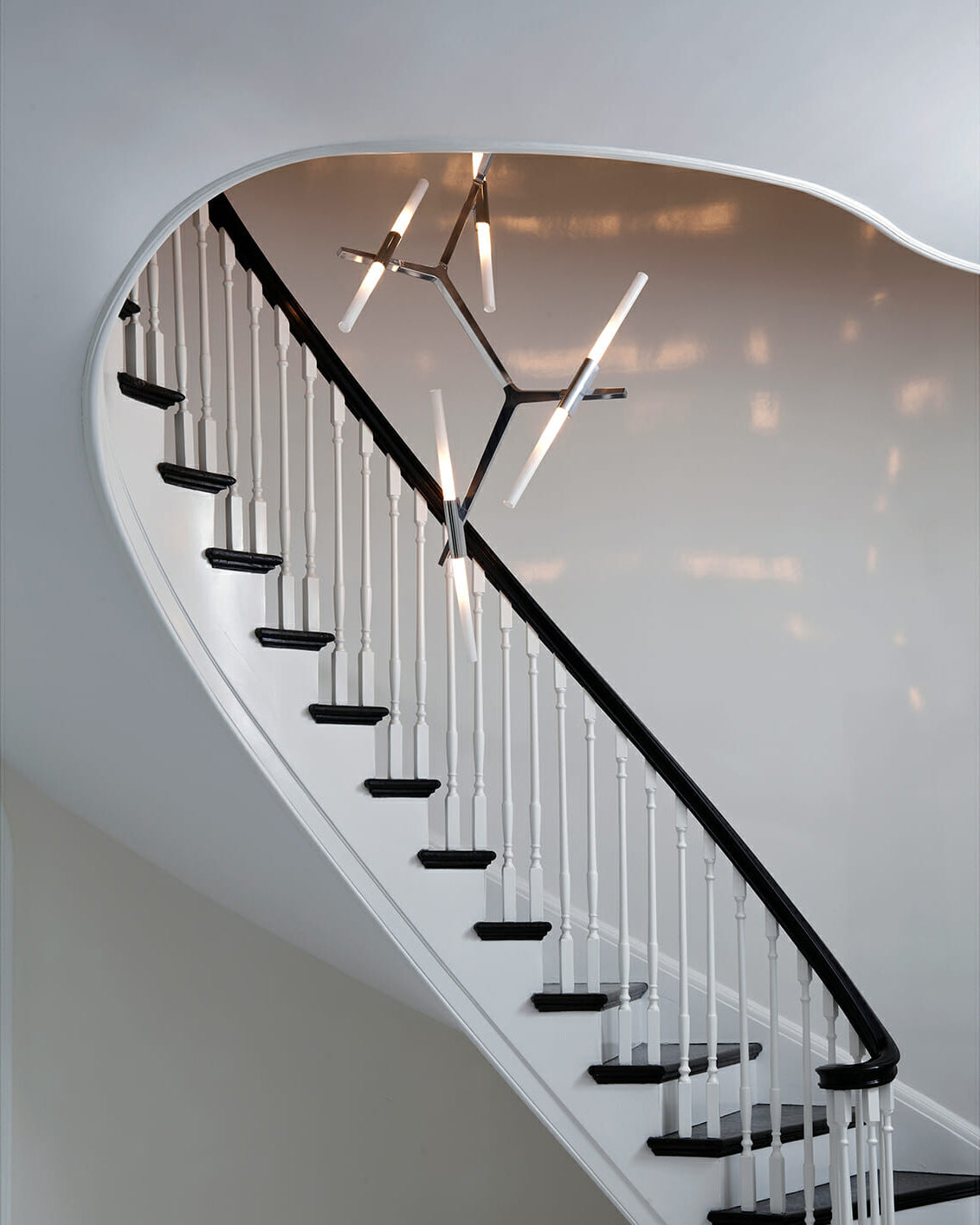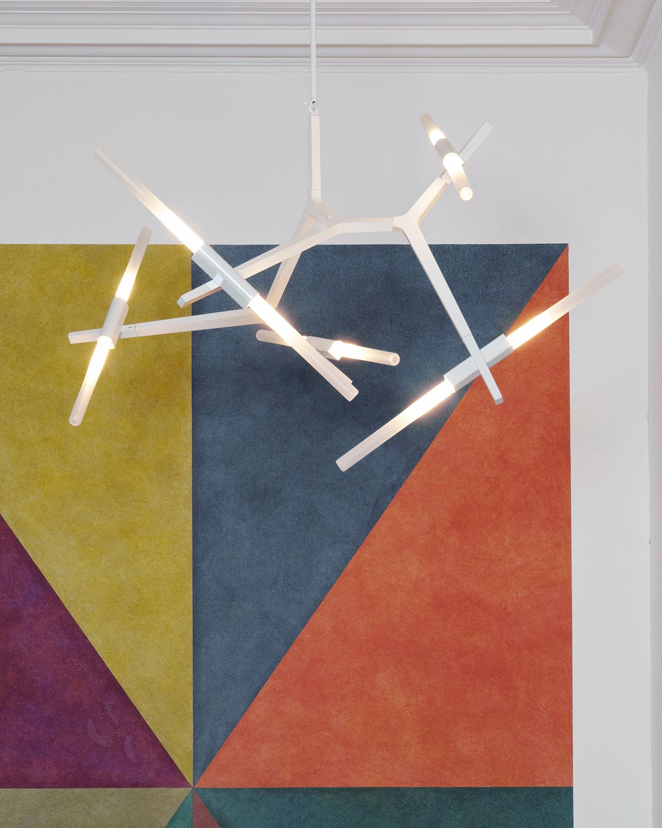 Originally conceived as a candelabra, Agnes takes its inspiration from the fictional heroine of the same name, a worker in the world's oldest profession during the 1849 California Gold Rush. The modular system would allow Agnes easy setup in her makeshift "workspace." In this version, glowing glass tubes replace the candles. Articulated joints allow the glass to be arranged in a multitude of ways.