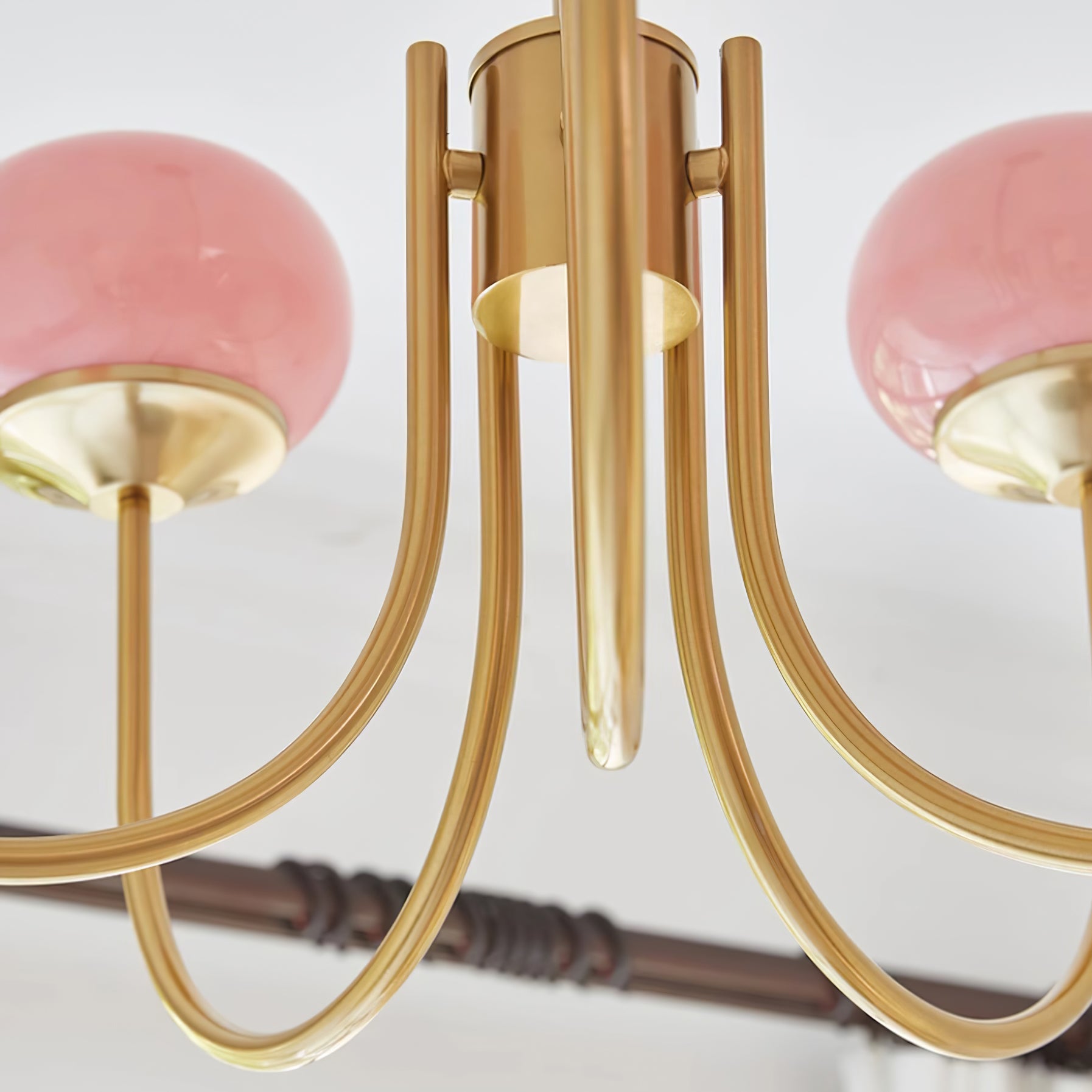 Embrace simplicity with the Valley Astoria Chandelier, where minimalist design meets elegance. This chandelier features a golden body, boasting a sleek Bauhaus-inspired style that's both functional and graceful. Its delicate pink and white glass accents evoke a soft, diffused light, perfect for creating a serene and inviting atmosphere. This large pendant is a statement piece that balances modernity with a classic aesthetic, ideal for contemporary spaces looking to add a touch of subtle sophistication.